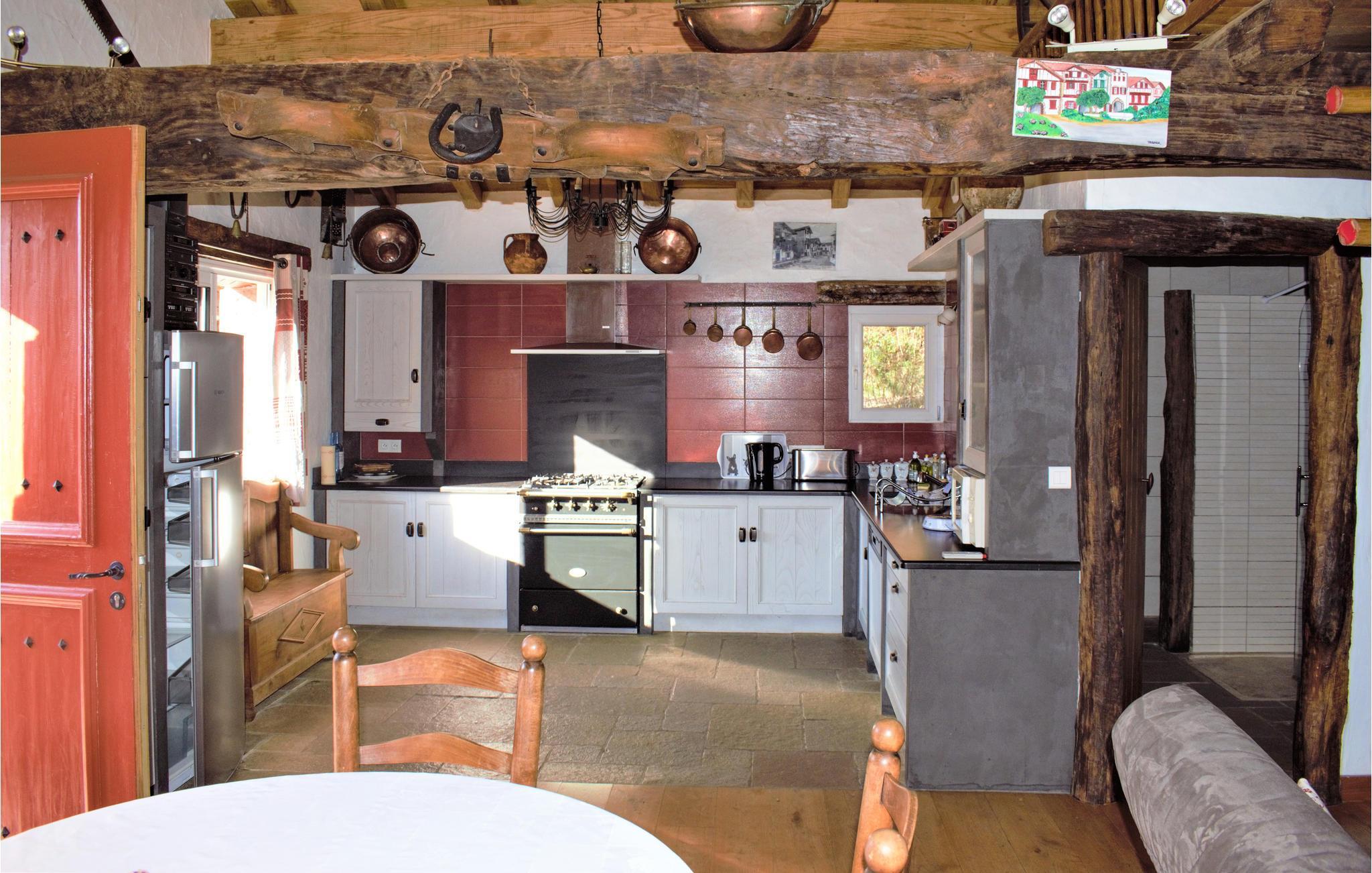 Velkommen til dette flotte hus, som ligger i et malerisk bjerglandskab. Den autentiske indretning, fine gamle trælofter og dekorative træbjælker giver jer en helt særlig ramme om de afslappende stunder sammen. Nyd den charmerende atmosfære, når I læner jer tilbage i sofaen om aftenen, mens flammerne knitrer hyggeligt i pejsen.