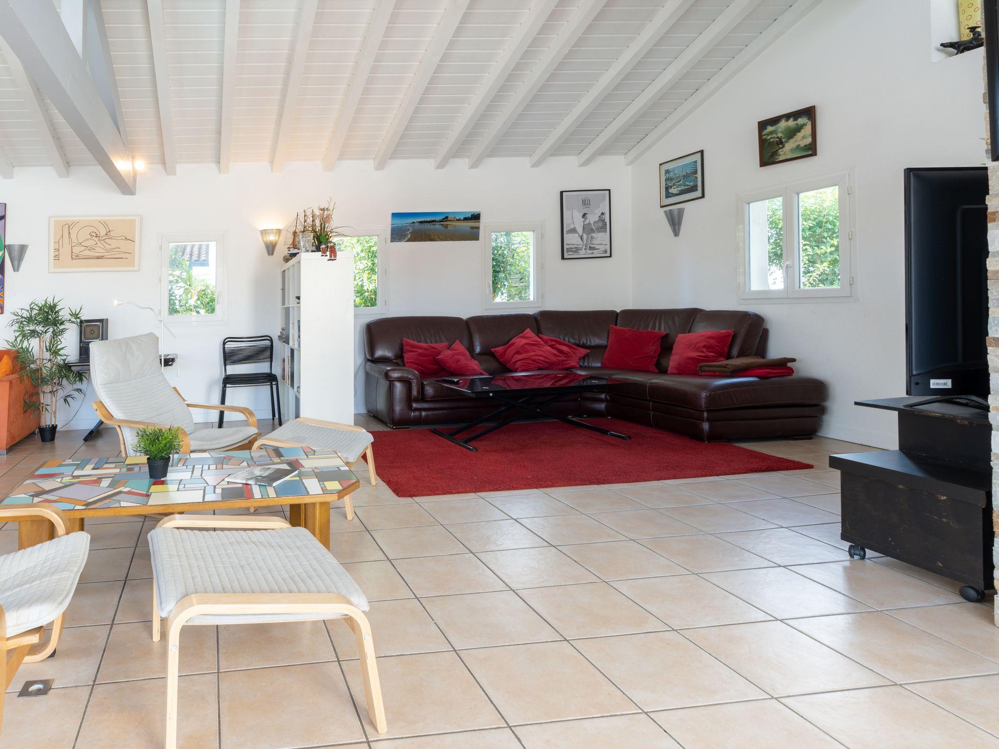 7-room villa 300 m2 on 3 levels. Comfortable and beautiful furnishings: living/dining room with panoramic window with TV (flat screen), hi-fi system. Kitchen (oven, dishwasher, 4 ceramic glass hob hotplates, toaster, kettle, electric coffee machine, Capsules for coffee machine (Nespresso) extra) with TV (flat screen). On the lower ground floor: 2 rooms, each room with 2 beds (90 cm, length 190 cm), bath/WC and gas heating. Exit to the terrace. 1 room with 1 french bed (160 cm, length 200 cm), bath/WC. Exit to the terrace. Upper floor: 3 rooms, each room with 1 bed (90 cm, length 190 cm), 1 french bed (140 cm, length 190 cm), shower/WC and TV (flat screen). Exit to the balcony. Balcony 8 m2, large terrace 140 m2. Terrace furniture, balcony furniture, deck chairs (7). Facilities: washing machine, dryer, iron, baby cot, hair dryer. Internet (WiFi, free). Parking (3 cars), garage (2 cars). Please note: maximum 1 pet/ dog allowed. Smoke alarm. The owner provides 2 electric bikes + 7 bikes + 1 canoe + 2 foam surfboards + 1 inflatable stand up paddle. Offer by a private individual according to Art. 155, IV of CGI. 64125000101AE