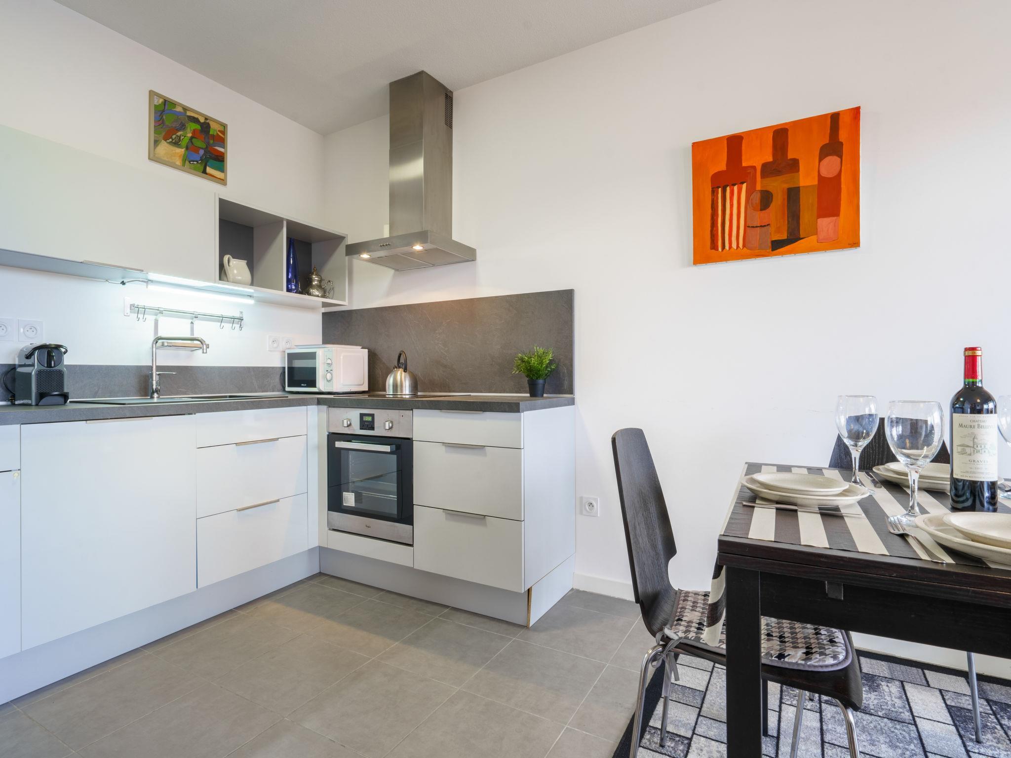 Bidart: Residence "Xabadenia". 300 m from the centre, 900 m from the sea, 900 m from the beach, road to cross. In the complex: lift. Parking on the premises. Grocery, restaurant, bar, bakery 300 m, café, 5 minute walk to the centre, bus stop 200 m, sandy beach "bidart centre" 900 m. Golf course (9 hole) 4 km, surf school 900 m. Nearby attractions: Bidaparc 600 m. Hiking paths: La Rhune 13 km. The keys‘ handover takes place by the agency Interhome in Bidart.