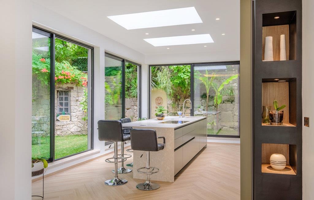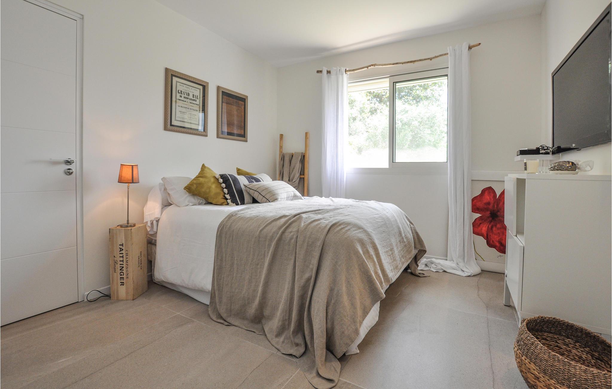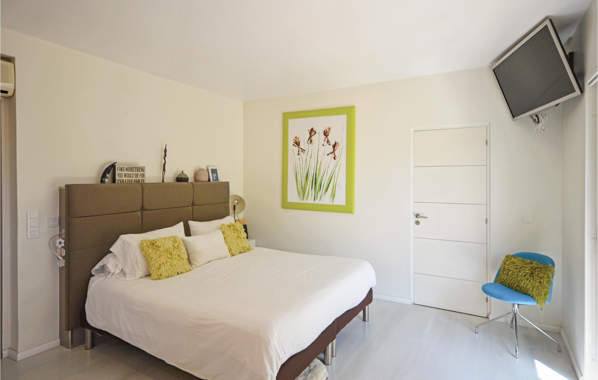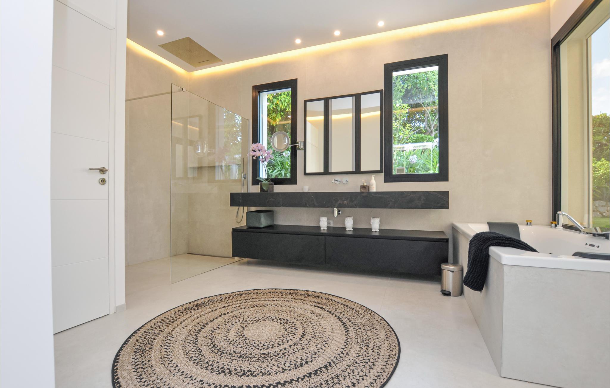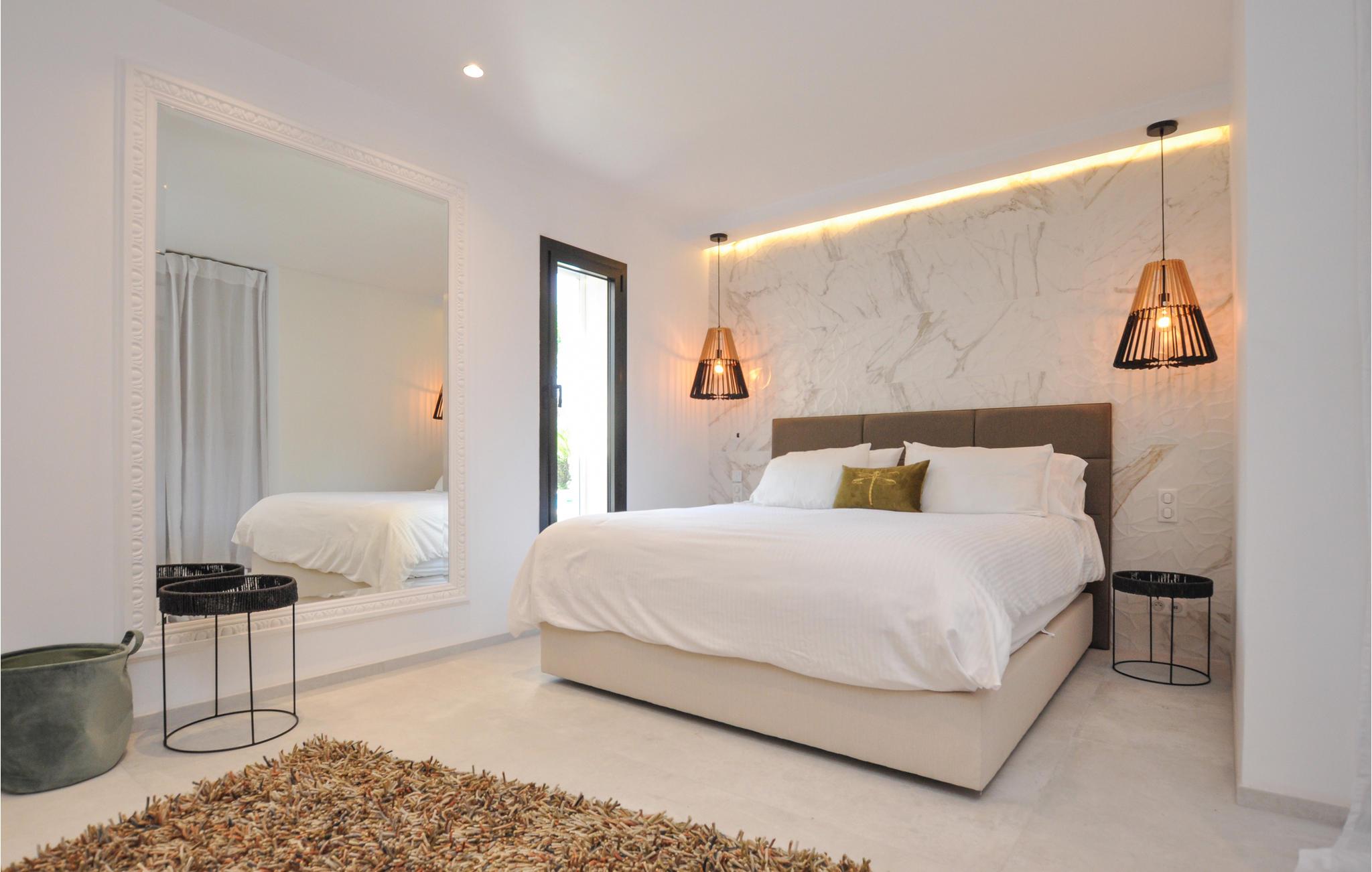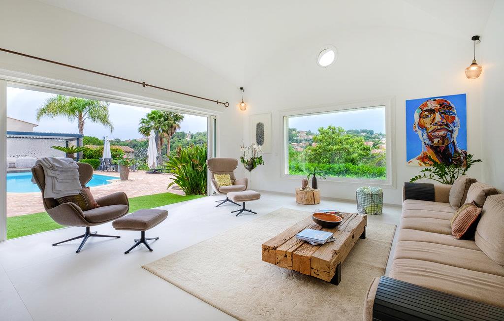 Feriehuset har en stor privat pool og en smuk terrasse med havemøbler og spiseplads. Stuen åbner ud mod poolområdet og er behageligt lys takket være de store vinduesfronter. Se frem til en luksuriøs og levende atmosfære, der også udstråler en behagelig ro. Et meget flot soveværelse i stueetagen har et tilstødende badeværelse og et af soveværelserne ovenpå har sin egen solterrasse. I kælderen er der et charmerende soveværelse med eget badeværelse.