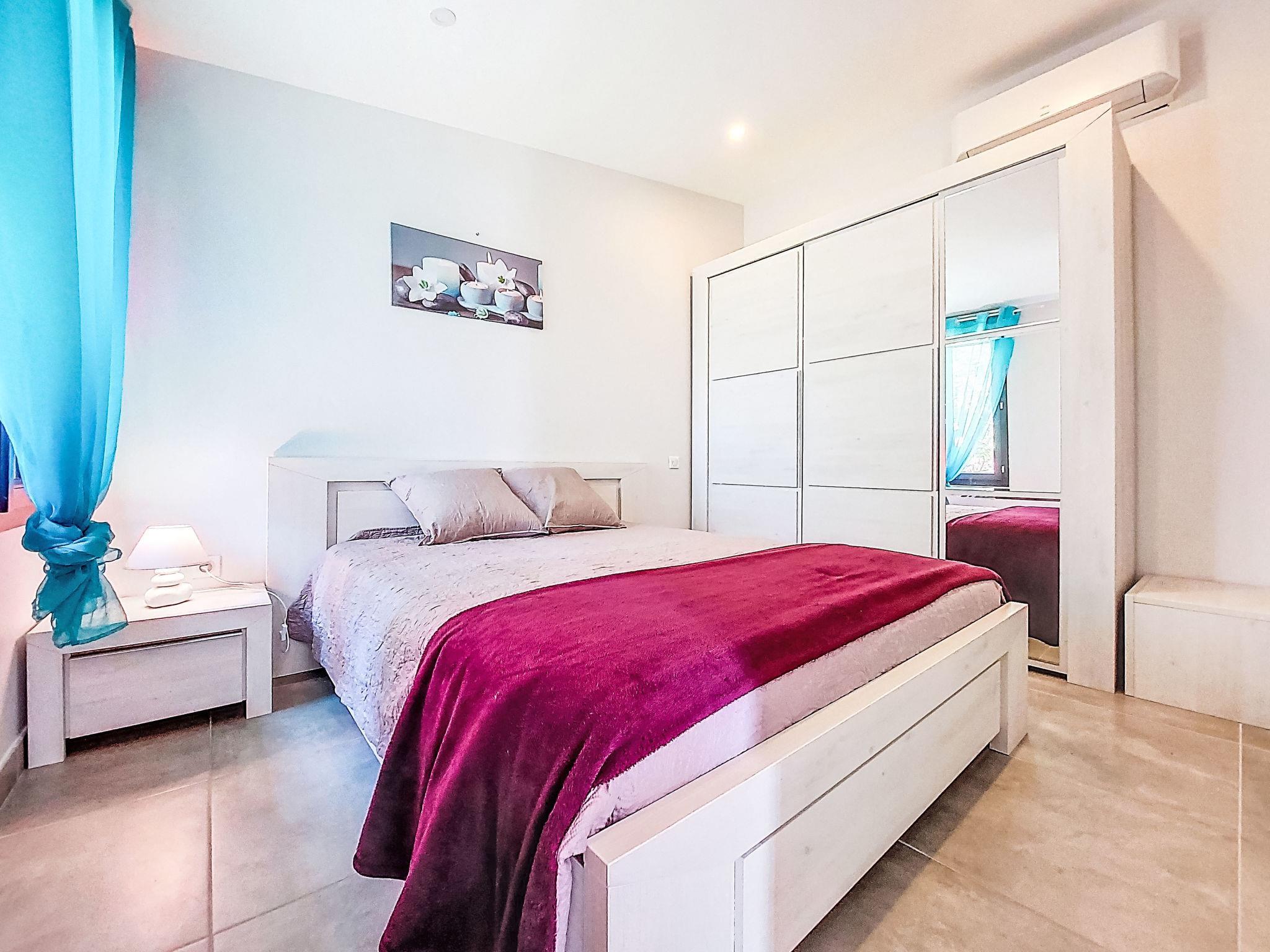 6-room villa 150 m2 on 2 levels. Comfortable and beautiful furnishings: dining room with TV (flat screen). 1 room with (140 cm, length 190 cm), shower. Exit to the terrace, to the swimming pool. 2 rooms, each room with (160 cm, length 200 cm), shower. Large, open kitchen (oven, 4 induction hot plates, toaster, kettle, microwave, electric coffee machine, Capsules for coffee machine (Dolce Gusto) extra). Sep. WC. Upper floor: 1 room with (160 cm, length 200 cm), shower. 1 room with (160 cm, length 200 cm), shower. Exit to the terrace. Sep. WC. Air-conditioning. Large terrace 105 m2, south facing position. Terrace furniture, barbecue, deck chairs (6). Facilities: washing machine, iron. Internet (WiFi, free). Parking (fenced 4 cars). Please note: non-smokers only. Maximum 2 pets/ dogs allowed. Smoke alarm. Offer by a private individual according to Art. 155, IV of CGI.