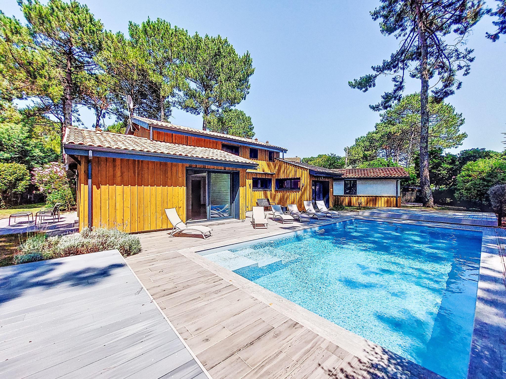 Villa "Villa les Verdiers". 1 km from the sea, 1 km from the beach. Private: property, garden 1'265 m2 (fenced), swimming pool heated (9 x 4 m, depth 110 - 140 cm, seasonal availability: 01.Jun. - 30.Sep.). Outdoor shower, pool house, parking (for 4 cars) on the premises. Carport. Shop, supermarket 200 m, restaurant 800 m, bakery 200 m, bus stop 400 m, railway station "La Teste De Buch" 26 km, sandy beach "Plage du Vivier" 1 km. Golf course (18 hole) 6 km, surf school 230 m, sailing school 10 km, tennis 850 m, riding stable 8.2 km. Nearby attractions: La Teste De Buch 26 km, Arcachon 27 km, Dune du Pilat 17 km. Well-known lakes can easily be reached: Lac de Biscarosse 9 km.