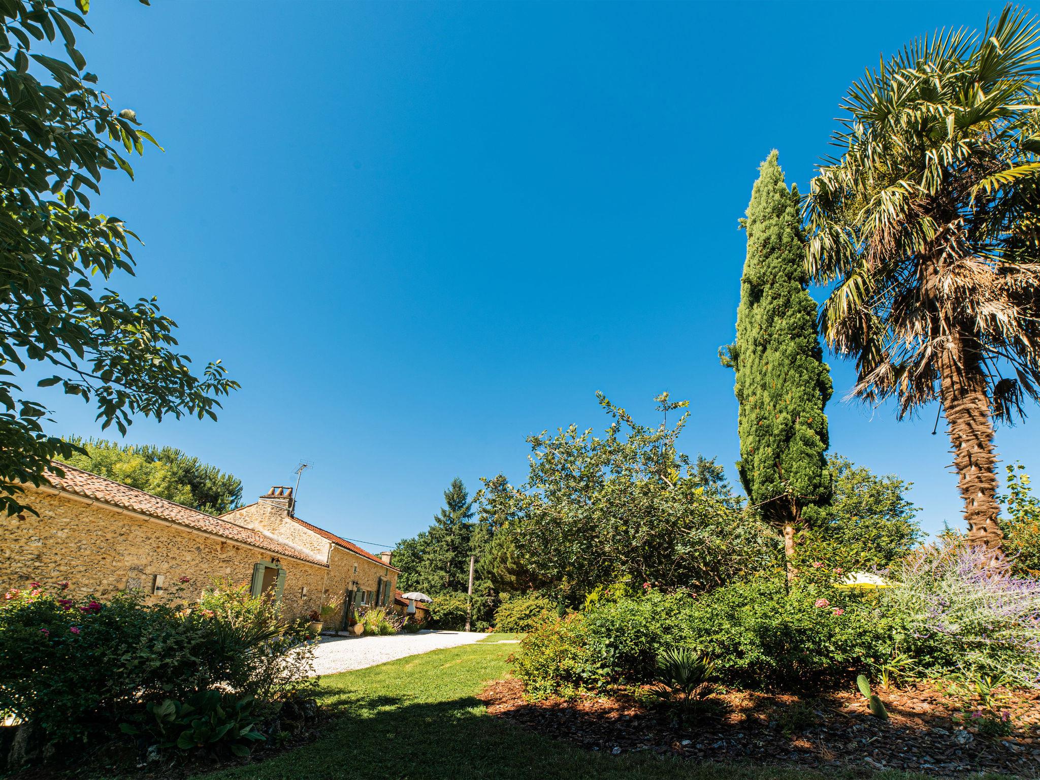 Beautiful country house "Le Coustal", surrounded by trees and meadows. 4 km from the centre of Lacapelle-Biron, 17 km from the centre of Fumel, 60 km from the centre of Cahors, in a secluded, quiet position. Private: natural state property 3 ha, trees, meadow, swimming pool with privacy (8 x 4 m, depth 120 - 180 cm, seasonal availability: 04.Apr. - 24.Oct.) with internal staircase and alarm system. Outdoor shower, terrace, garden furniture, barbecue house. Motor access (1 km via unmade road). Roofed, parking (for 2 cars) at the house on the premises. Shop 4 km, supermarket 17 km, bus stop "Villeréal-Les Riviérettes" 20 km. Nearby attractions: Gavaudun 7 km, Monflanquin 15 km, Cahors 60 km, Agen 67 km, Château Biron 13 km, Château Bonaguil 12 km. Please note: car recommended.