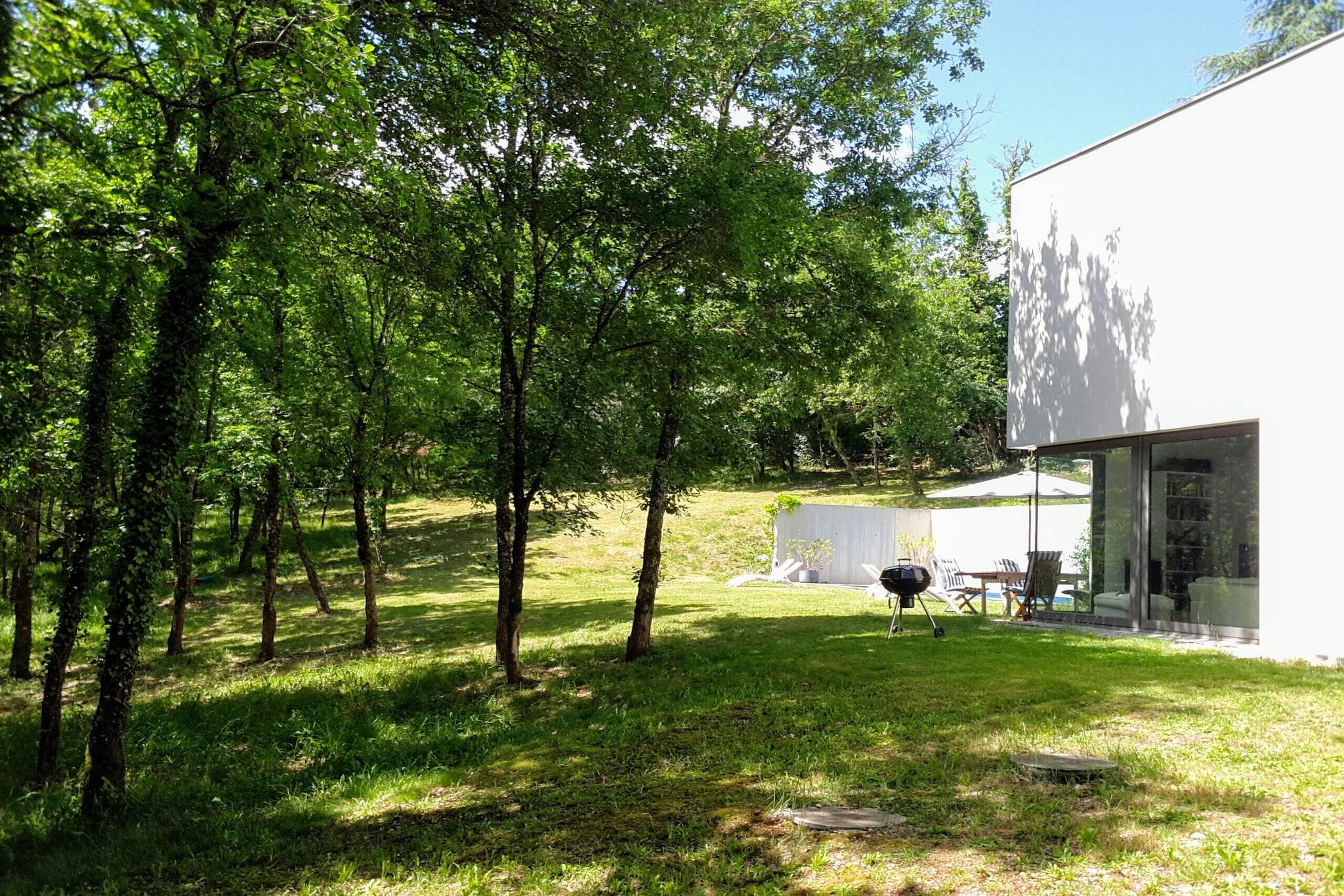 Du har ikke travlt med et hus som dette på det franske landskab! Arkitektdesignet, så en meget moderne levende stil. Meget lys, rummelig og fuldstændig løsrevet på en bakket, skovklok med næsten 1,5ha. En stor have og en 48m2 swimmingpool fuldføre billedet. Du går ind gennem en hall, der fører direkte ind i det åbne køkken (med spiseplads) og stort opholdsstue. Du vil blive forbløffet over rummets effekt i dette rum, den store pejs og den mezzanin ovenpå er slående. Du kan træde lige ud på terrassen til poolen, hvor du finder forskellige steder at sidde og nyde dig selv. Der er også et komfortabelt soveværelse med dobbeltseng i stueetagen med et tilstødende badeværelse (bruser, håndvask , toilet) og opbevaringsplads. Den øverste etage indeholder yderligere tre soveværelser, to singler og en dobbeltseng på mezzaninen, og et rummeligt badeværelse med badekar, separat bruser og toilet. De bemærkelsesværdige byer St. Cirq Lapopie, Rocamadour, Gourdon, Cabrerets (med sine huler), Puy L "Eveque, Domme, etc., er alle inden for en halv times rækkevidde. Cahors er en femten minutters kørsel fra huset . Denne smukke region byder på masser af valg af restauranter, maleriske markeder og loppemarkeder samt fritids- og sports muligheder.
