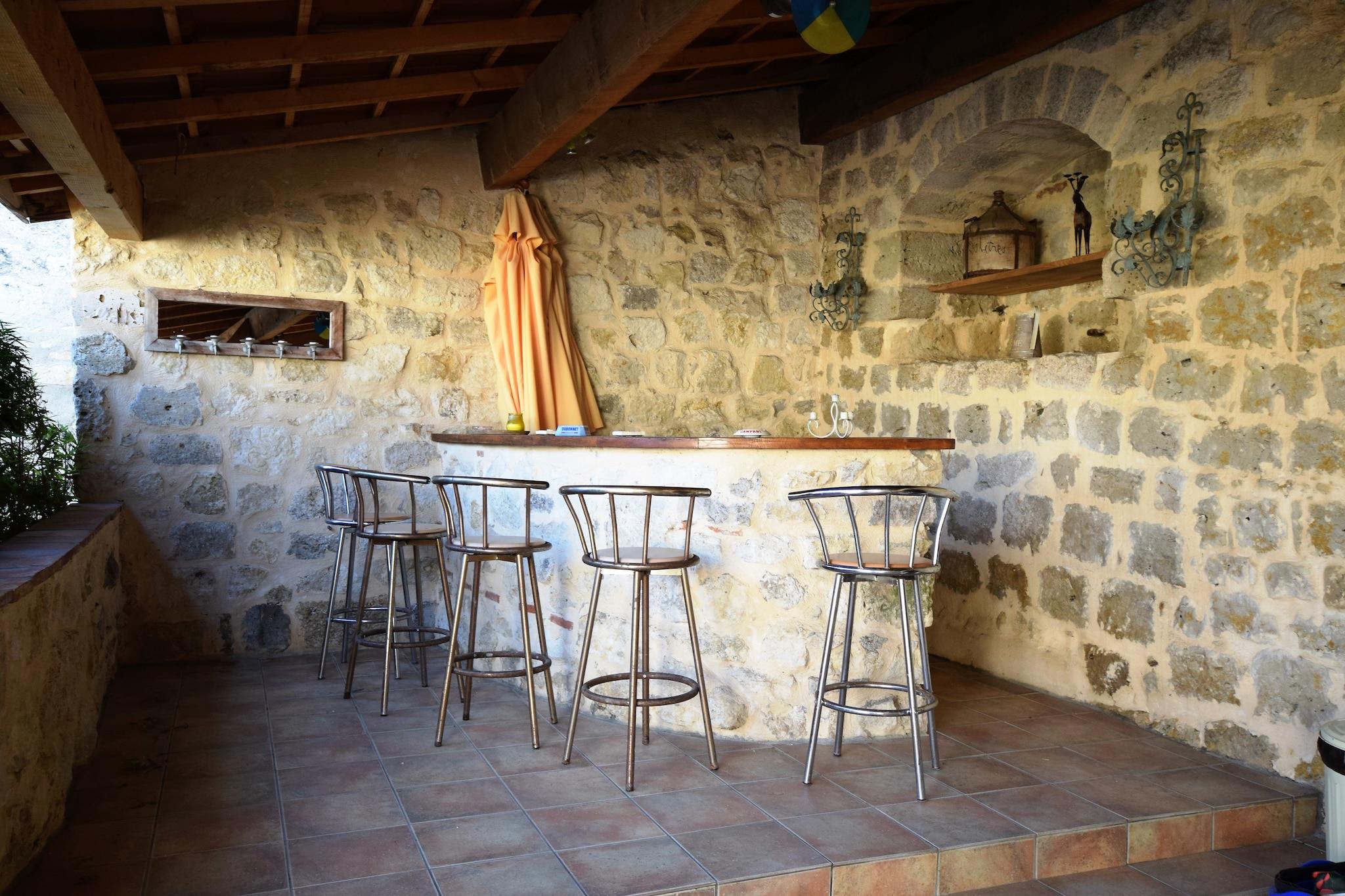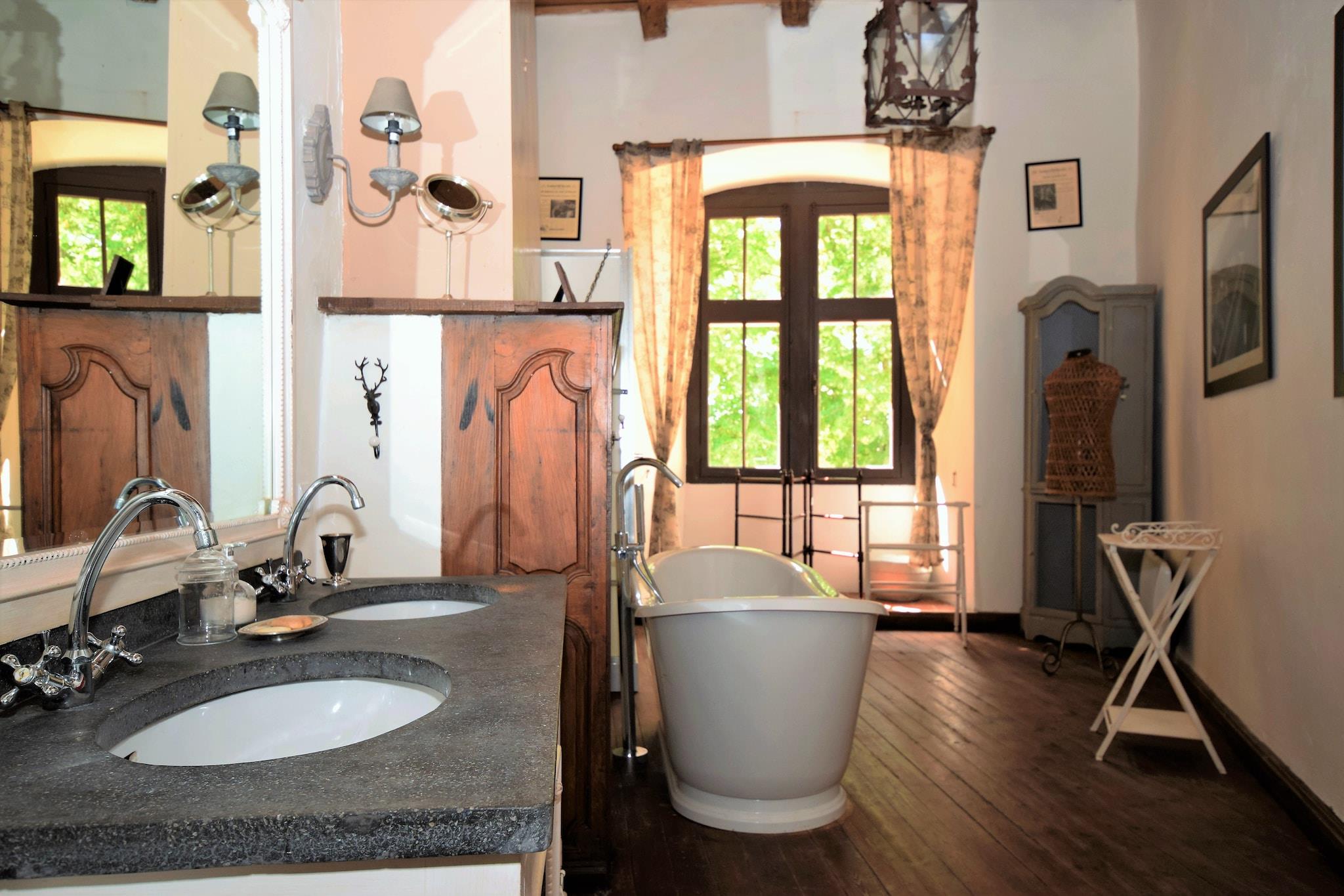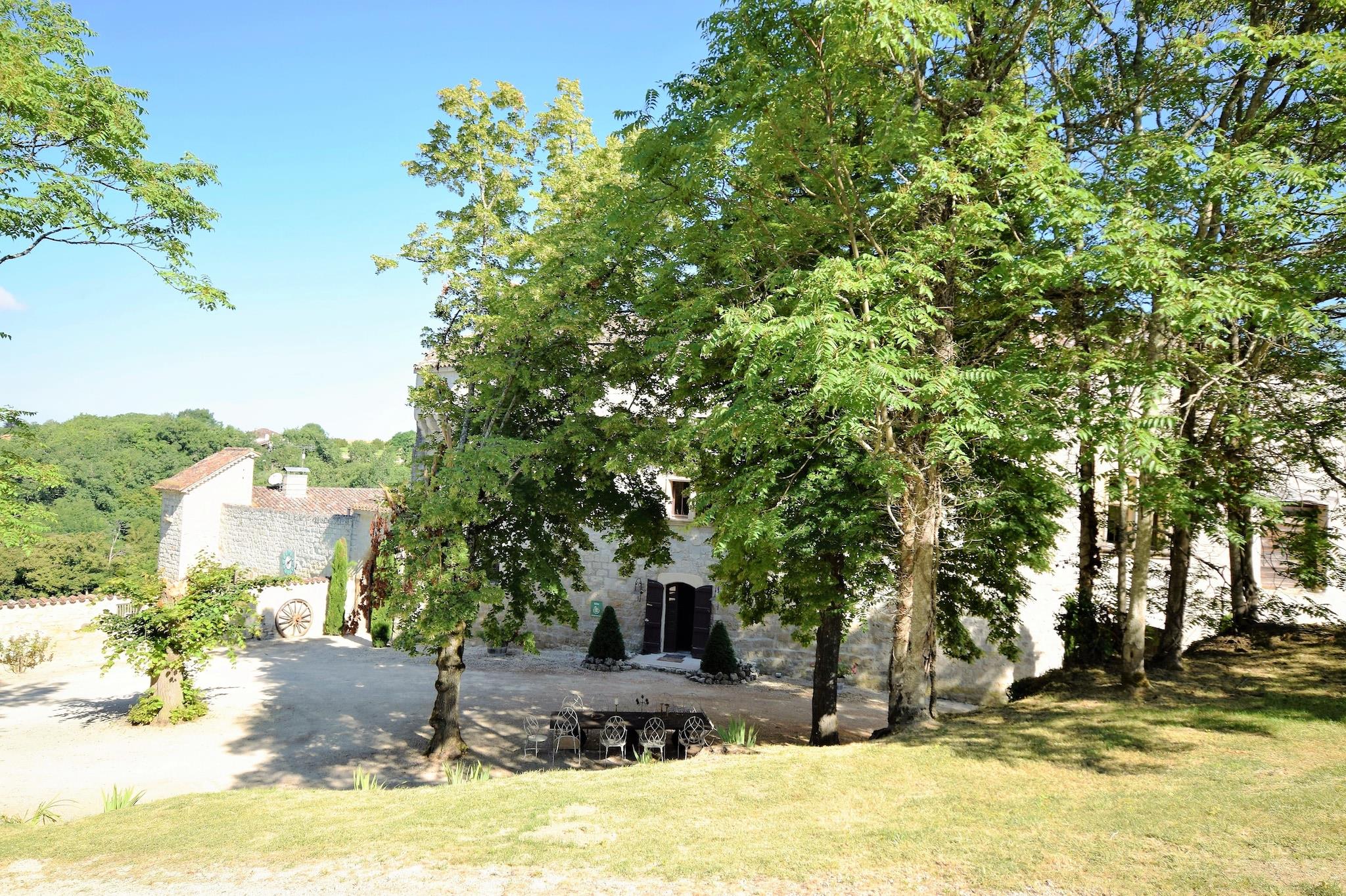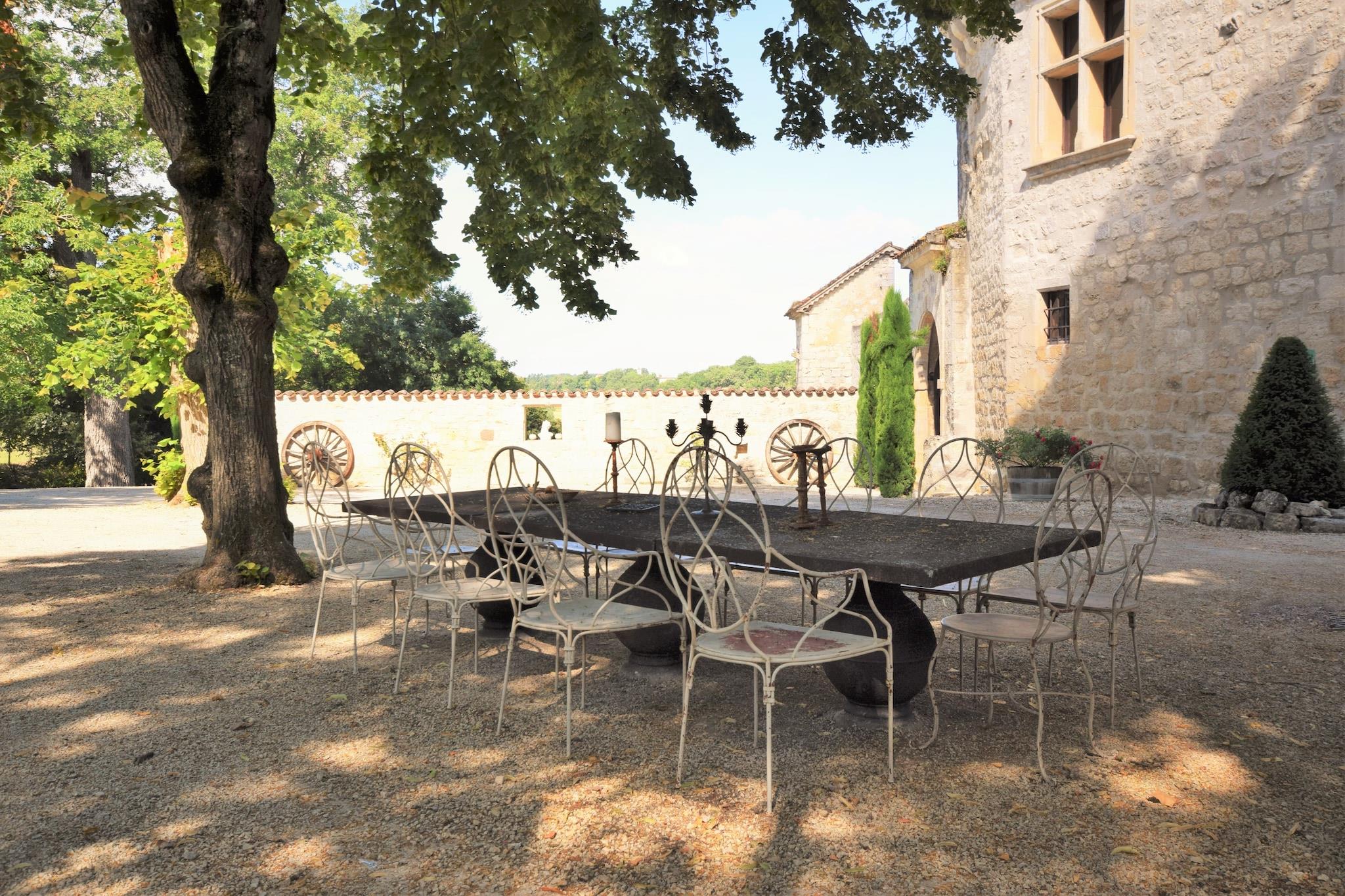 Grand Getaway i et afsondret slot Velkommen til din eventyrbogsflugt i Bon-Encontre - et fantastisk stenslot perfekt til store familiesammenkomster, vennesammenkomster eller uforglemmelige festligheder. Med 7 rummelige soveværelser og plads til op til 26 gæster tilbyder denne smukt bevarede ejendom en unik blanding af historisk charme og moderne komfort. Tilbring dovne eftermiddage med at slappe af ved din private pool, nyd middage i gården under stjernerne, eller slap af med et glas vin på den overdækkede terrasse med udsigt over den frodige dal og skoven udenfor. Natur, kultur og tidløse udsigter Beliggende nær Lot-floden og tæt på middelalderlandsbyerne Monpazier og Monflanquin, giver slottet direkte adgang til Frankrigs rige historie og maleriske landskab. Tag på ridning kun 3 km væk, tag afsted på GardenGolf Agen Boé, eller udforsk håndværkermarkeder og lokale vinsmagninger i nærheden. Den panoramiske udsigt og de fredelige omgivelser gør også dette til det perfekte sted for bryllupper og receptioner med endeløse fotoværdige baggrunde. Dining Delights kun få minutter væk Når du ikke nyder de fuldt udstyrede køkkener og grillfaciliteter på stedet, kan du forkæle din gruppe med middag på Restaurant L'Aventure eller snuppe pizza fra Trattoria Pasta Pizza, begge under 10 km væk. Frisk brød og kager fra et nærliggende lokalt bageri gør morgenen endnu mere behagelig.