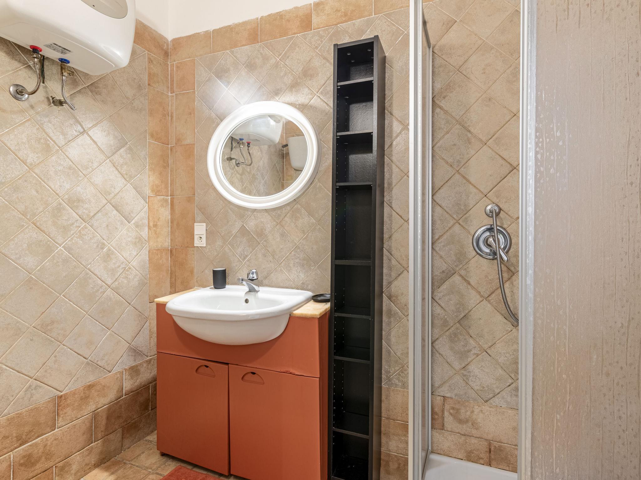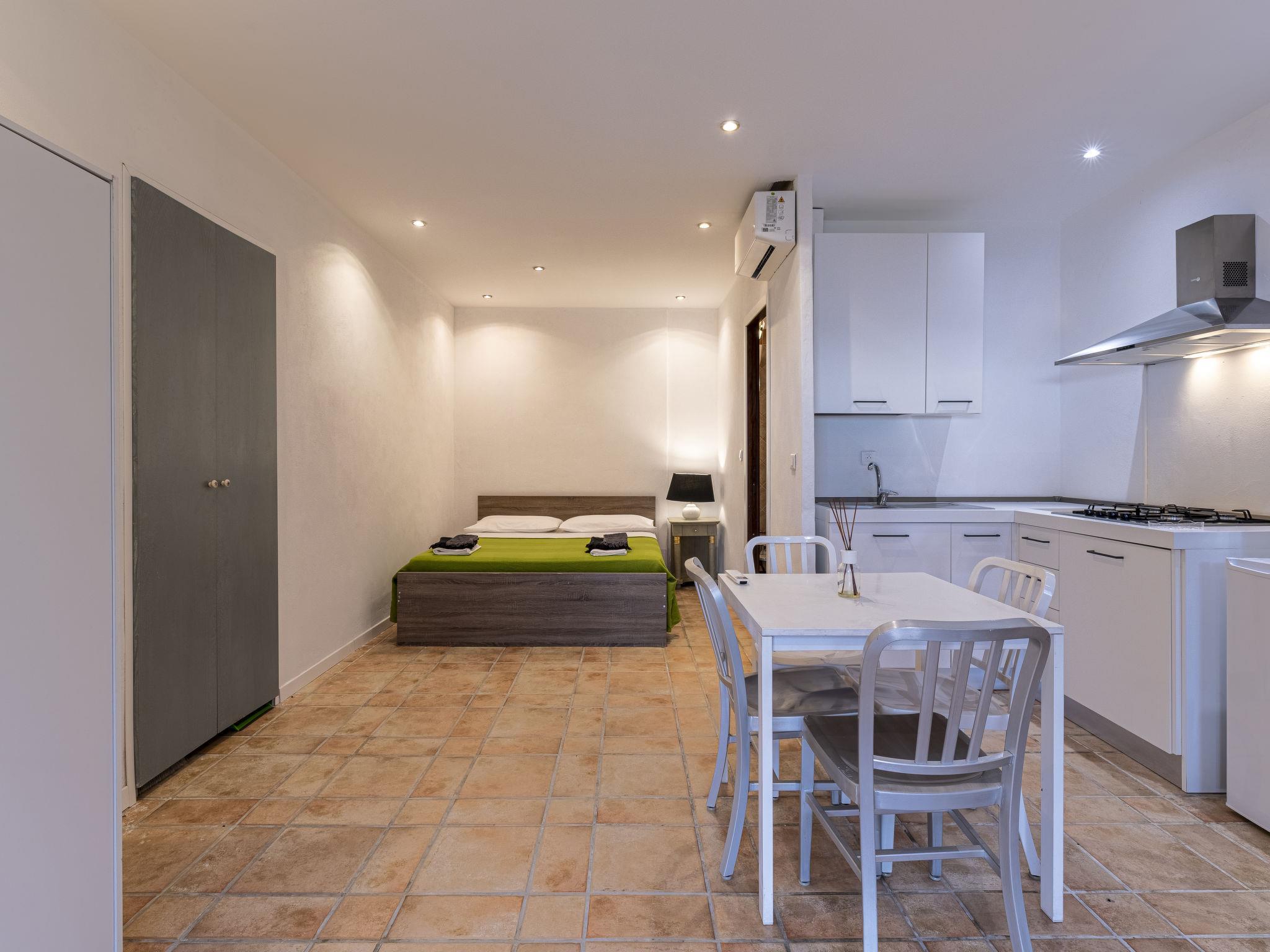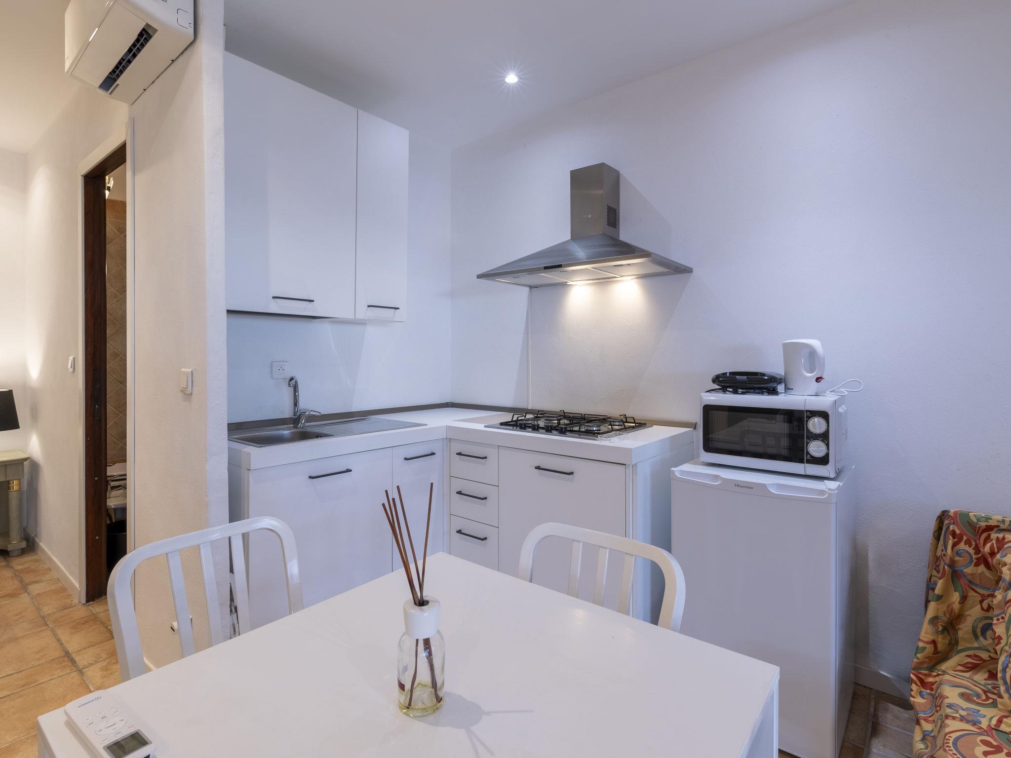 "Villa 20", 1-room studio 30 m2. Practical and beautiful furnishings: Studio with 1 sofabed (90 cm, length 190 cm), 1 french bed (160 cm, length 190 cm), dining table. Exit to the terrace. Open kitchen (4 gas rings, toaster, kettle, microwave). Shower/bidet/WC. Electric heating, air-conditioning. Terrace partly roofed, lawn. Terrace furniture. Beautiful view of the sea. Facilities: washing machine. Parking (fenced). Please note: smoke alarm. 2A0410007518F