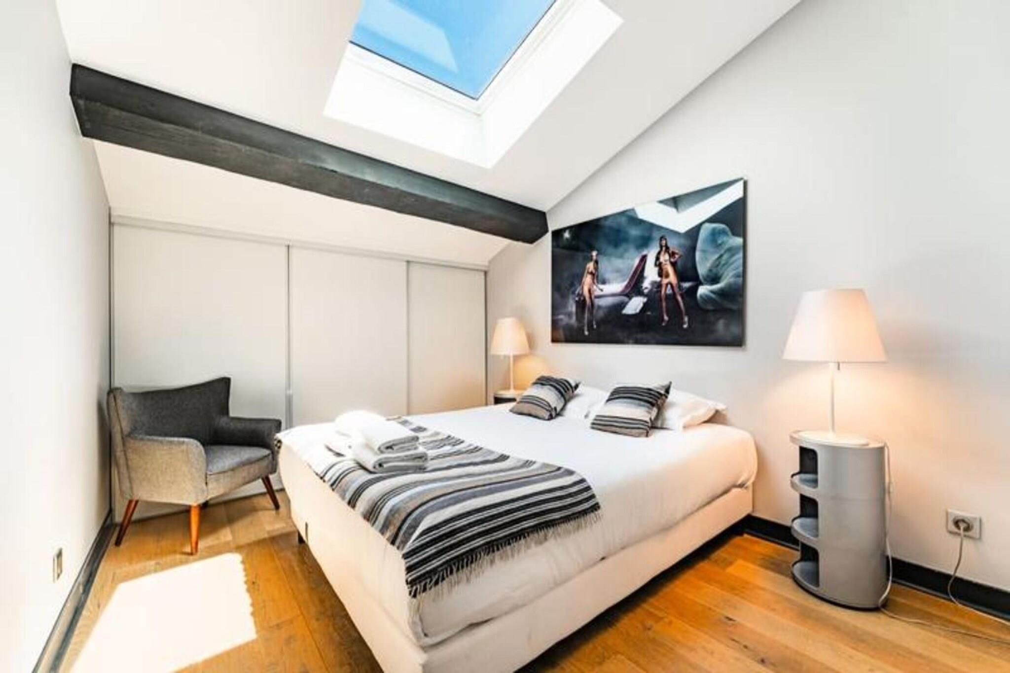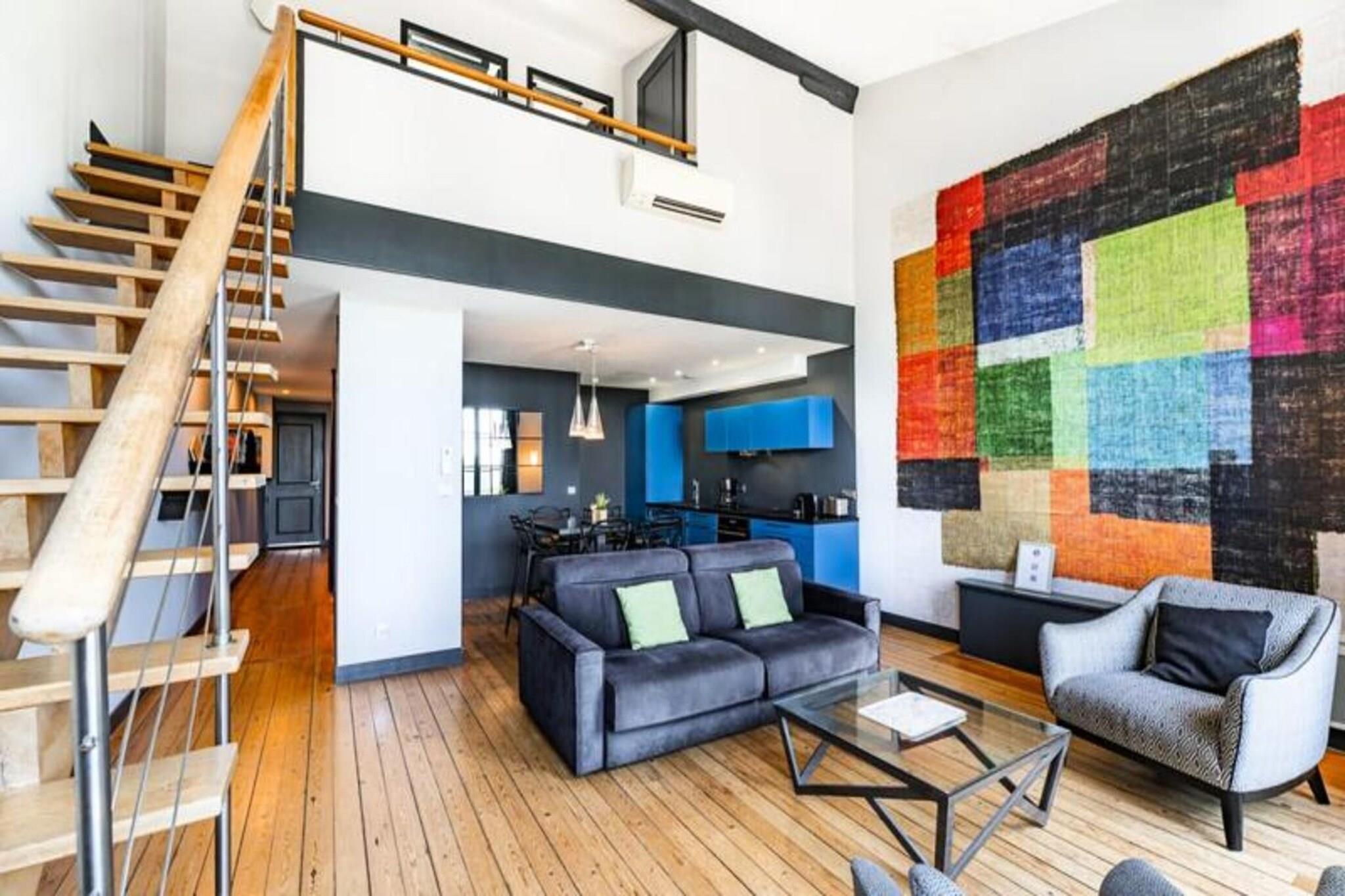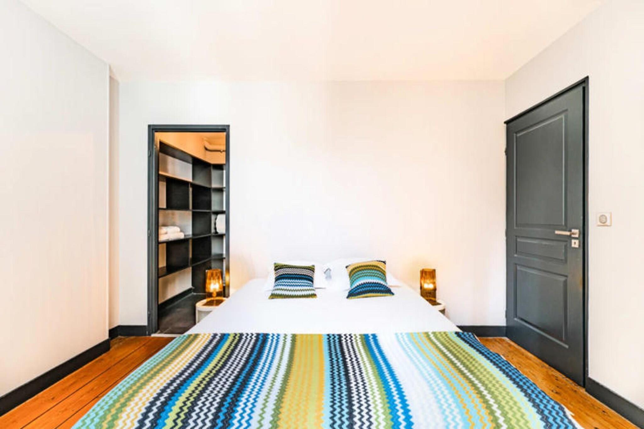 Denne stilfulde og rummelige møblerede duplex lejlighed til leje i Bordeaux tilbyder 97 m² komfort, beliggende på tredje sal i en smuk stenbygning uden elevator. Perfekt egnet til både korte og længere ophold, denne lejlighed inkluderer en parkeringsplads på Citée Mondiale parkeringsplads og har aircondition for ekstra komfort. Lejligheden er gennemtænkt designet med moderne bekvemmeligheder, herunder Wi-Fi og et tv i den store stue, som er indrettet med en sofa, to lænestole, et sofabord og et spisebord til 8 personer. Det fuldt udstyrede amerikanske køkken inkluderer en mikrobølgeovn, ovn, opvaskemaskine, køleskab/fryser, kogeplader, kedel, Nespresso kaffemaskine og brødrister, hvilket gør det nemt at tilberede måltider derhjemme. Lejligheden har tre soveværelser: et første soveværelse med en dobbeltseng (160x200 cm) og et stort påklædningsværelse, og to ekstra soveværelser på øverste etage, et med en dobbeltseng (160x200 cm) og et andet med to enkeltsenge (90x200 cm) ). Et brusebad og separat toilet er placeret på hver etage for ekstra bekvemmelighed. Lejligheden har også vaskemaskine, tørretumbler, strygejern og strygebræt, hvilket sikrer et behageligt ophold. Der er linned, og senge er redt ved ankomsten. Beliggende i hjertet af Bordeaux tilbyder denne lejlighed en ideel base for at udforske byen. Det berømte Museum of Contemporary Art (CAPC) er kun en kort gåtur væk, ligesom de maleriske kajer langs Garonne-floden, perfekt til naturskønne gåture. Lejlighedens centrale beliggenhed gør det nemt at få adgang til alle Bordeaux' pulserende attraktioner, herunder vinbarer, elegante caféer og historiske vartegn. Sporvogn B er bekvemt placeret lige foran lejligheden, hvilket giver nem adgang til byens største seværdigheder i komfort og fred. Lejligheden er udstyret med alt det nødvendige for et problemfrit ophold. Der kræves et sikkert depositum på EURO750, og beløbet behandles via et betalingslink med Swikly, som refunderes efter en vellykket udtjekning, forudsat at lejligheden returneres i god stand. Lejlighedens indtjekningstid er typisk fra 16.00 til 20.30, med fleksibilitet til rådighed mod et mindre tillæg, hvis du ønsker at tjekke ind senere. Bordeaux, der er kendt for sin sofistikerede stemning og vinkultur i verdensklasse, tilbyder en unik oplevelse med en blanding af historisk charme og moderne innovation. Som et UNESCO World Heritage Site siden 2007, er byen en must-see destination for alle, der brænder for fransk kultur, livsstil og fine vine.