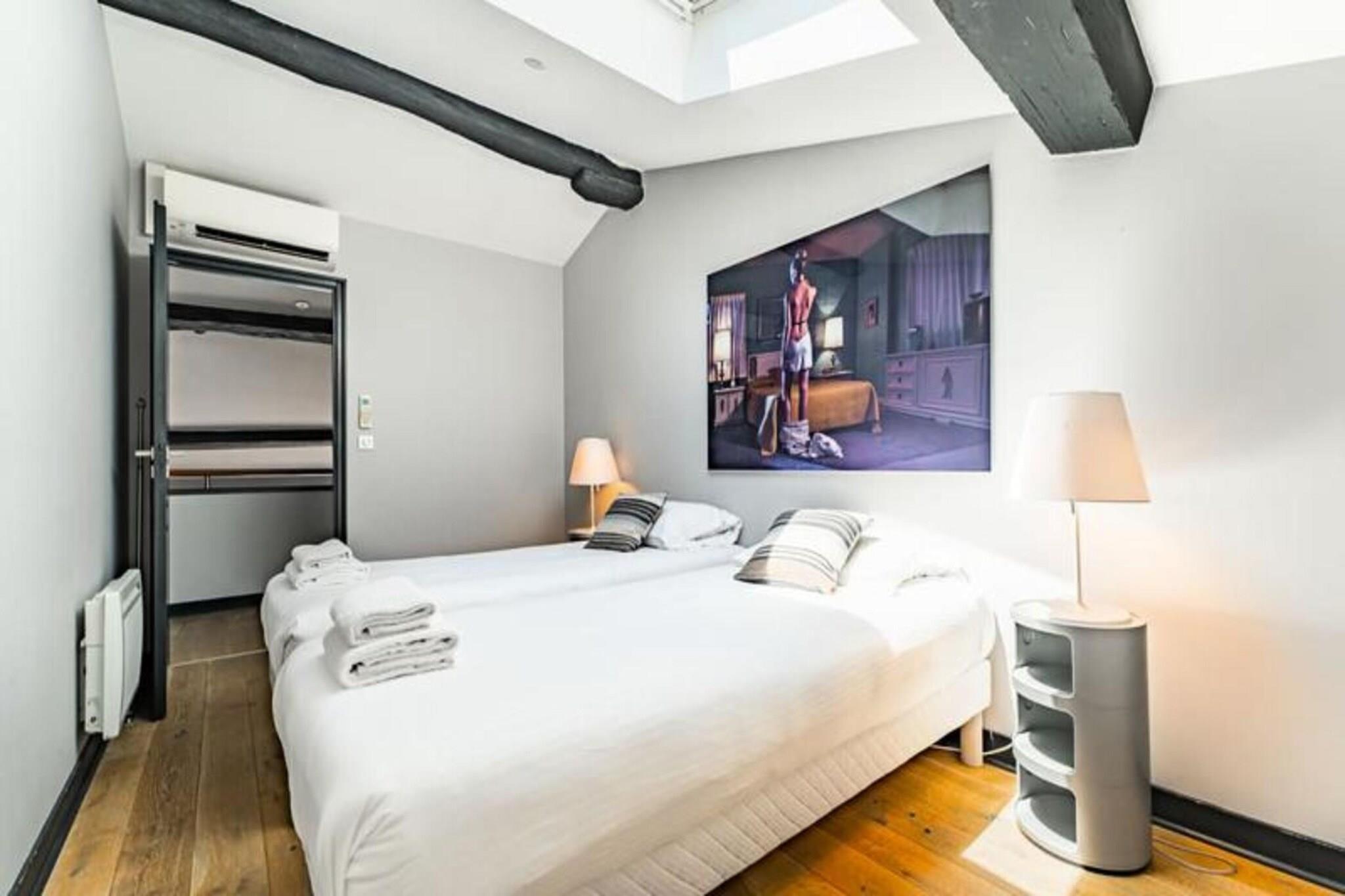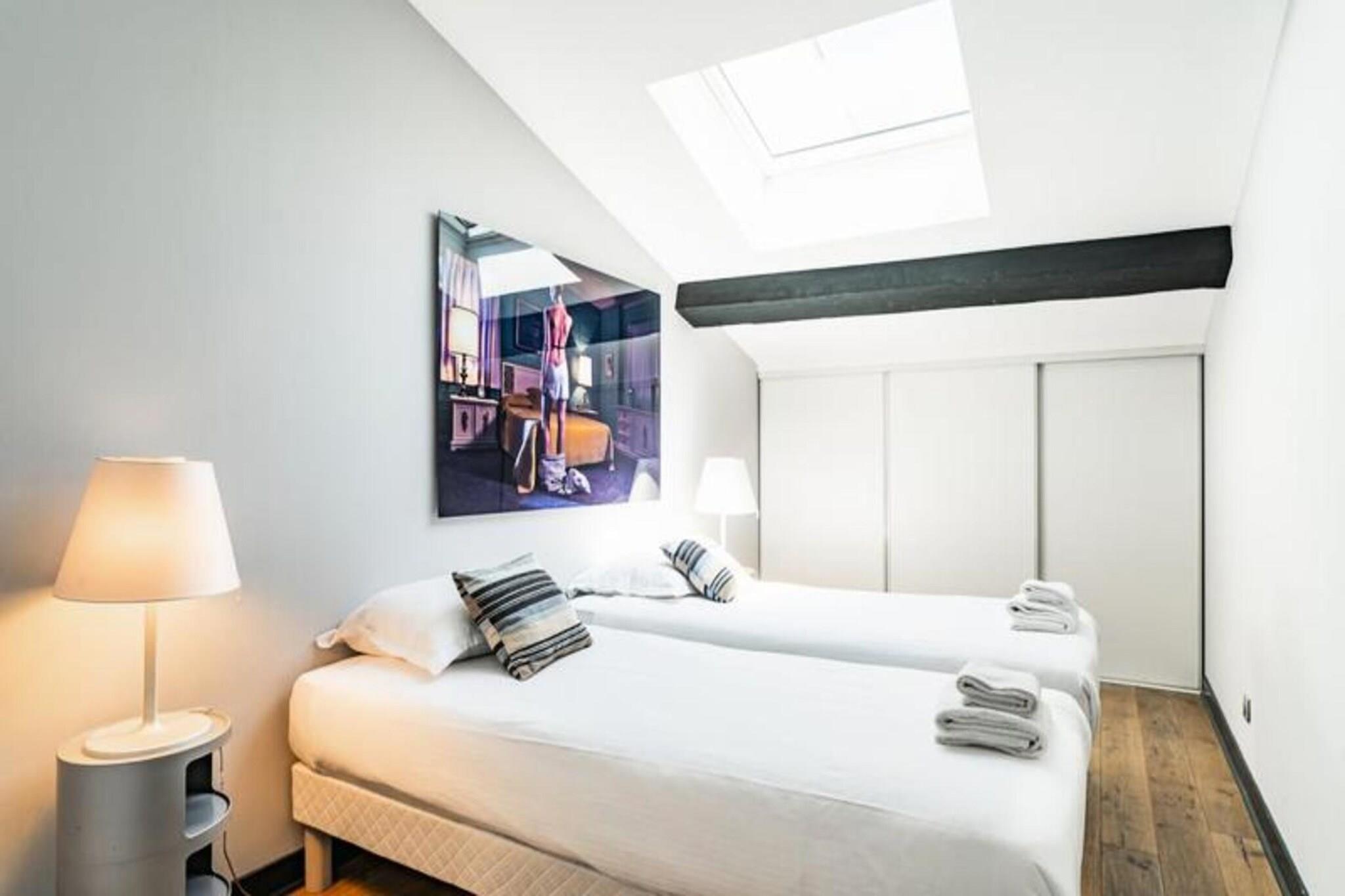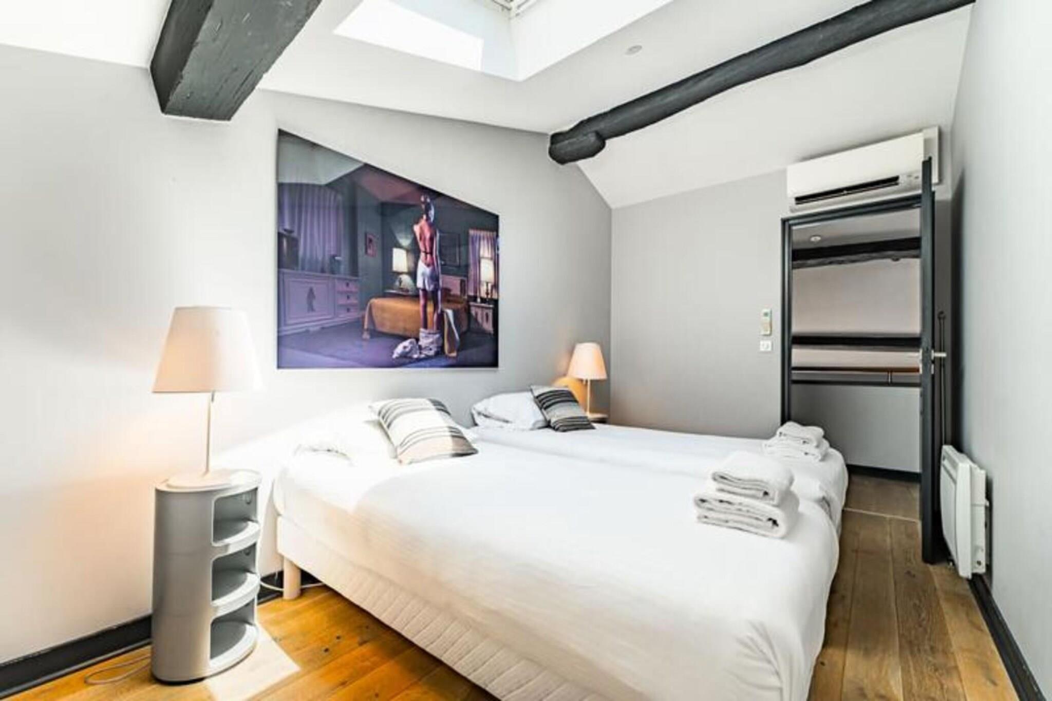 Denne stilfulde og rummelige møblerede duplex lejlighed til leje i Bordeaux tilbyder 97 m² komfort, beliggende på tredje sal i en smuk stenbygning uden elevator. Perfekt egnet til både korte og længere ophold, denne lejlighed inkluderer en parkeringsplads på Citée Mondiale parkeringsplads og har aircondition for ekstra komfort. Lejligheden er gennemtænkt designet med moderne bekvemmeligheder, herunder Wi-Fi og et tv i den store stue, som er indrettet med en sofa, to lænestole, et sofabord og et spisebord til 8 personer. Det fuldt udstyrede amerikanske køkken inkluderer en mikrobølgeovn, ovn, opvaskemaskine, køleskab/fryser, kogeplader, kedel, Nespresso kaffemaskine og brødrister, hvilket gør det nemt at tilberede måltider derhjemme. Lejligheden har tre soveværelser: et første soveværelse med en dobbeltseng (160x200 cm) og et stort påklædningsværelse, og to ekstra soveværelser på øverste etage, et med en dobbeltseng (160x200 cm) og et andet med to enkeltsenge (90x200 cm) ). Et brusebad og separat toilet er placeret på hver etage for ekstra bekvemmelighed. Lejligheden har også vaskemaskine, tørretumbler, strygejern og strygebræt, hvilket sikrer et behageligt ophold. Der er linned, og senge er redt ved ankomsten. Beliggende i hjertet af Bordeaux tilbyder denne lejlighed en ideel base for at udforske byen. Det berømte Museum of Contemporary Art (CAPC) er kun en kort gåtur væk, ligesom de maleriske kajer langs Garonne-floden, perfekt til naturskønne gåture. Lejlighedens centrale beliggenhed gør det nemt at få adgang til alle Bordeaux' pulserende attraktioner, herunder vinbarer, elegante caféer og historiske vartegn. Sporvogn B er bekvemt placeret lige foran lejligheden, hvilket giver nem adgang til byens største seværdigheder i komfort og fred. Lejligheden er udstyret med alt det nødvendige for et problemfrit ophold. Der kræves et sikkert depositum på EURO750, og beløbet behandles via et betalingslink med Swikly, som refunderes efter en vellykket udtjekning, forudsat at lejligheden returneres i god stand. Lejlighedens indtjekningstid er typisk fra 16.00 til 20.30, med fleksibilitet til rådighed mod et mindre tillæg, hvis du ønsker at tjekke ind senere. Bordeaux, der er kendt for sin sofistikerede stemning og vinkultur i verdensklasse, tilbyder en unik oplevelse med en blanding af historisk charme og moderne innovation. Som et UNESCO World Heritage Site siden 2007, er byen en must-see destination for alle, der brænder for fransk kultur, livsstil og fine vine.