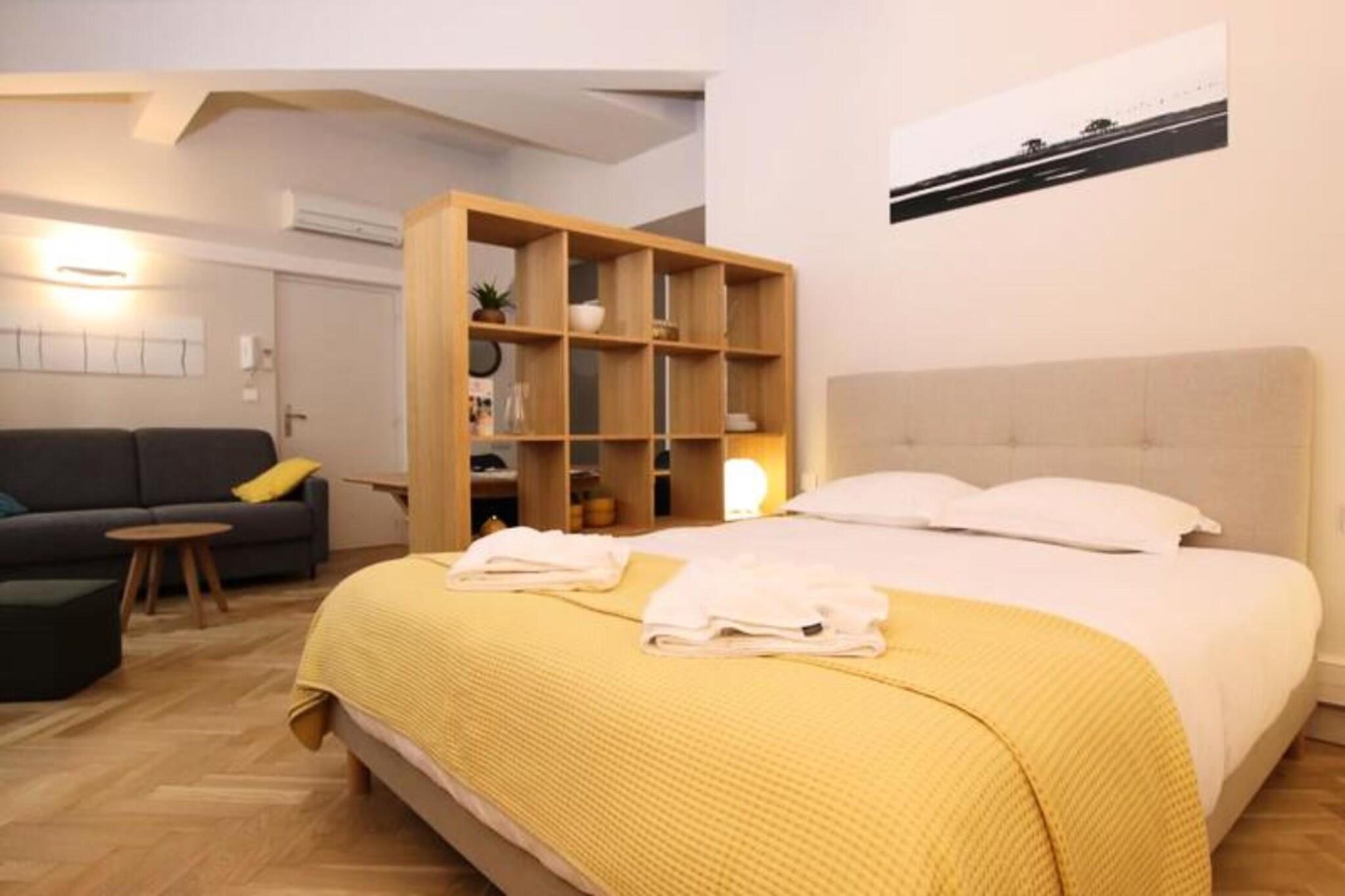 Beliggende i hjertet af Bordeaux tilbyder denne charmerende lejlighed på 30 m² en perfekt blanding af historisk karakter og moderne bekvemmeligheder, hvilket gør den til et ideelt valg for et ophold i byens pulserende centrum. Beliggende kun få skridt fra det ikoniske Place des Quinconces, Place de la Bourse og Grand Théâtre, kunne beliggenheden ikke være mere central, hvilket gør dig inden for rækkevidde af alle byens største attraktioner. Udforsk Triangle d'Or, besøg den berømte Rue Sainte-Catherine, eller tag en spadseretur langs Bordeauxs smukke kajer - alt hvad du behøver er kun en kort gåtur væk. Selve lejligheden er designet til at give ultimativ komfort, og byder på et rummeligt soveområde med en stor 160 cm x 200 cm seng, plus en sovesofa, der kan rumme op til fire gæster. Det veludstyrede køkken har alt det nødvendige til at tilberede måltider, og det moderne badeværelse er udstyret med en italiensk bruser og stilfuldt inventar. Moderne bekvemmeligheder såsom aircondition, tv, wifi og et lille skrivebord tilføjer bekvemmelighed til både fritids- og arbejdsophold. Nyd et fredeligt, roligt tilflugtssted i denne smukt renoverede lejlighed, med muligheder for levering af morgenmad og leje af babyudstyr for at forbedre dit ophold. Byen er kendt for sin elegance og kultur og tilbyder et væld af oplevelser, herunder vinmarker i verdensklasse, exceptionelle museer og rig arkitektonisk arv. Den nærliggende Bourse - Jean Jaurès parkering gør det nemt at udforske Bordeaux i bil.