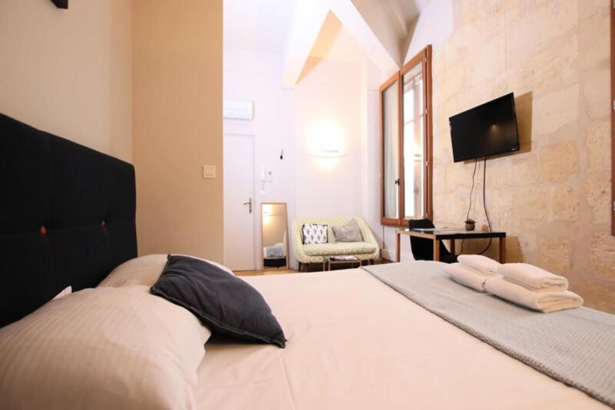 Beliggende i hjertet af Bordeaux tilbyder denne lejlighed på 30 m² den perfekte blanding af moderne komfort og historisk charme. Beliggende kun få skridt fra Place des Quinconces, Place de la Bourse og det ikoniske Grand Théâtre, er denne beliggenhed ideel til at udforske byens rige kultur og arv. Lejlighedens fredelige omgivelser på en stille gade giver et fredfyldt tilflugtssted, mens dens nærhed til Bordeauxs pulserende attraktioner og direkte adgang til sporvognen sikrer, at du aldrig er langt fra byens spænding. Nærliggende attraktioner omfatter det historiske Grand Théâtre, det maleriske Place des Quinconces og det livlige butikskvarter Triangle d'Or. Udforsk den berømte vinkultur i Bordeaux eller slentre langs Garonne-floden for at få en smag af byens charme. Med fremragende transportforbindelser og lokale faciliteter tilbyder denne lejlighed en perfekt base for dit Bordeaux-eventyr. Nyligt renoveret lejlighed har en lys, indbydende atmosfære med store karnapper og bordeaux-sten. Det hyggelige soveområde med en 160x200 cm seng lover afslappende nætter, mens det fuldt udstyrede køkken giver dig mulighed for nemt at tilberede dine måltider. Badeværelset har en stilfuld italiensk bruser og en granitvask. Moderne bekvemmeligheder såsom aircondition, tv, Wi-Fi og et lille skrivebord til arbejdet er også til rådighed, hvilket sikrer, at dit ophold er både behageligt og bekvemt.
