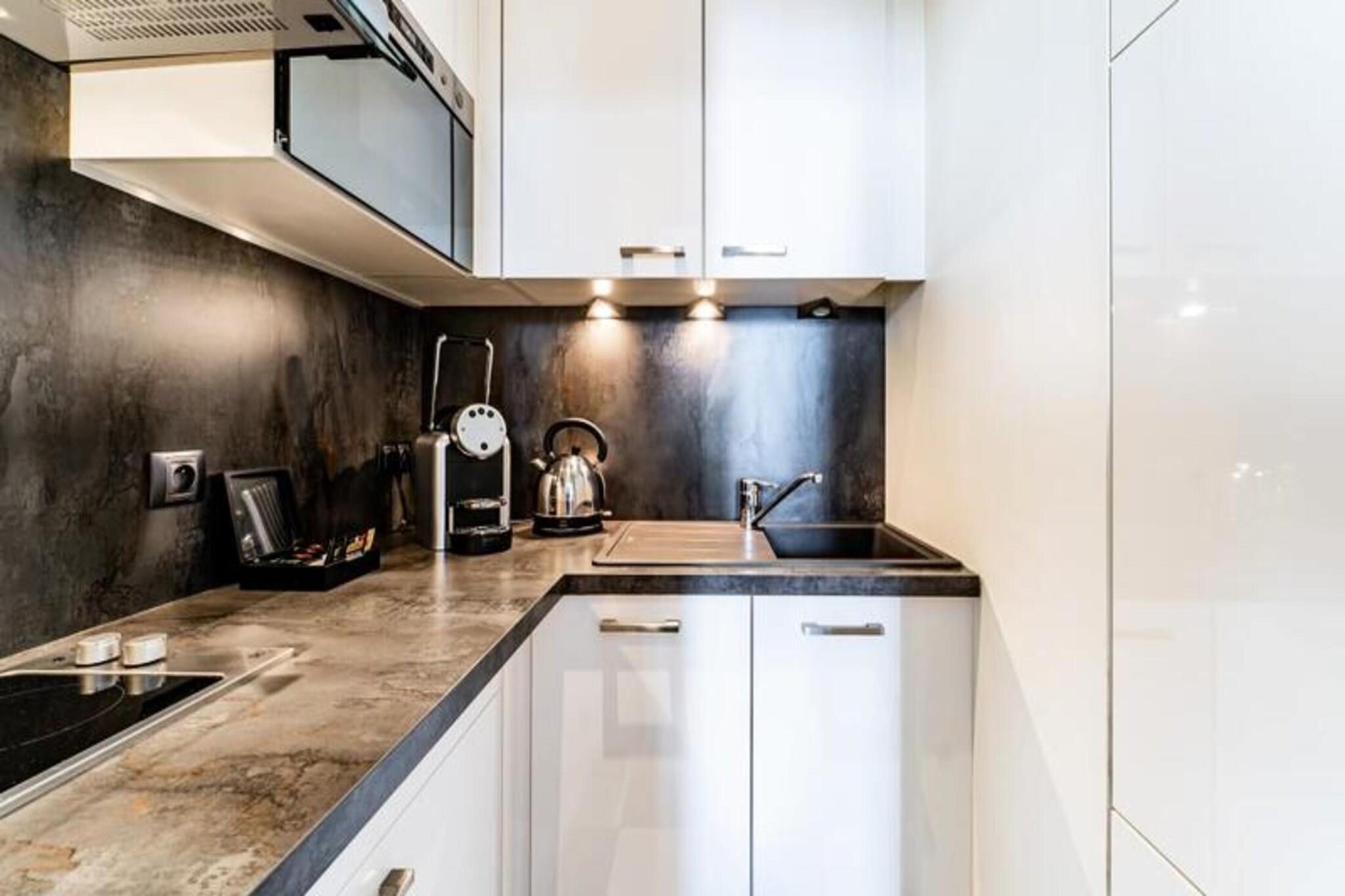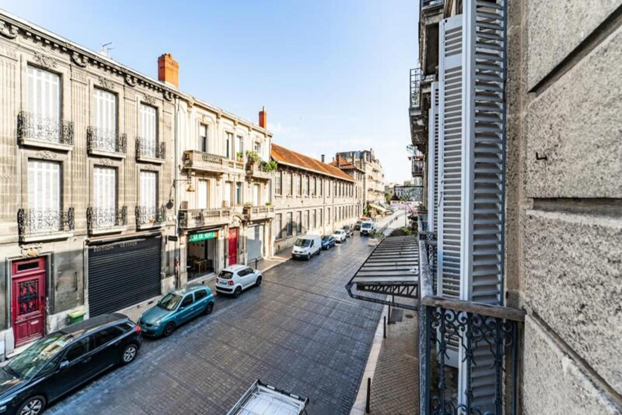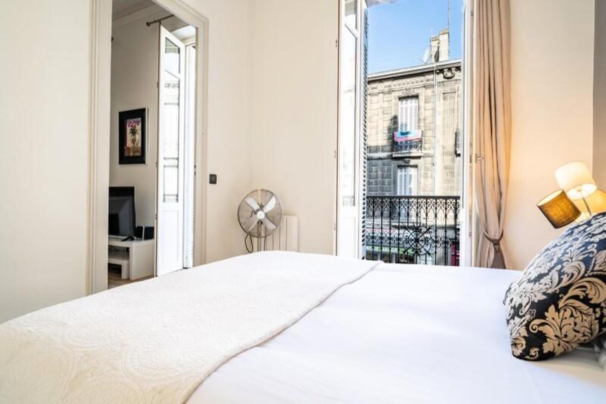 Denne charmerende lejlighed, beliggende i hjertet af Bordeauxs historiske Saint-Michel-distrikt, tilbyder et elegant og behageligt ophold for gæsterne. Med en rummelig opholdsstue kan lejligheden rumme op til fire personer og har et stilfuldt design inspireret af 1920'ernes elegance. Stuen er indrettet med en lædersofa, fladskærms-tv og højhastighedsinternet, perfekt til at slappe af efter en dag med udforskning. Soveværelset i fransk stil åbner ud til en privat balkon, der giver et fredeligt tilflugtssted. Lejlighedens beliggenhed placerer gæsterne kun få skridt fra ikoniske Bordeaux-attraktioner. Basilikaen Saint-Michel og dets klokketårn er i nærheden, mens Place des Capucins, hjemsted for byens største og ældste marked, er inden for gåafstand. Dette travle område, der er rigt på historie og lokal tradition, byder på en blanding af pulserende markedsliv, antikvitetsbutikker og bistroer, hvilket gør det til et ideelt sted for både historieentusiaster, madelskere og tilbudsjægere. Nabolaget nyder også godt af fremragende offentlige transportforbindelser, hvor sporvognen giver nem adgang til resten af ??Bordeaux. Gæsterne kan nå byens centrum fra både Mérignac Lufthavn og Bordeaux Saint-Jean Station med kun en kort sporvognstur og 5 minutters gang. Lejligheden er veludstyret til et behageligt ophold med et køkken med moderne apparater såsom mikrobølgeovn, ovn, opvaskemaskine og køleskab. Soveværelset har en luksuriøs 160 x 200 cm seng med en memory foam madras til afslappende søvn.