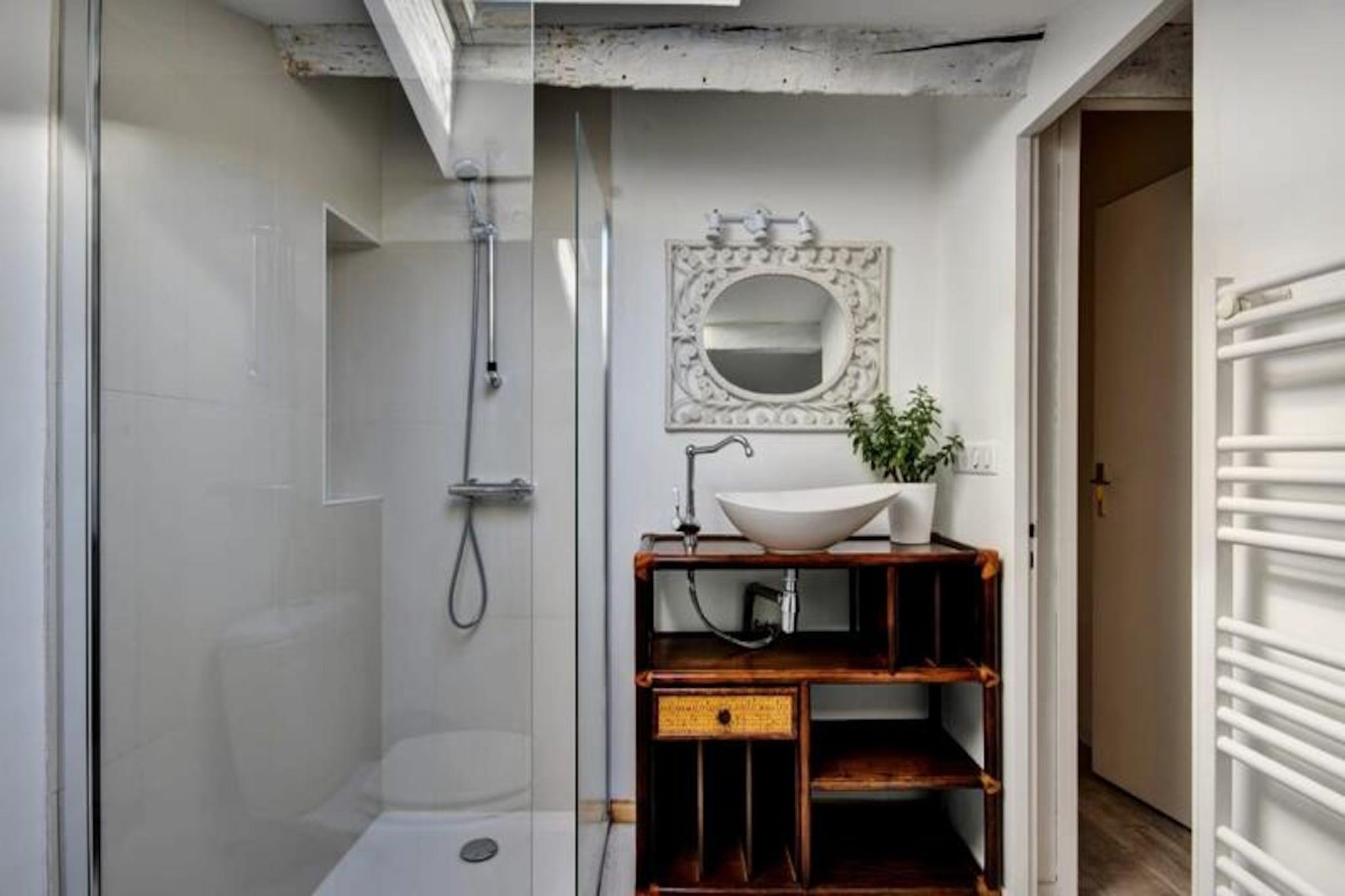 Træd ind i Bordeaux' charme med denne udsøgte duplexlejlighed på 67 m², beliggende i en historisk bygning fra det 18. århundrede, der er på UNESCOs verdensarvsliste. Beliggende på 4. sal tilbyder denne bolig en betagende udsigt over den ikoniske Pont de Pierre, den fredfyldte Garonne-flod og den frodige højre bred. Denne lejlighed er perfekt til op til seks gæster og kombinerer gammeldags elegance med moderne komfort og lover et uforglemmeligt ophold i hjertet af Bordeauxs pulserende historiske distrikt. Lejligheden har en rummelig opholdsstue med fladskærms-tv, en hyggelig sofa og rigelig opbevaringsplads. Det åbne køkken er fuldt udstyret med high-end apparater, herunder induktionskogeplade, multifunktionsovn, opvaskemaskine og kaffemaskine, hvilket gør det ideelt til at tilberede måltider til at nyde ved spisebordet på køkkenøen. Stueetagen indeholder også et roligt soveværelse med dobbeltseng og et eget badeværelse med bruser samt et separat toilet. Ovenpå fuldender to yderligere soveværelser med dobbeltsenge og et andet badeværelse med bruser og toilet planløsningen og tilbyder komfort og privatliv for alle gæster. Beliggende i Bordeauxs historiske centrum, er du kun få skridt fra byens mest ikoniske attraktioner. Gå en tur langs Garonne-floden, beundr de brostensbelagte gader i Saint-Pierre-distriktet, eller udforsk den multikulturelle stemning i Saint-Michel. Sainte-Croix-distriktet og dets grønne områder ligger i nærheden, såvel som den travle Place de la Bourse og det fascinerende vandspejl. Essentielle butikker, bagerier og gourmetrestauranter ligger inden for gåafstand, hvilket sikrer bekvemmelighed under hele dit ophold. Uanset om du er her for at nyde Bordeauxs legendariske vinkultur, fordybe dig i dens rige historie eller blot nyde de maleriske omgivelser, tilbyder denne lejlighed den perfekte base for dit eventyr. Oplev Bordeauxs elegance og livlighed som aldrig før.