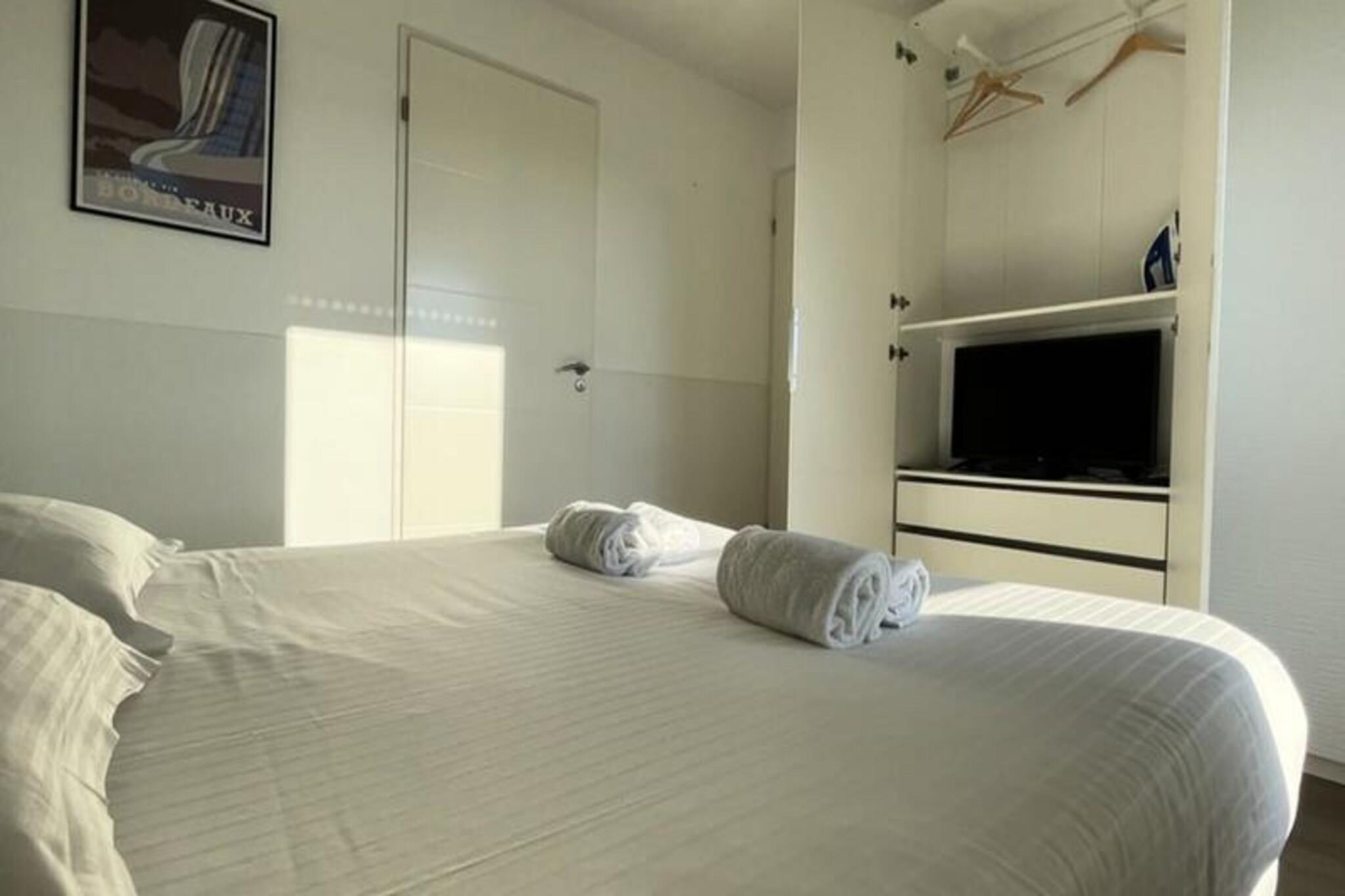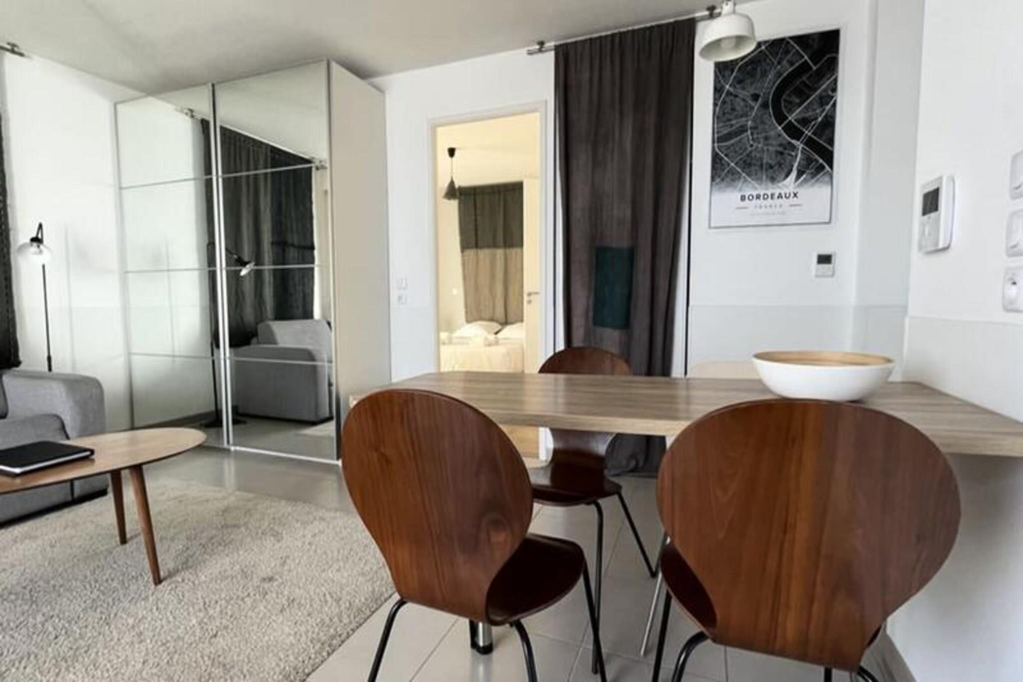 Denne moderne lejlighed er beliggende i det pulserende Bassins à Flot-distrikt i Bordeaux, et livligt område fyldt med nye udviklinger, restauranter og attraktioner, hvilket gør det til en perfekt base for at udforske byen. Beliggende kun få skridt fra det berømte vinmuseum tilbyder lejligheden en stilfuld blanding af moderne komfort og Bordeaux-charme. Det har en rummelig stue med hyggelige møbler og et fjernsyn, ideelt til afslapning. Køkkenet er fuldt udstyret og giver alt det nødvendige for et bekvemt ophold. Soveværelset byder på en afslappende plads med en komfortabel dobbeltseng. Et af højdepunkterne er den oplyste terrasse, perfekt til at nyde et glas vin på milde aftener. Lejligheden har også et moderne badeværelse og sikker parkering, hvilket tilføjer ekstra bekvemmelighed til dit ophold. Bordeauxs spændende Bassins à Flot-distrikt er godt forbundet med nem adgang til byens attraktioner. Vinmuseet er lige rundt om hjørnet og tilbyder en fordybende oplevelse ind i vinens verden. For shopping er Quai des Marques i nærheden, et udendørs shoppingområde med smuk udsigt over Jacques Chaban-Delmas-broen. Det historiske Chartrons-distrikt, der er kendt for sin rige købmandshistorie og smukke arkitektur, ligger kun en kort gåtur væk og byder på trendy caféer og butikker. Andre berømte steder som Place de la Bourse og Miroir d'Eau er en kort sporvognstur væk, hvilket gør denne lejlighed til et ideelt sted for at udforske Bordeauxs historie, kultur og moderne attraktioner.