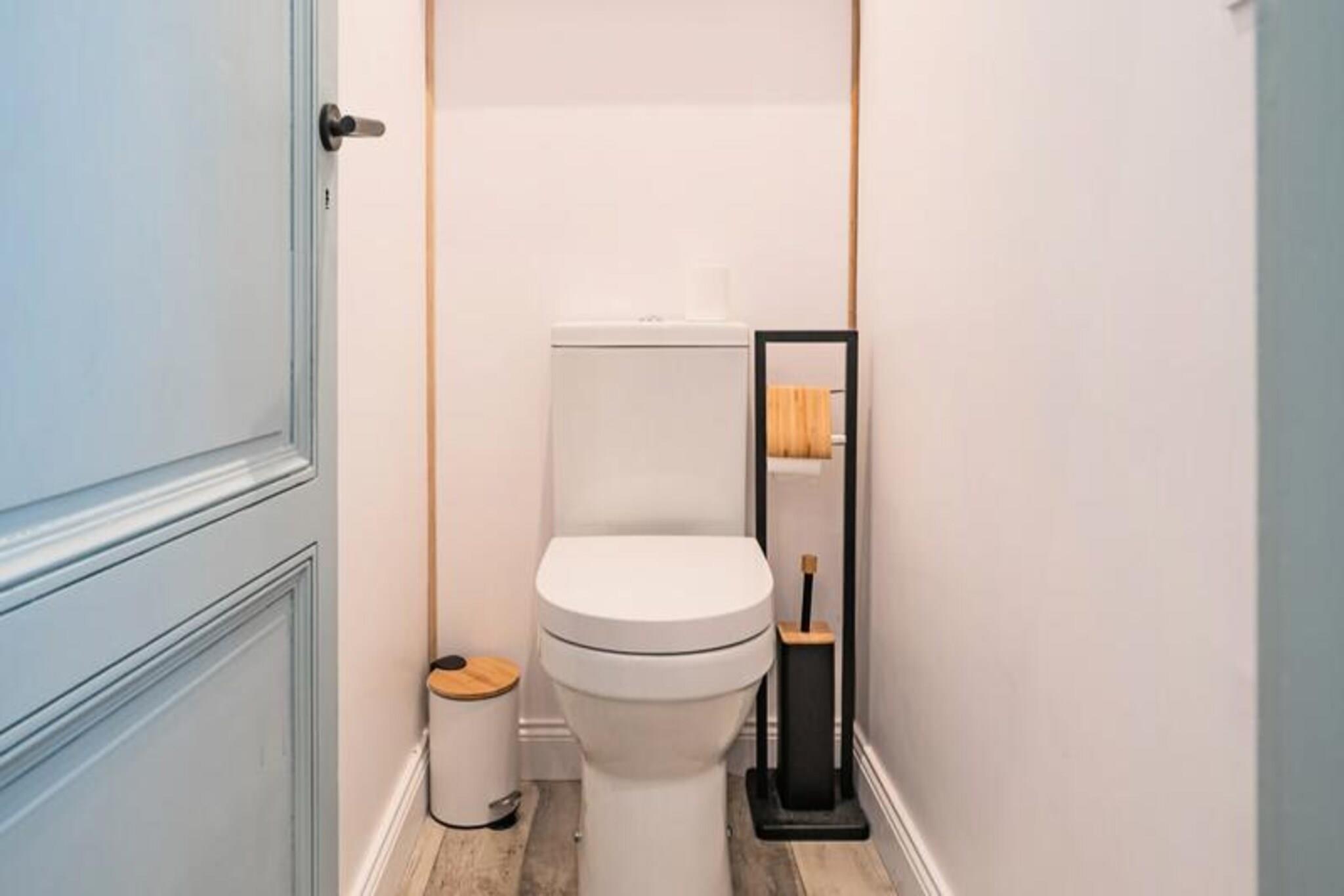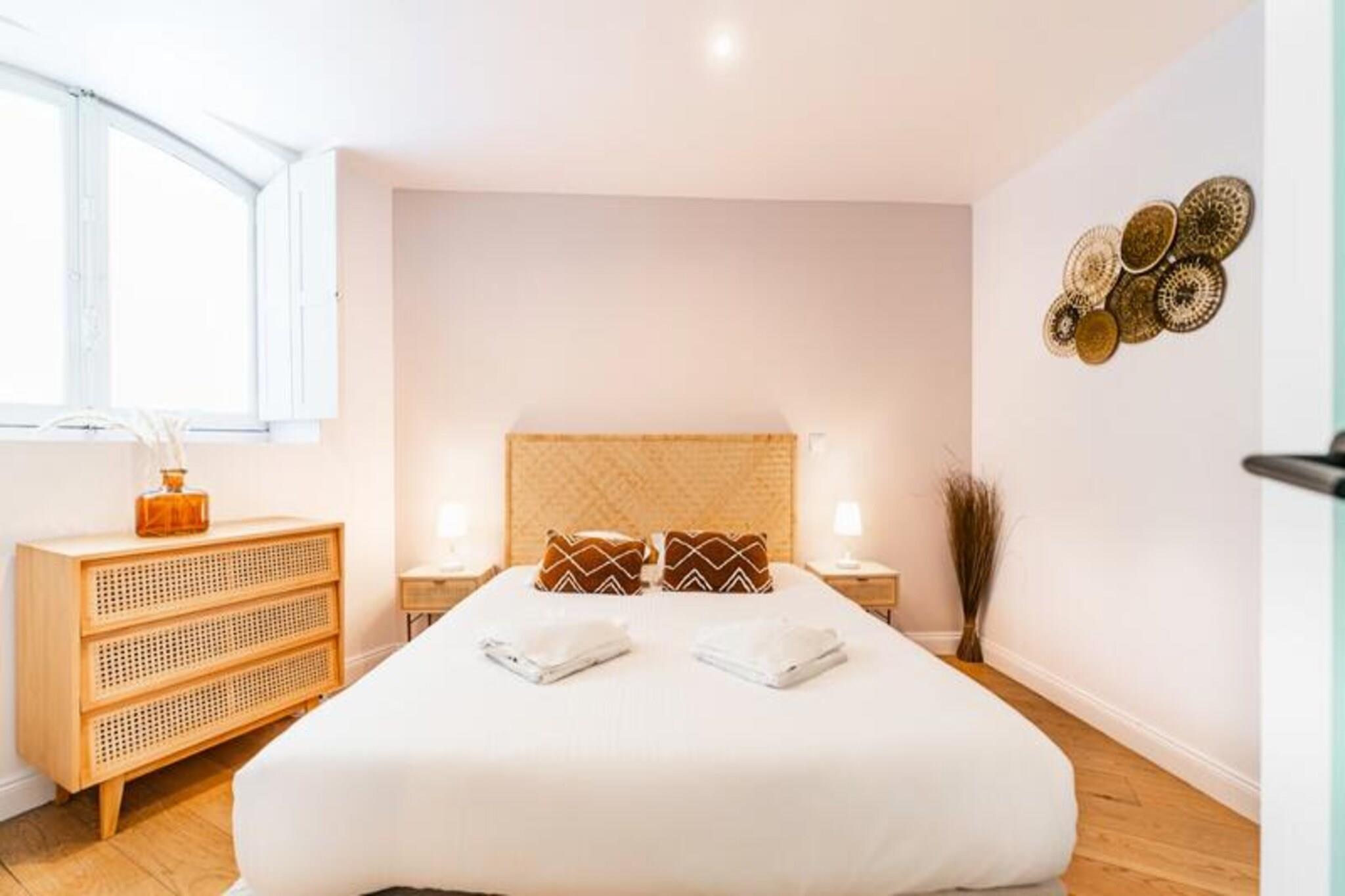 Denne smukt renoverede 73 m² duplex lejlighed, beliggende på første sal i en sikker bygning i et historisk og fredeligt Bordeaux-kvarter, tilbyder et enestående tilflugtssted for op til seks gæster. Det har tre smagfuldt indrettede soveværelser, en rummelig stue og en træterrasse perfekt til afslapning. Indkvarteringen omfatter to moderne bruserum (det ene med integreret toilet), et separat toilet og en barneseng til familier. Personlig concierge-service og leveringsmuligheder for morgenmad sikrer et problemfrit ophold. Lejligheden er perfekt beliggende ved porten til Jardin Public og tilbyder nem adgang til Bordeauxs vigtigste attraktioner. Nærliggende sporvognslinjer forbinder til Gambetta Mériadeck og Jardin Public, med Mérignac Lufthavn tilgængelig med sporvogn eller bus. Gare Saint Jean er forbundet med sporvogn C. Gadeparkering er tilgængelig på de angivne tidspunkter, med yderligere muligheder på den offentlige parkeringsplads "Cité Mondiale", kun 10 minutter væk. Duplexen har et fuldt udstyret køkken med ovn, køleskab, komfur, kaffemaskine og opvaskemaskine. Gæsterne kan nyde Wi-Fi, fjernsyn og en valgfri høj stol mod et ekstra gebyr. Denne ejendom kombinerer lokal historie med moderne bekvemmeligheder og tilbyder en perfekt base for at udforske den UNESCO-listede by.