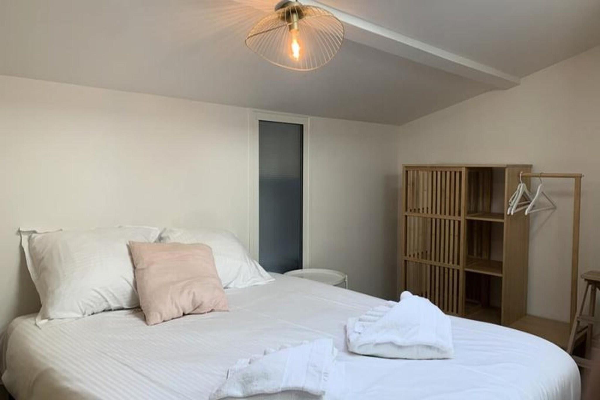 Dette charmerende hus i baskisk stil ligger kun 600 meter fra stranden, i et fredeligt boligområde, og tilbyder den perfekte base for et afslappende ophold i Arcachon. Det 85 m² store et-etagers hus har en rummelig stue med aircondition og et fuldt udstyret køkken, herunder gaskomfur, mikroovn, opvaskemaskine og Nespresso-kaffemaskine. Nærliggende attraktioner omfatter basilikaen Notre-Dame d'Arcachon, kun en kort gåtur væk, og den naturskønne Arcachon-bugt, som er ideel til at udforske de omkringliggende strande og den naturlige skønhed. Uanset om du leder efter et roligt tilflugtssted eller ønsker at udforske området, tilbyder dette hus en perfekt blanding af komfort og beliggenhed. Gæsterne kan nyde to møblerede terrasser - en foran og en anden, mere privat bagerst i huset. Med nem gadeparkering og nærhed til lokale butikker, herunder et Carrefour-marked kun 400 meter væk, tilbyder denne ejendom en fantastisk beliggenhed for bekvemmelighed. Arcachon kommunale marked ligger kun 900 meter fra huset, perfekt til friske lokale råvarer. Køkkenet er adskilt af en central ø, og stuen åbner ud til en bagterrasse, ideel til udendørs afslapning. Huset kan rumme op til 6 gæster med tre komfortable soveværelser, herunder en master suite med en 160 cm seng og et privat badeværelse. Et ekstra soveværelse har en 160 cm seng, og det tredje har to 90 cm senge. Et ekstra badeværelse og et separat toilet er også tilgængelige for nemheds skyld. ..