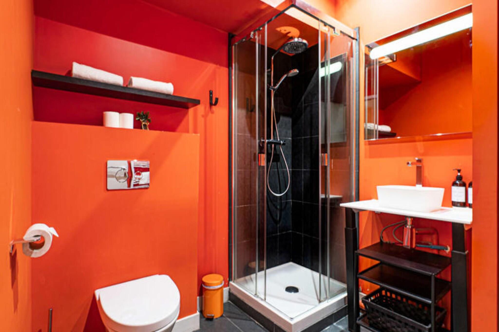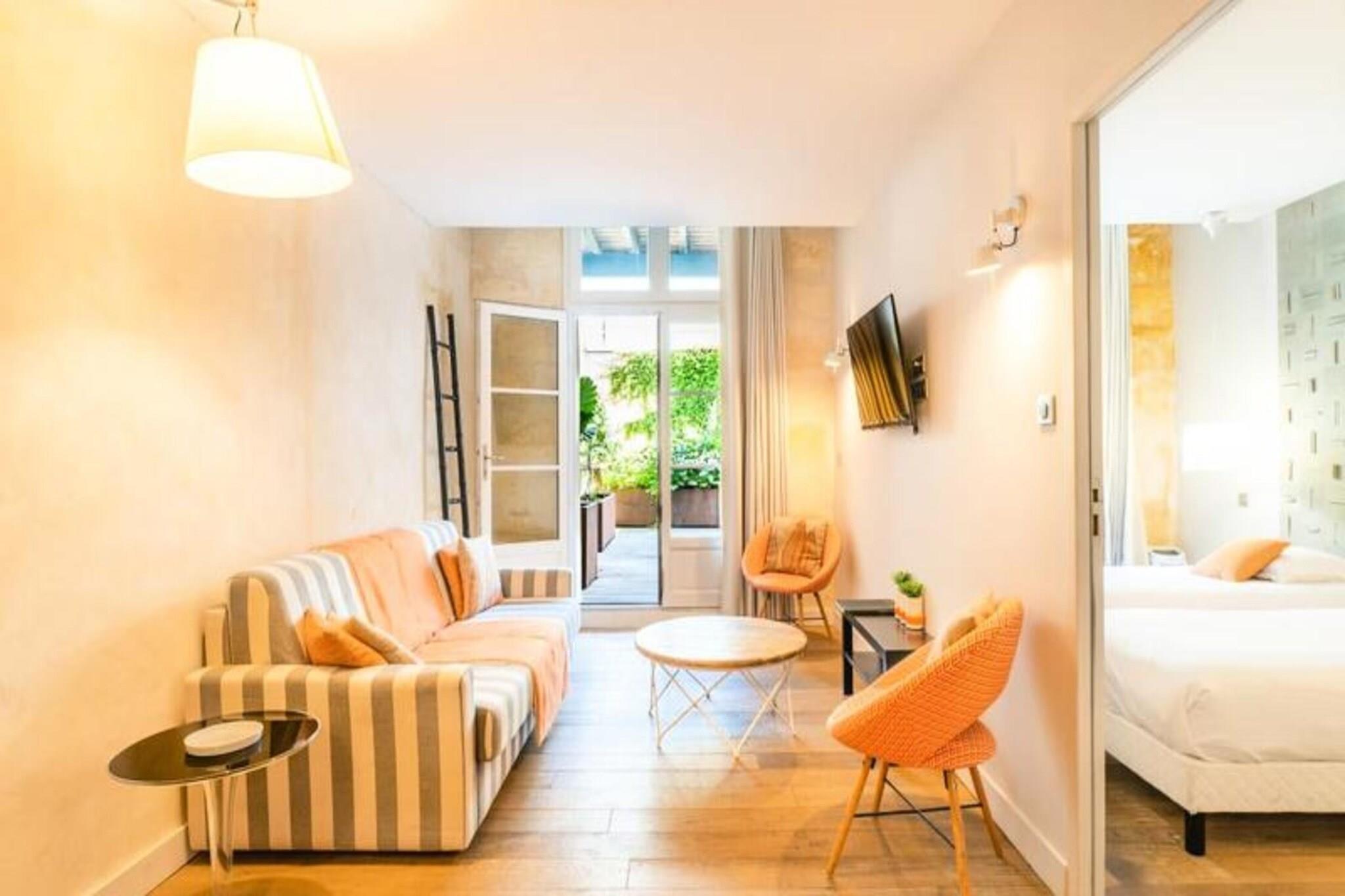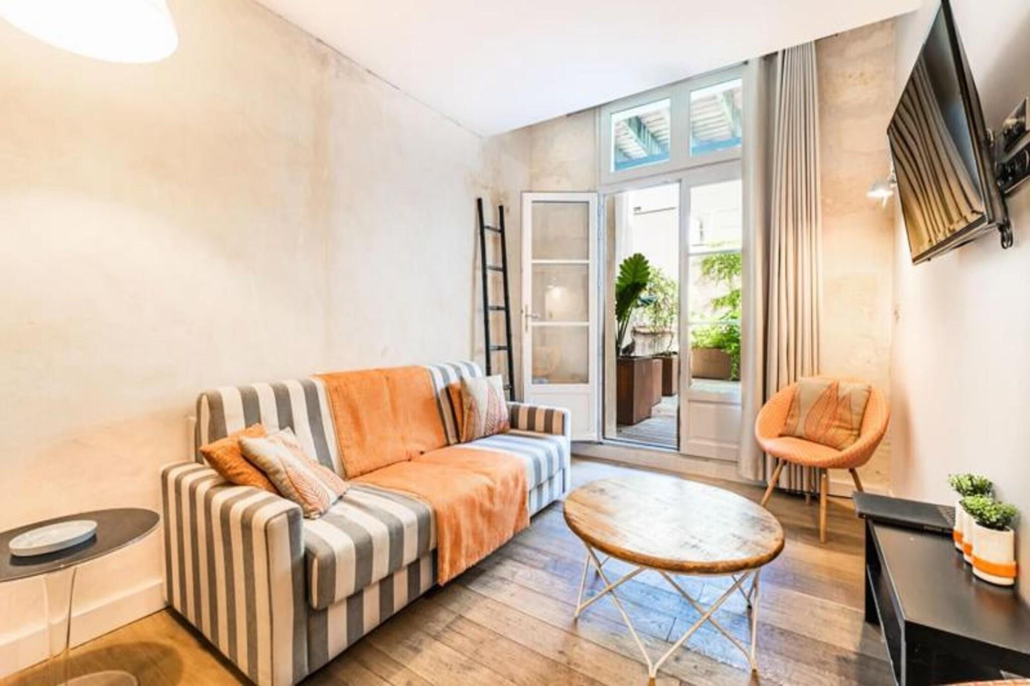 Denne rolige, møblerede lejlighed på 63 m², beliggende på 1. sal (uden elevator), tilbyder et komfortabelt og stilfuldt ophold i hjertet af Bordeaux. Lejligheden er ideelt beliggende tæt på det berømte Museum of Contemporary Art (CAPC) og de naturskønne kajer langs Garonne-floden. Med en sporvognsstation lige udenfor, har du nem adgang til at udforske byen i dit eget tempo. Lejligheden er gennemtænkt designet og byder på en rummelig stue med en sovesofa, to lænestole, et sofabord, tv, Wi-Fi og et spisebord til seks personer. Det åbne køkken er fuldt udstyret med moderne apparater, herunder en ovn, mikroovn, opvaskemaskine, køleskab, kogeplader, elkedel, Nespresso kaffemaskine og brødrister. De to soveværelser er hyggelige og komfortable: det ene med en dobbeltseng og det andet med to enkeltsenge, begge med garderobeskabe. De to bruserum er udstyret med håndvaske, håndklædetørrere og toilet. En iøjnefaldende funktion er den store 36 m² store terrasse, perfekt til at nyde udendørs øjeblikke. Praktiske faciliteter såsom en vaskemaskine-tørretumbler, hårtørrer og strygejern sikrer et problemfrit ophold. Lejligheden leverer også linned (lagner, håndklæder, viskestykker), med opredte senge ved ankomsten. Bordeaux' pulserende bymidte ligger inden for gåafstand, hvor du kan besøge kulturelle vartegn, spise på fine restauranter og shoppe i unikke butikker. Bordeaux er også verdensberømt for sin vin, og de omkringliggende vinmarker byder på uforglemmelige vinture.
