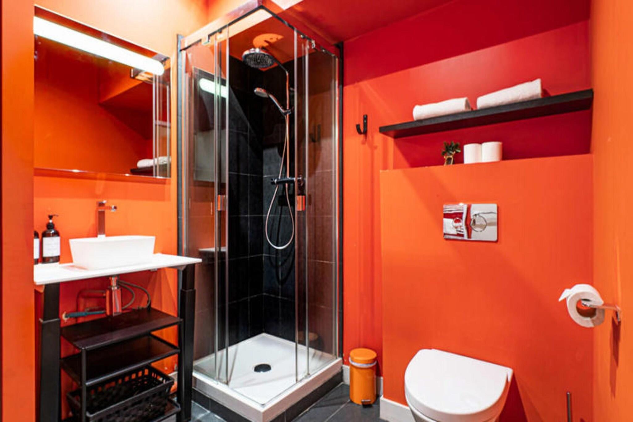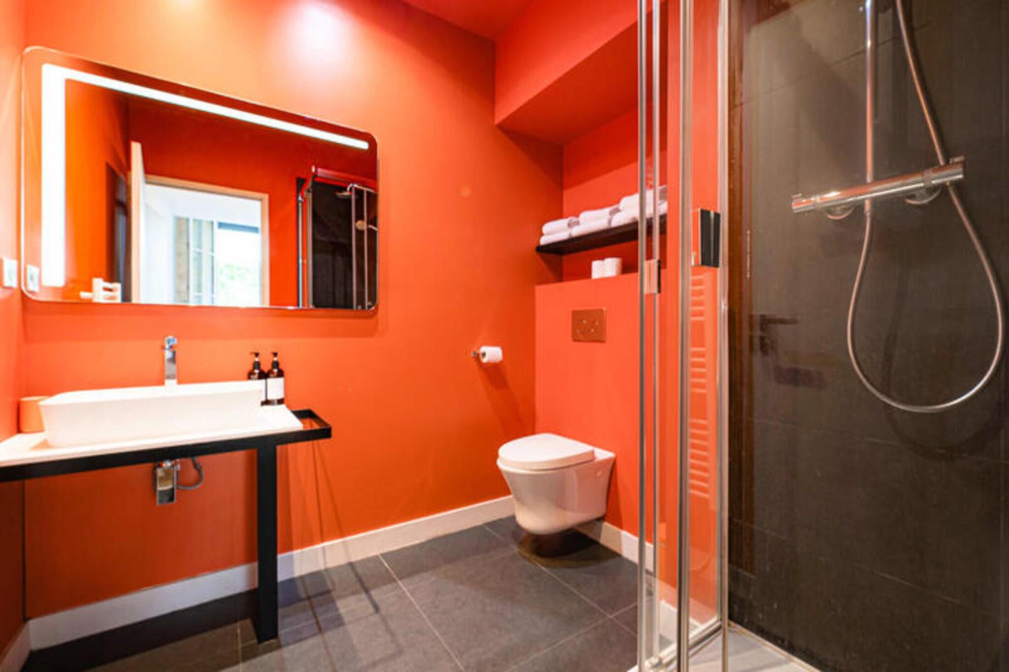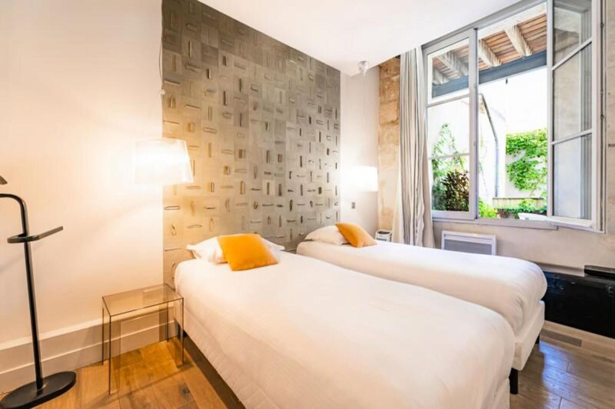 Denne rolige, møblerede lejlighed på 63 m², beliggende på 1. sal (uden elevator), tilbyder et komfortabelt og stilfuldt ophold i hjertet af Bordeaux. Lejligheden er ideelt beliggende tæt på det berømte Museum of Contemporary Art (CAPC) og de naturskønne kajer langs Garonne-floden. Med en sporvognsstation lige udenfor, har du nem adgang til at udforske byen i dit eget tempo. Lejligheden er gennemtænkt designet og byder på en rummelig stue med en sovesofa, to lænestole, et sofabord, tv, Wi-Fi og et spisebord til seks personer. Det åbne køkken er fuldt udstyret med moderne apparater, herunder en ovn, mikroovn, opvaskemaskine, køleskab, kogeplader, elkedel, Nespresso kaffemaskine og brødrister. De to soveværelser er hyggelige og komfortable: det ene med en dobbeltseng og det andet med to enkeltsenge, begge med garderobeskabe. De to bruserum er udstyret med håndvaske, håndklædetørrere og toilet. En iøjnefaldende funktion er den store 36 m² store terrasse, perfekt til at nyde udendørs øjeblikke. Praktiske faciliteter såsom en vaskemaskine-tørretumbler, hårtørrer og strygejern sikrer et problemfrit ophold. Lejligheden leverer også linned (lagner, håndklæder, viskestykker), med opredte senge ved ankomsten. Bordeaux' pulserende bymidte ligger inden for gåafstand, hvor du kan besøge kulturelle vartegn, spise på fine restauranter og shoppe i unikke butikker. Bordeaux er også verdensberømt for sin vin, og de omkringliggende vinmarker byder på uforglemmelige vinture.