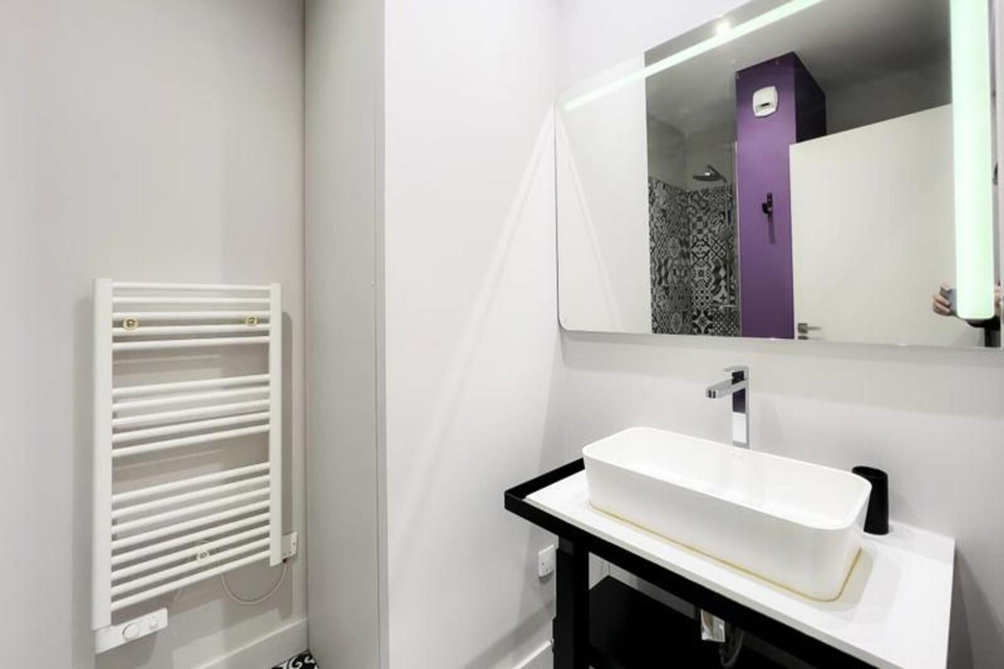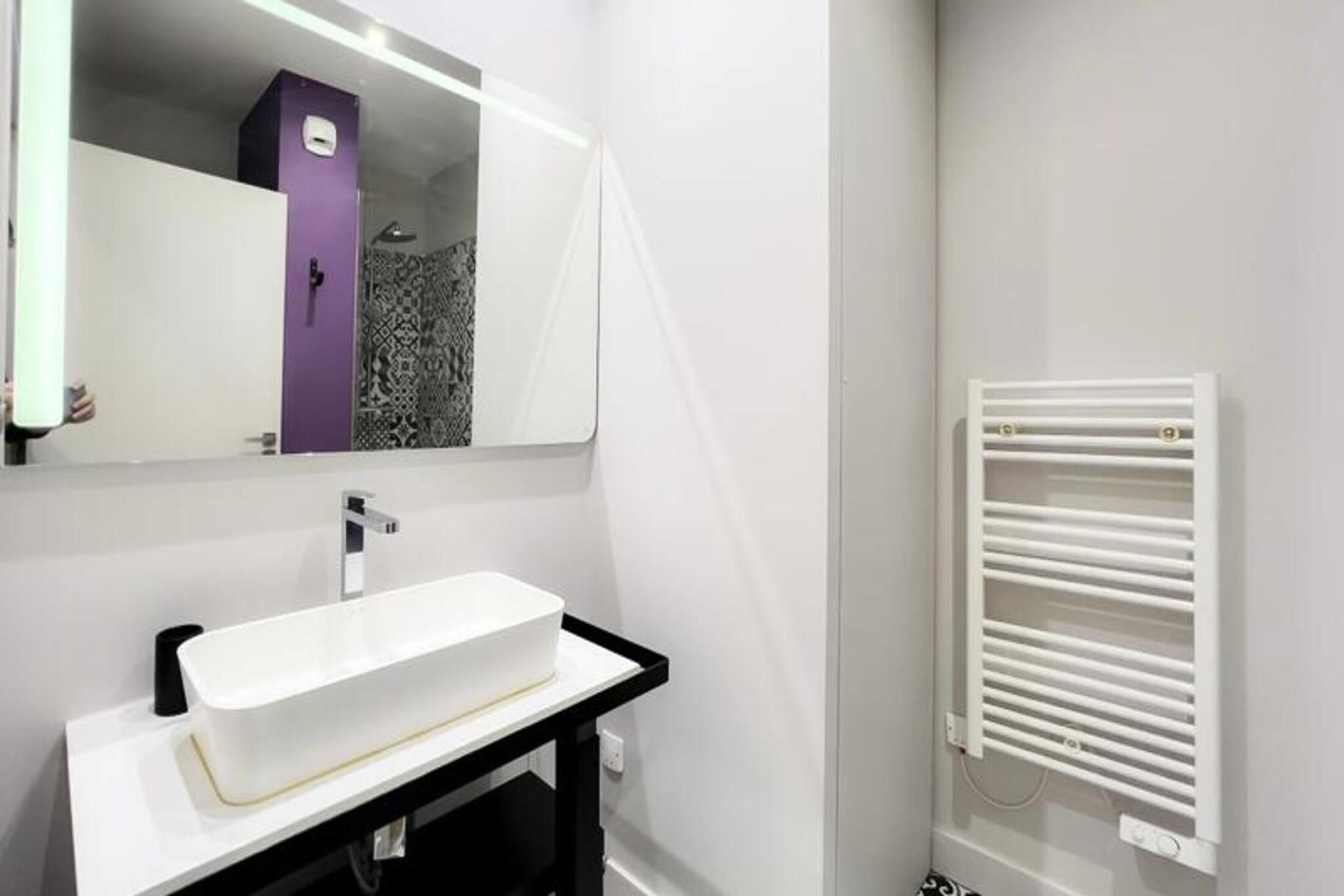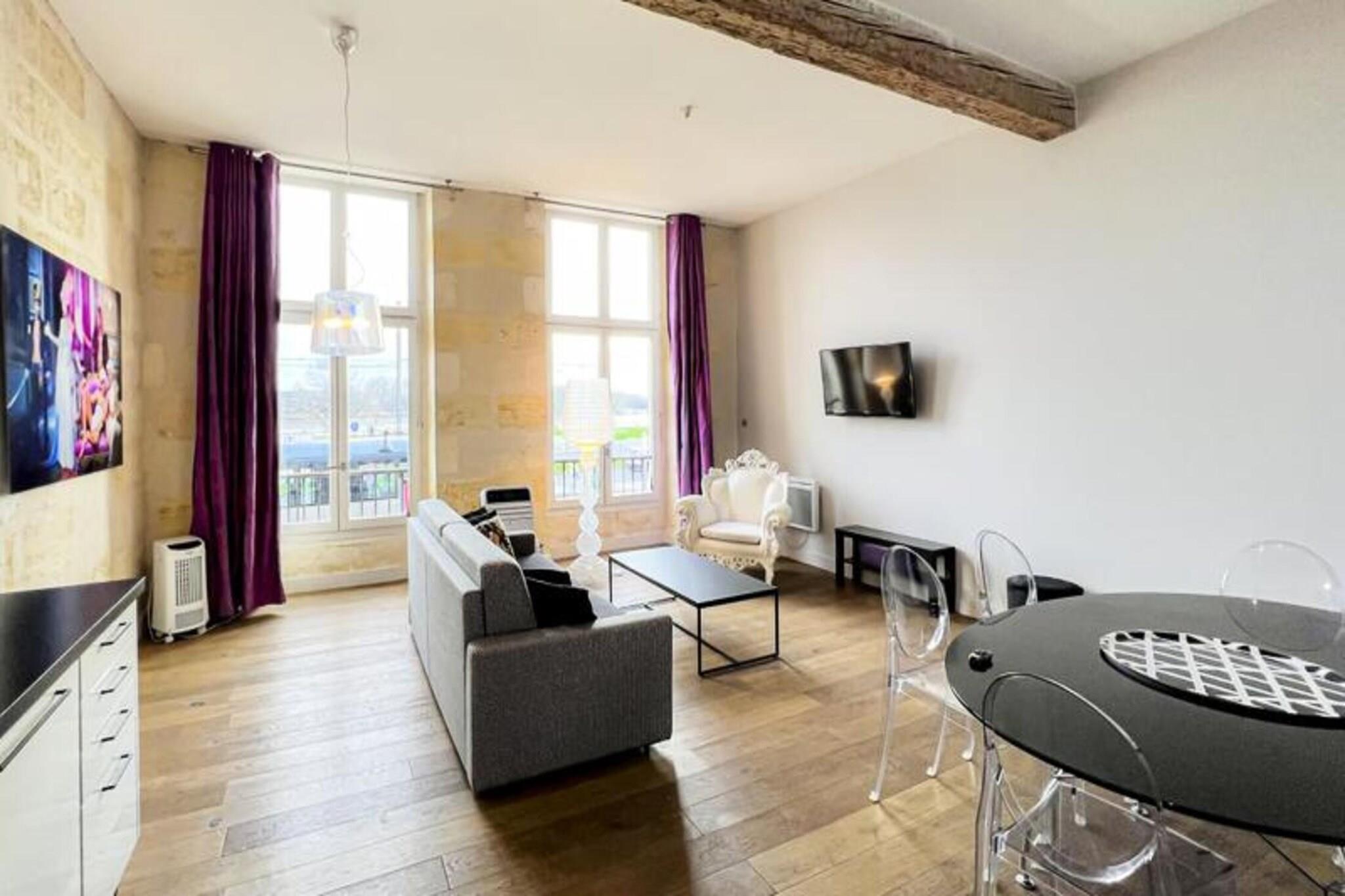 Denne charmerende 72 m² møblerede lejlighed tilbyder et komfortabelt og stilfuldt tilflugtssted i hjertet af Bordeaux, beliggende i en smuk stenbygning med udsigt over Garonne-floden. Ejendommen er beliggende på første sal uden elevator og leveres komplet med en parkeringsplads på den nærliggende Cité Mondiale parkeringsplads. Dens centrale beliggenhed giver nem adgang til Bordeauxs største attraktioner, herunder det berømte Museum of Contemporary Art (CAPC) og de maleriske kajer langs floden, kun få skridt væk. Den nærliggende sporvogn B-station gør det nemt at udforske byens pulserende kvarterer på din fritid. Lejligheden er gennemtænkt designet med en rummelig stue med en sofa, to lænestole, et sofabord og et tv, alt sammen forbundet med en spiseplads med et bord til seks. Det åbne køkken er fuldt udstyret med moderne apparater såsom ovn, mikroovn, opvaskemaskine, køleskab, kogeplader, elkedel, Nespresso kaffemaskine og brødrister. Det er perfekt til at tilberede måltider under dit ophold. Ejendommen indeholder to hyggelige soveværelser: et med dobbeltseng (160 x 200 cm) og kommode, og det andet med to enkeltsenge (90 x 200 cm) og et klædeskab. Bruserummet er udstyret med håndvask, håndklædetørrer og toilet. Lejligheden leveres også med nyttige bekvemmeligheder såsom en vaskemaskine-tørretumbler, strygejern, hårtørrer og husholdnings sengetøj, med opredte senge ved ankomsten. Det stilfulde, men praktiske rum sikrer et behageligt ophold på en af ??Bordeauxs mest ikoniske steder, med nem adgang til lokale butikker, restauranter og den naturskønne Garonne.