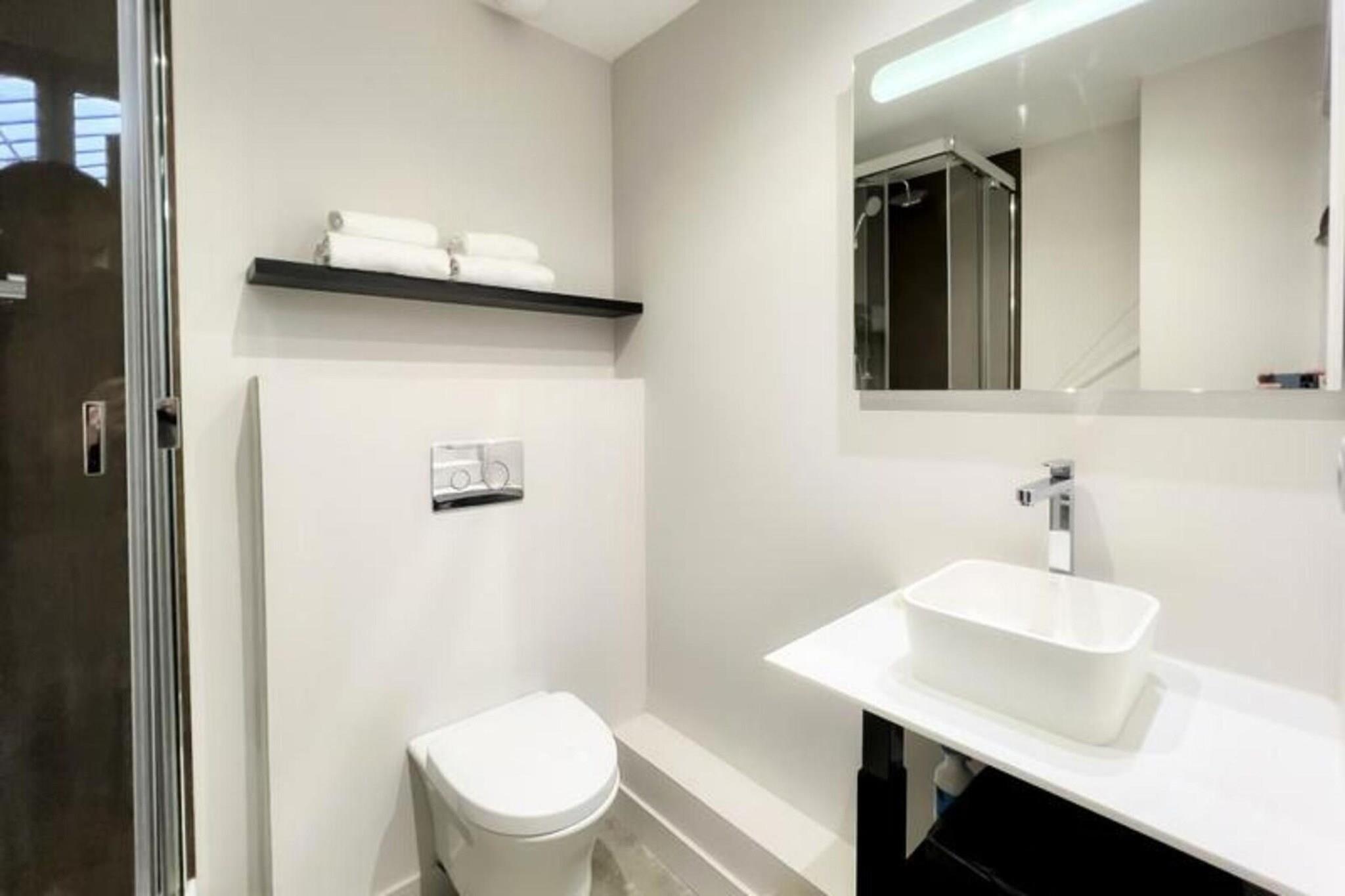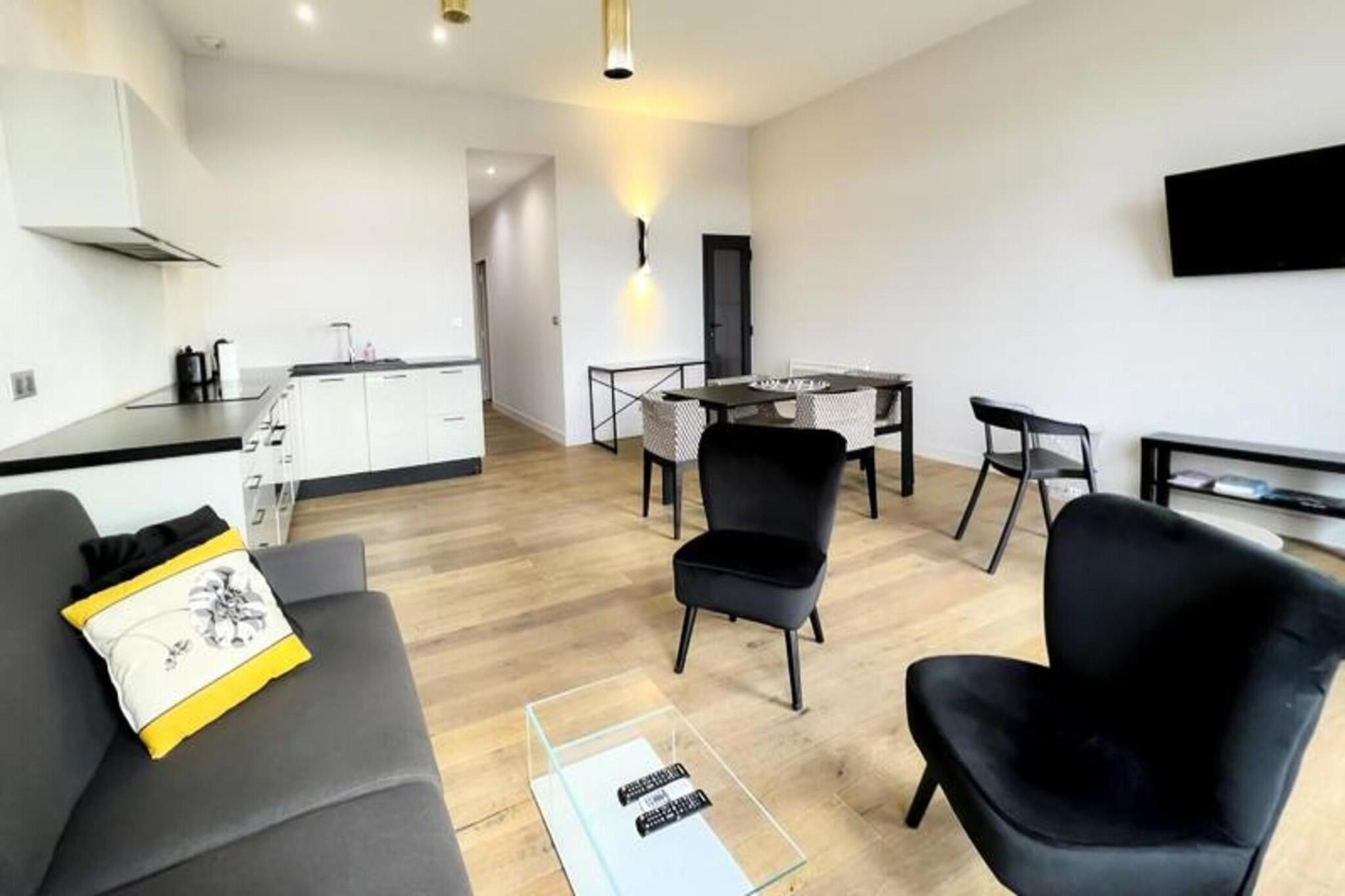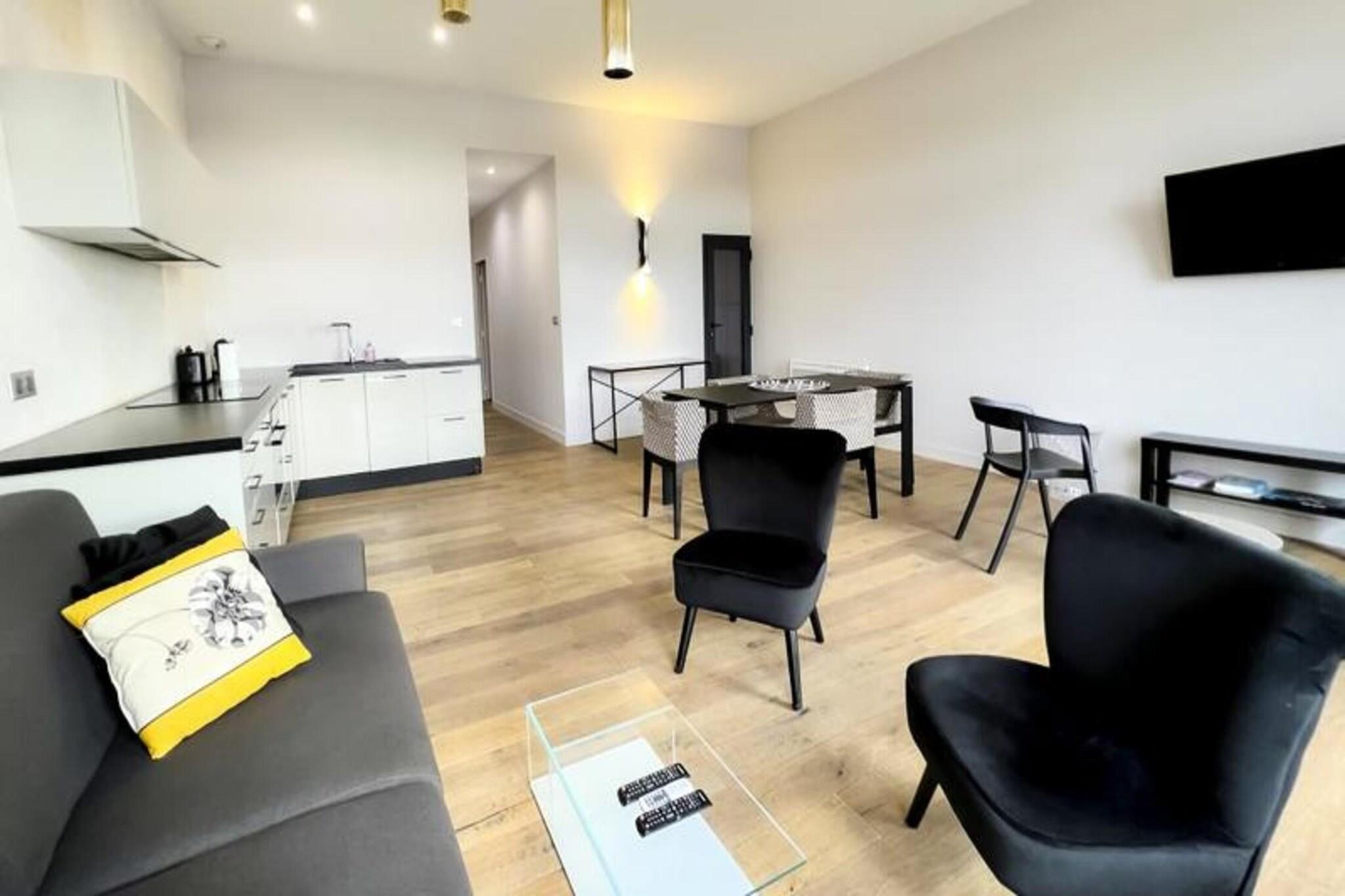 Denne 72 m² møblerede lejlighed kan komfortabelt rumme op til 6 personer. Den har et soveværelse med en 160 x 200 cm dobbeltseng og et andet soveværelse med to 90 x 200 cm enkeltsenge. Den rummelige stue indeholder en sovesofa, to lænestole, et sofabord og et tv, hvilket giver rigelig plads til afslapning. Lejligheden er kæledyrsvenlig, og husholdningslinned (lagner, håndklæder og viskestykker) er forsynet med opredte senge ved ankomst. Selvom der ikke er en balkon, vil gæsterne nyde bekvemmeligheden ved et fuldt udstyret åbent køkken, aircondition og Wi-Fi. Derudover er en privat parkeringsplads inkluderet, med ekstra lejemuligheder som en sen check-in service tilgængelig efter anmodning. Beliggende i centrum af Bordeaux, er lejligheden kun en kort gåtur fra det berømte Museum of Contemporary Art (CAPC) og de naturskønne Garonne-flodkajer. Det er også bekvemt beliggende i nærheden af ??sporvognen (sporvogn B), der giver nem adgang til Bordeauxs pulserende bymidte. Byens berømte vinregion, UNESCO-listede vartegn og kulturelle attraktioner er alle i umiddelbar nærhed. Bordeaux togstation ligger kun 10 minutters gang væk, med busser og sporvognsstoppesteder i nærheden. Gæsterne kan nå Bordeaux-Mérignac Lufthavn på 30 minutter med transport, hvilket gør denne lejlighed til en ideel base for at udforske både byen og de omkringliggende attraktioner. Lejligheden byder på et fuldt udstyret køkken med moderne apparater, herunder en ovn/mikroovn, opvaskemaskine, køleskab, kogeplader, elkedel, Nespresso kaffemaskine og brødrister. For ekstra bekvemmelighed er lejligheden udstyret med en vaskemaskine, tørretumbler, strygejern og strygebræt. Badeværelset har bruser, håndvask, håndklædetørrer og toilet. Lejligheden er designet med alt det nødvendige for at gøre dit ophold behageligt, og et sikkert depositum på 750 euro er påkrævet for reservationer.