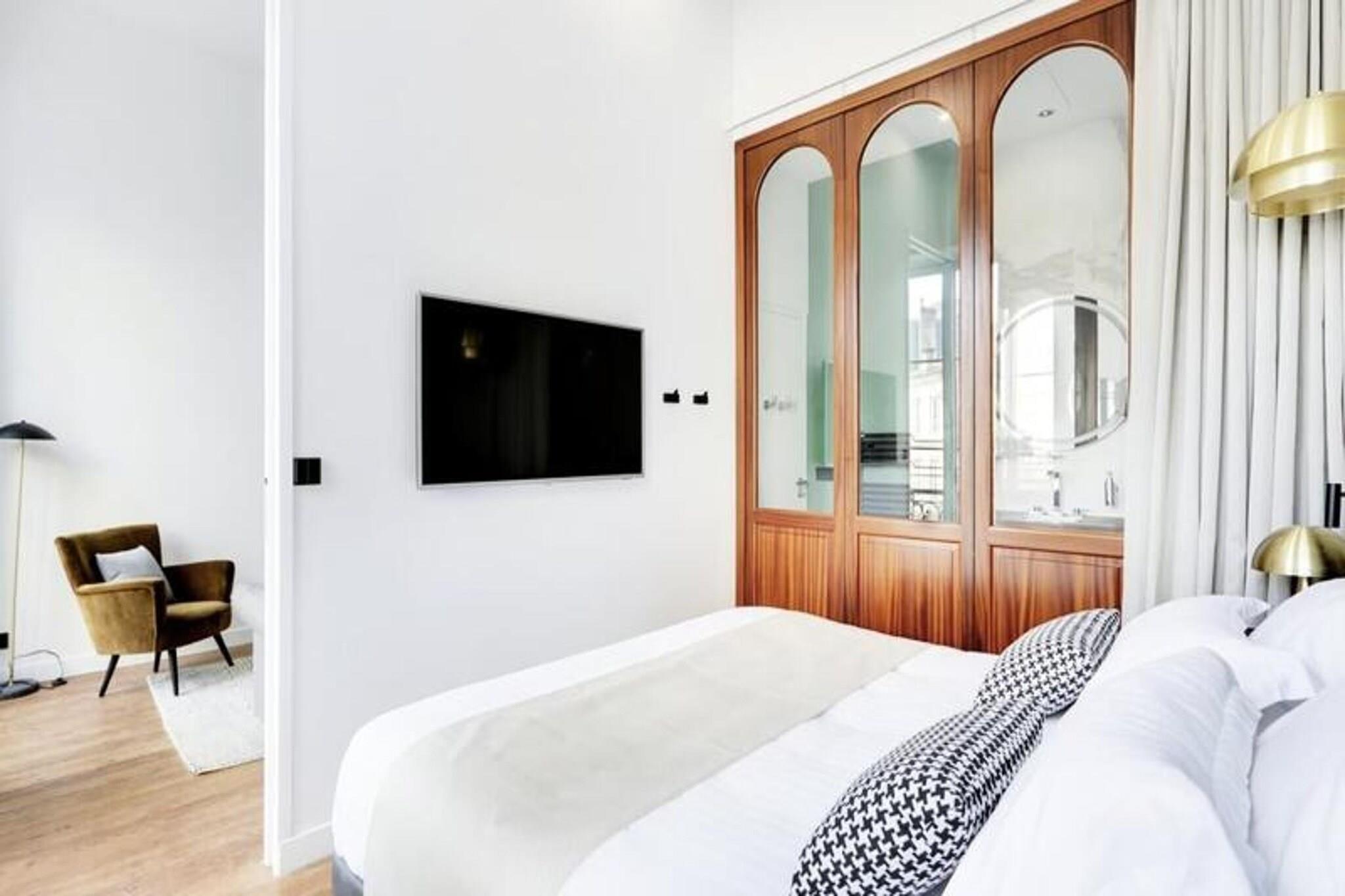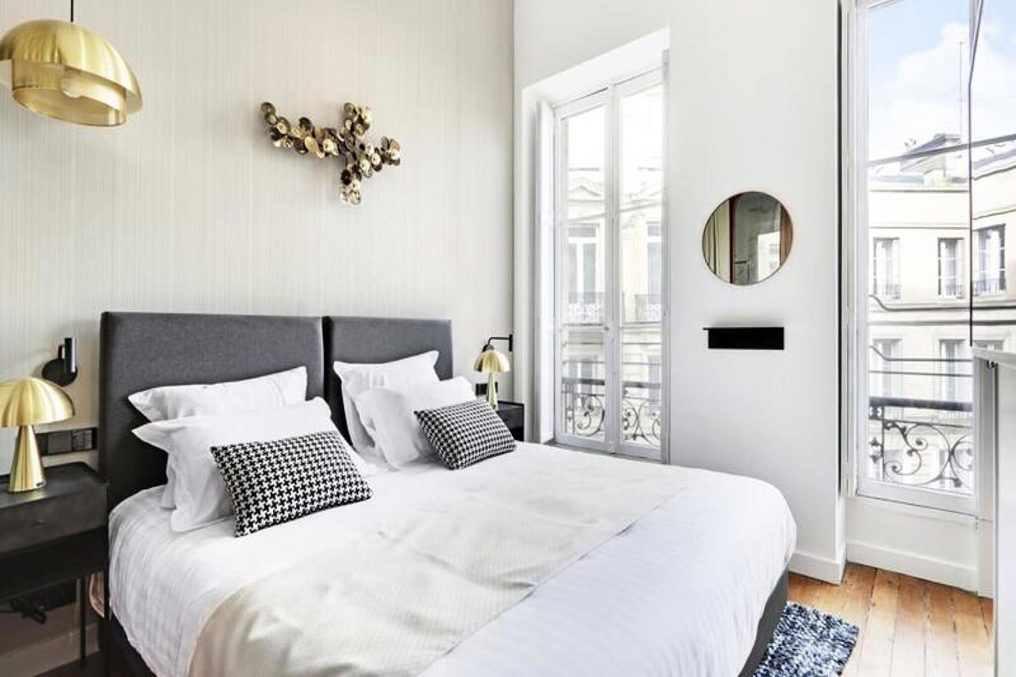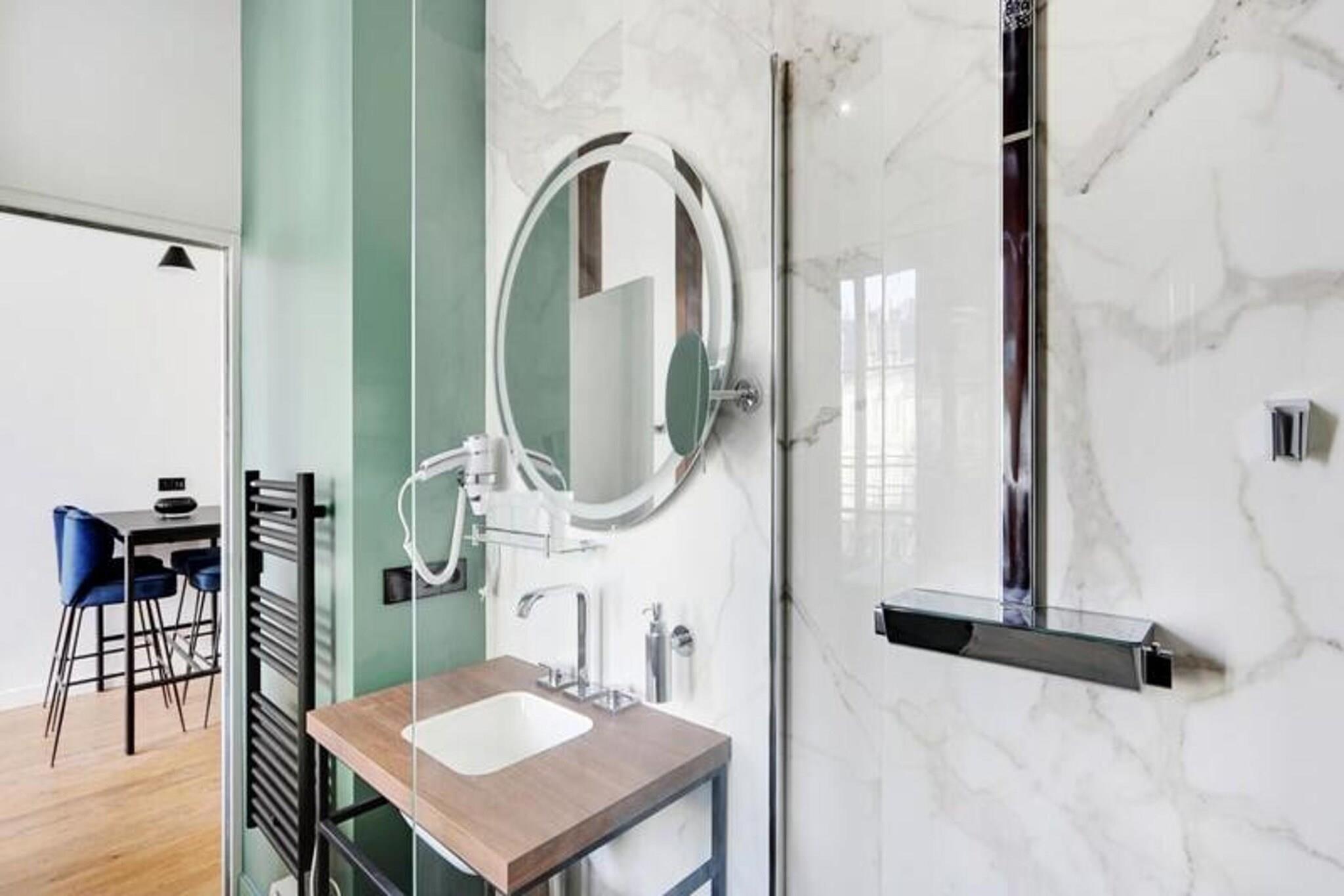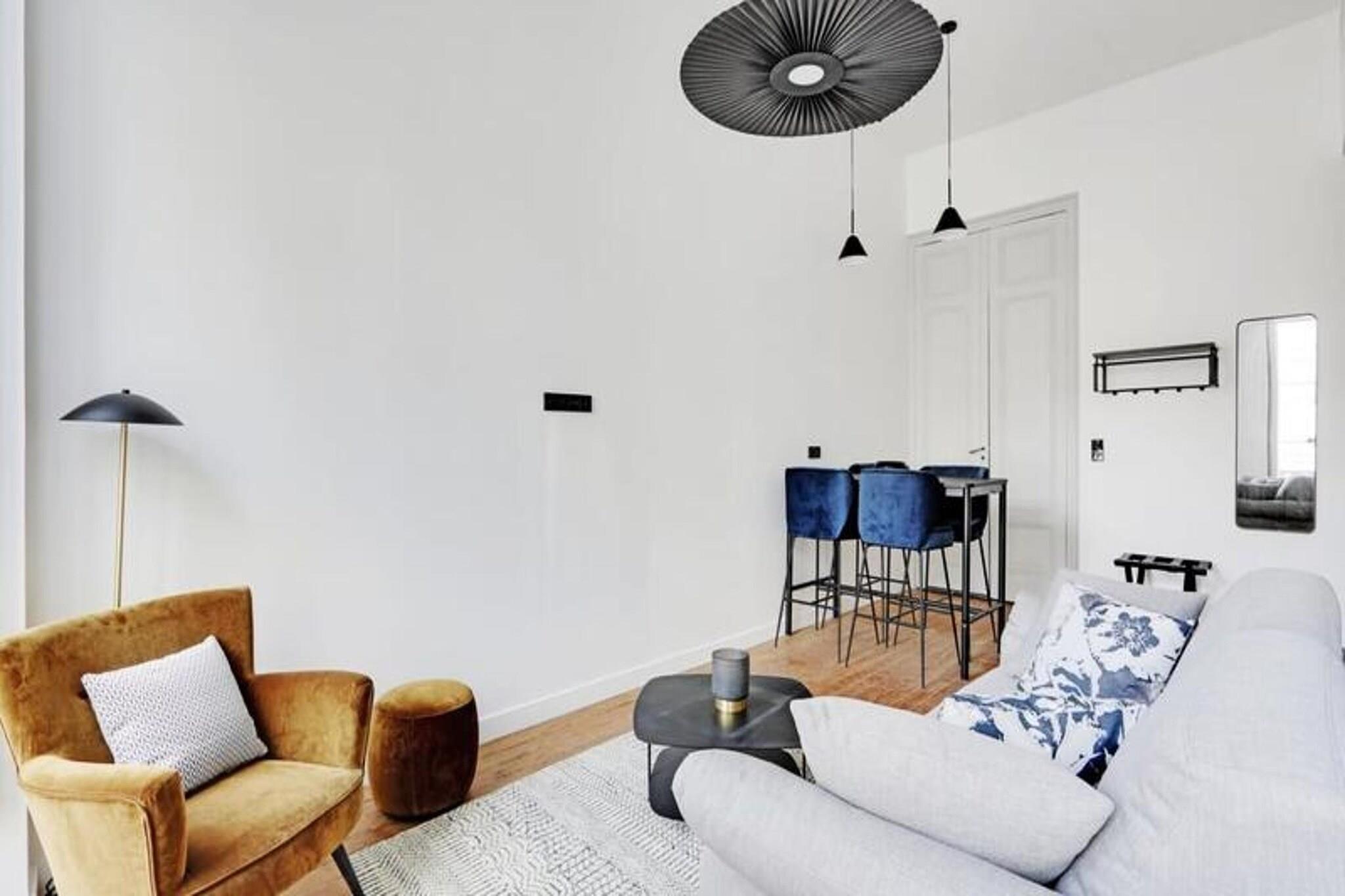 Nyd fordelene ved et hotel i en lejlighed med denne fremragende 35 m² store suite beliggende på første sal i et tidligere privat palæ med en fantastisk udsigt over den ikoniske rue d'Aviau. Denne lejlighed kan rumme 1 til 4 personer og byder på et privat soveværelse med en kingsize seng, der kan adskilles i to enkeltsenge, og en fremragende sovesofa i stuen. Soveværelset har en karnap, der fører til badeværelset med et stort bruseniche. Det fuldt udstyrede køkken er perfekt til at tilberede retter med sydlandsk smag, og stuen inviterer til at nyde måltiderne omkring spisebordet. Lejligheden er beliggende i et smart og roligt boligområde, tæt på den storslåede offentlige have, ideel til gåture. Det er kun 5 minutter fra sporvognslinje C, som giver adgang til de vigtigste seværdigheder i Bordeaux. Nærliggende attraktioner omfatter den offentlige have, lokale restauranter, butikker og tjenester. Suiten tilbyder en blanding af bekvemmelighed og afslapning, perfekt til venner, familie eller forretningsrejser. Bemærk, at rygning er strengt forbudt i lejligheden, og et depositum på EURO500 er påkrævet. Suiten er designet til uovertruffen komfort og tilbyder autonom adgang med et tilsluttet låsesystem, aircondition, pengeskab, satellit-tv og højhastigheds-Wi-Fi.