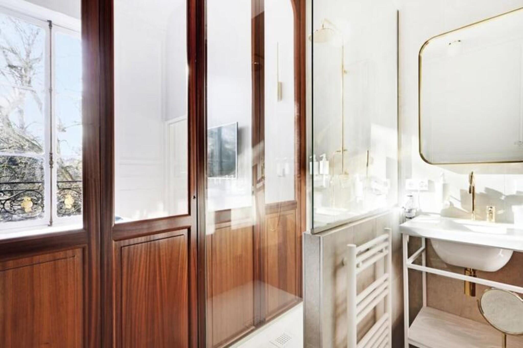 Velkommen til denne fantastiske 35 kvadratmeter store suite, der tilbyder komforten af ??et hotel med privatlivets fred i en lejlighed, beliggende ved siden af ??en fredfyldt offentlig have. Perfekt til op til fire gæster, suiten inkluderer et luksuriøst soveværelse med en professionel kingsize-seng, der kan adskilles i tvillinger, og en stue med en komfortabel sovesofa. Badeværelset, elegant adskilt af en karnap, har både bruseniche og stort badekar, mens toilettet er bekvemt adskilt. Gæsterne kan nyde det fuldt udstyrede køkken og dele måltider i det hyggelige loungeområde. Suiten tilbyder selvstændig adgang via et tilsluttet låsesystem og er udstyret med aircondition, pengeskab, satellit-tv og højhastigheds-Wi-Fi for din bekvemmelighed. Kæledyr er velkomne efter anmodning og mod et tillægsgebyr. Beliggende i et smart og roligt boligområde, er denne suite et stenkast fra den storslåede offentlige have, perfekt til afslappende gåture. Sporvognslinje C, kun 5 minutters gang væk, forbinder dig til Bordeauxs hovedattraktioner, så du nemt kan udforske byen. Det omkringliggende kvarter kombinerer ro med nærhed til vigtige seværdigheder, hvilket gør det til et fremragende valg for både ferie- og forretningsrejsende. Denne gennemtænkt designede ejendom giver yderligere bekvemmeligheder, herunder et boudoir i kælderen til sikker opbevaring af bagage. Der er strenge ikkeryger- og rengøringspolitikker på plads for at sikre et behageligt ophold for alle gæster. Et refunderbart depositum på EURO500, administreret sikkert via Swikly, er påkrævet før ankomst, med et minimalt servicegebyr på EURO6,30. Dine værter er til rådighed 24/7 for at hjælpe med eventuelle forespørgsler, og sikrer, at dit ophold er så problemfrit og behageligt som muligt. Slap af, slap af og nyd det bedste fra Bordeaux i denne enestående suite.