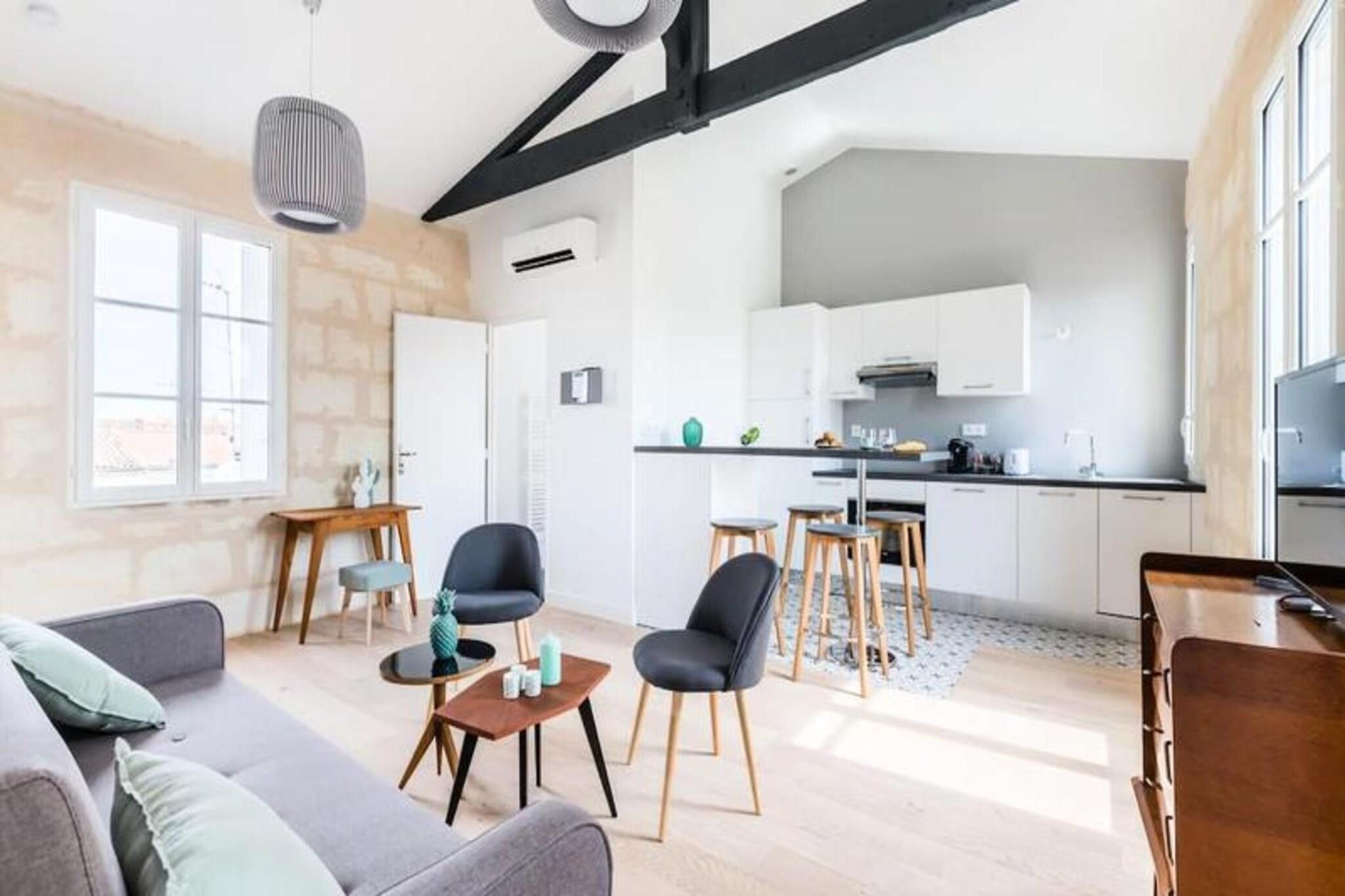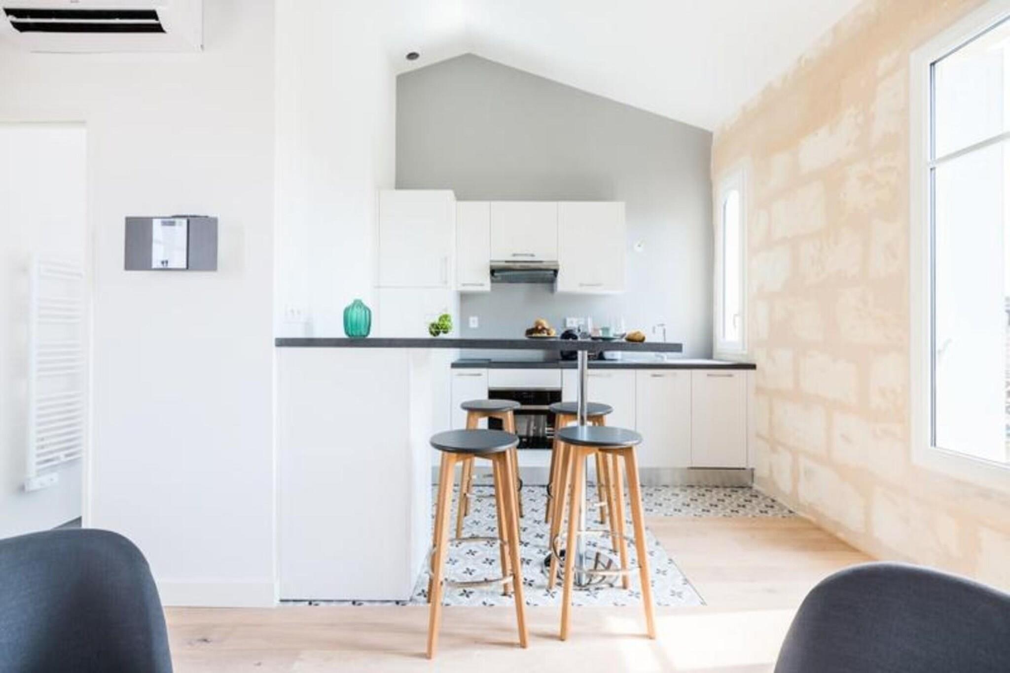 Denne nyligt renoverede lejlighed på 40 m² tilbyder et fredeligt tilflugtssted i det pulserende Chartrons-distrikt i Bordeaux. Ved at kombinere charmen fra gamle Bordeaux-sten med moderne møbler giver lejligheden en unik boligoplevelse. Den lyse stue har autentisk parketgulv og stenvægge, hvilket skaber en elegant, men hyggelig atmosfære. Det store soveværelse indeholder en komfortabel dobbeltseng, mens sovesofaen i stuen forvandles til en ekstra seng, hvilket gør lejligheden velegnet til op til fire gæster. Det fuldt udstyrede køkken med cementflisegulv inkluderer ovn, køleskab, kaffemaskine, brødrister og alle nødvendige redskaber til at tilberede dine yndlingsmåltider. Det slanke badeværelse tilføjer funktionaliteten og æstetikken i dette rum. Gæster kan også nyde personlig concierge-service, herunder en valgfri morgenmad, for at sikre et behageligt og mindeværdigt ophold. Beliggende på Cours de la Martinique, er lejligheden ideelt placeret for at udforske Bordeauxs kulturelle og historiske attraktioner. Chartrons-distriktet, der er kendt for sin blanding af historie og moderne liv, byder på en række butikker, restauranter og caféer. Områdets historiske charme suppleres af Bordeauxs ry som en by på UNESCOs verdensarvsliste. I nærheden kan du udforske Quai des Marques for shopping, spisning og en smuk udsigt over Garonne-floden. Det nye internationale vinmuseum og Jacques Chaban-Delmas-broen er også inden for rækkevidde. Offentlig transport er let tilgængelig, hvilket gør det nemt at udforske resten af ??Bordeaux, fra byens centrum til de omkringliggende vinområder.