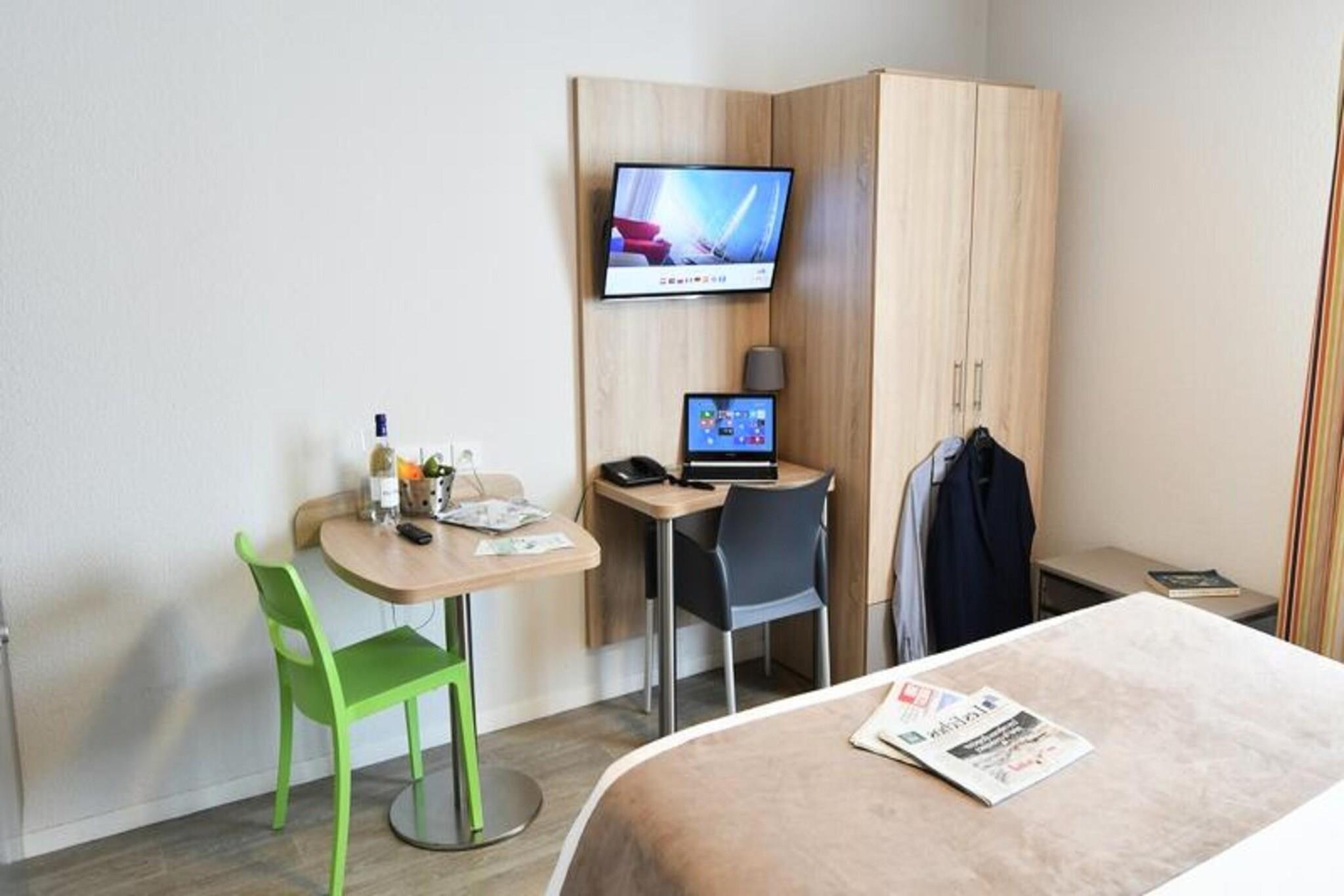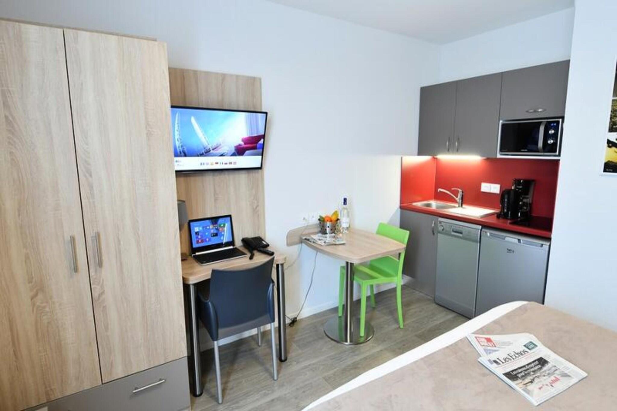 Dette moderne lejlighedshotel ligger kun 300 meter fra sporvognslinje B og tilbyder nem adgang til byens centrum. Det tilbyder en perfekt blanding af komfort og bekvemmelighed. Beliggende i Bassins à Flot Eco-distriktet i Bordeaux, er ejendommen unikt designet til at ligne en havforing og har 104 rummelige lejligheder med aircondition. Med en række tilgængelige layouts er disse boliger perfekte til op til 4 personer og er udstyret med tekøkkener for ekstra fleksibilitet. Gæsterne kan nyde en fredelig beliggenhed, mens de er i gåafstand fra adskillige restauranter, et supermarked og det nye butikscenter Bacalan kun 150 meter væk. Lejlighedshotellet er perfekt placeret for at udforske Bordeaux, med nøgleattraktioner såsom Citadelle du Vin, Musée de la Mer et de la Marine og de naturskønne Garonne-kajer inden for rækkevidde. Den historiske bymidte ligger blot et par minutter væk og byder på ikoniske vartegn som Place de la Bourse, Miroir d'Eau og Grand Théâtre. Gæsterne kan også vove sig længere ud for at udforske de berømte vinmarker i Medoc og Saint-Emilion eller besøge det maleriske Arcachon-bassin. Den nærliggende TGV-station og udstillingscenter gør dette lejlighedshotel til et godt valg for både forretnings- og ferierejsende. Uanset om du er i Bordeaux for at opdage dets kulturelle perler, smage udsøgte vine eller udforske de omkringliggende landskaber, tilbyder denne bolig et ideelt udgangspunkt.