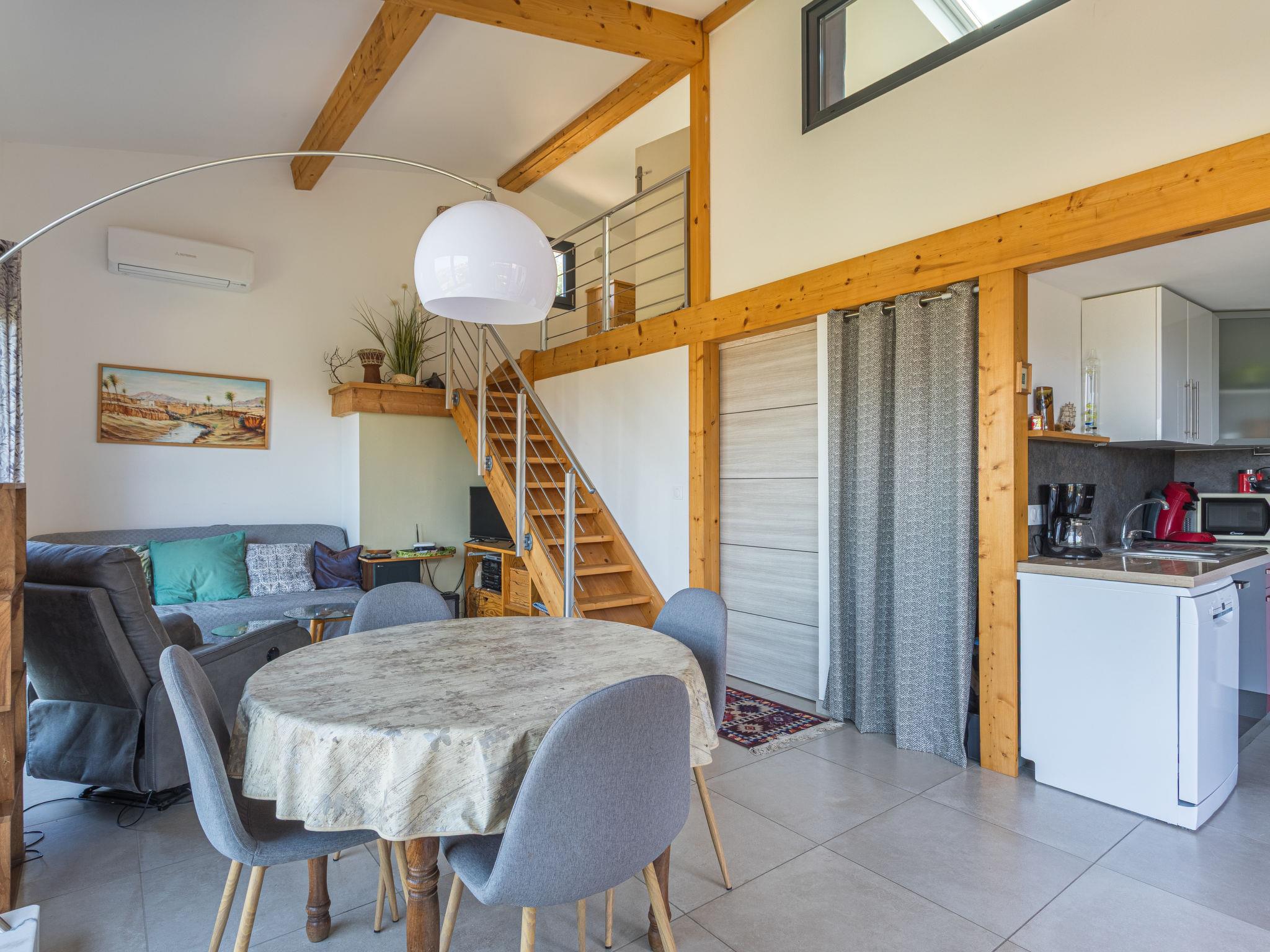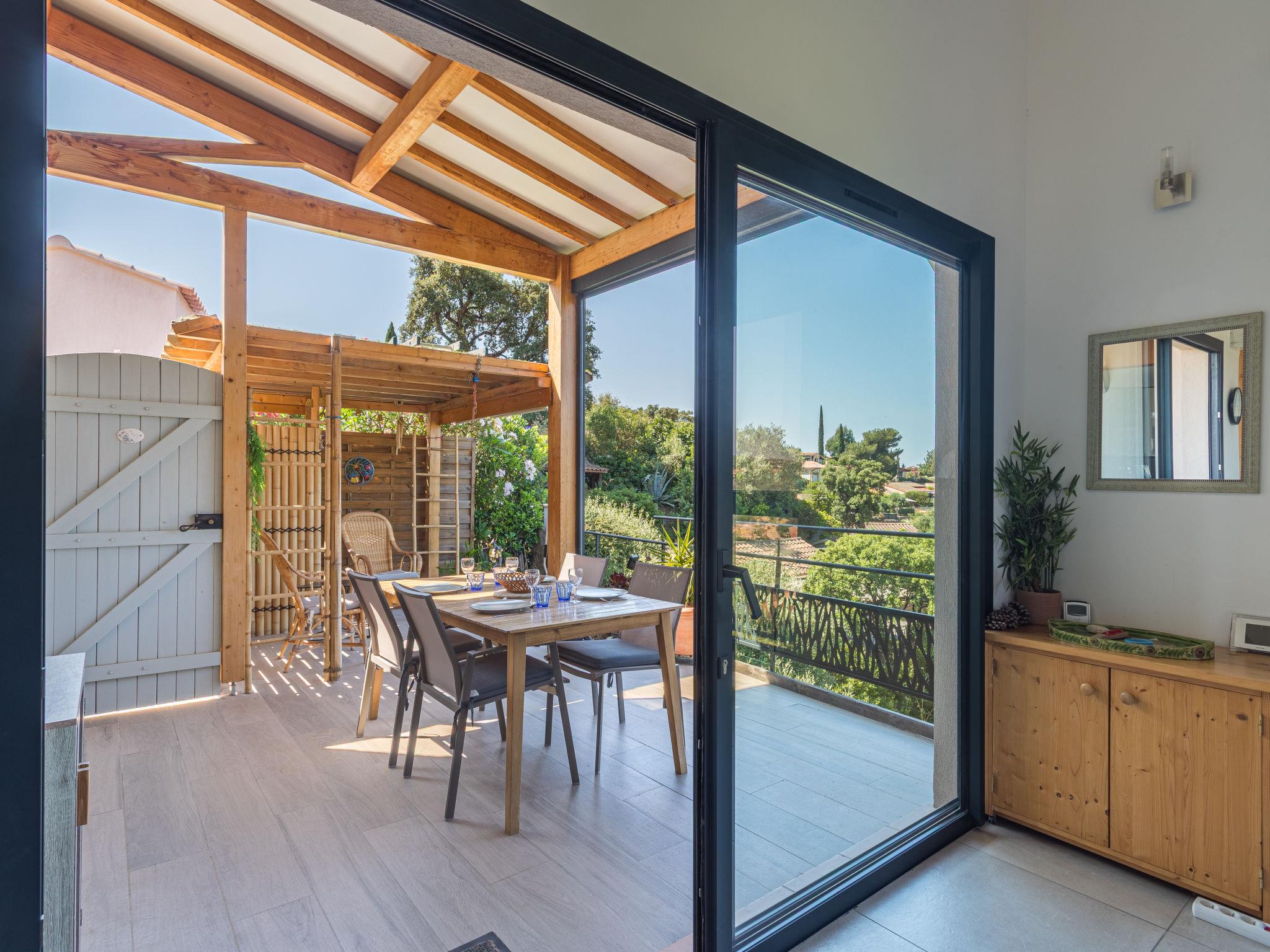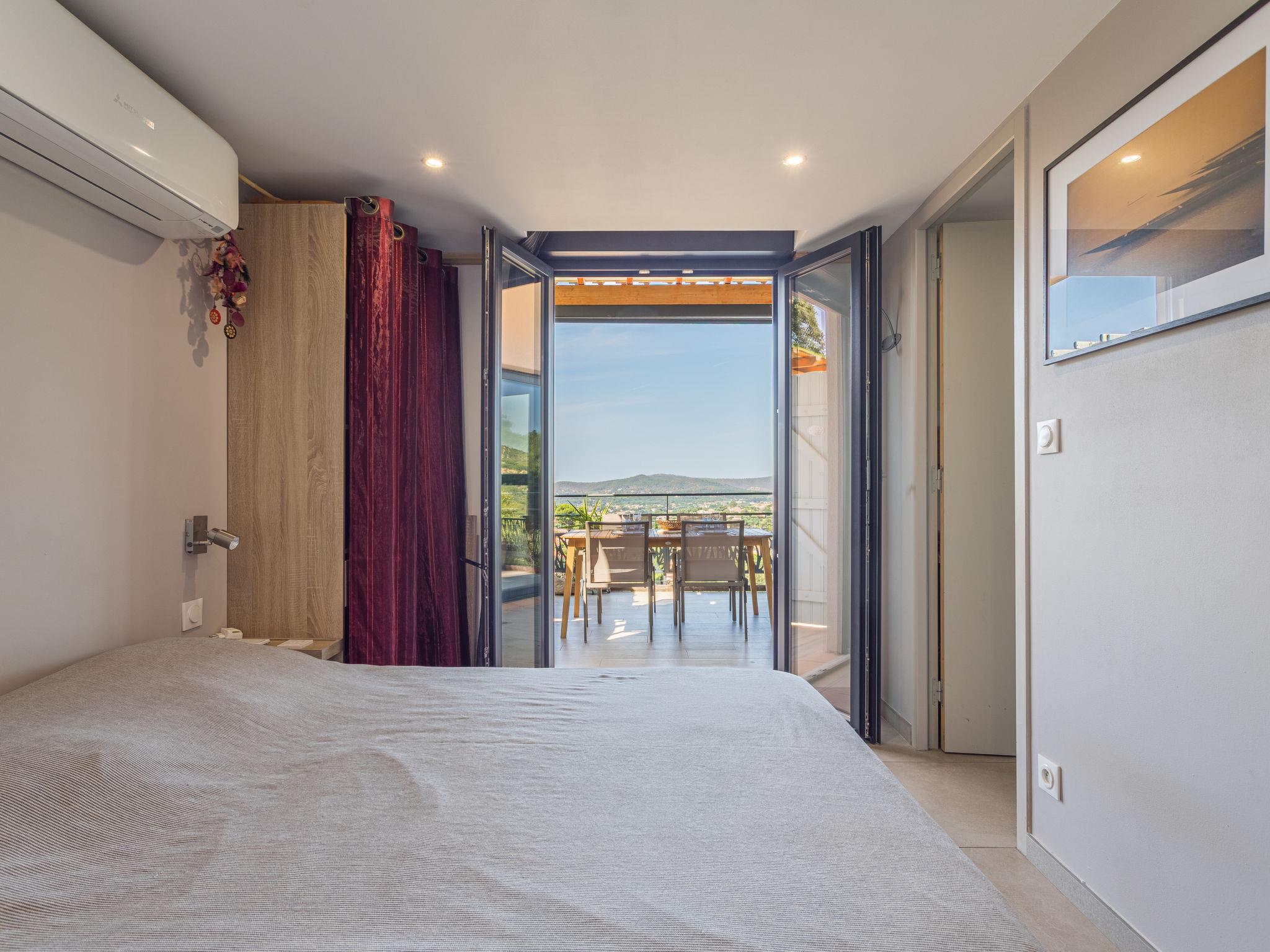 3-room house 56 m2 on 2 levels, south facing position. Beautiful furnishings: living/dining room with dining table and TV (flat screen). 1 room with 1 french bed (140 cm, length 190 cm), shower/WC and air conditioning. Exit to the terrace. 1 room with 1 french bed (140 cm, length 190 cm), air conditioning. Kitchenette (oven, dishwasher, 3 induction hot plates, microwave, freezer, electric coffee machine, Capsules for coffee machine (Senseo) extra). Shower, sep. WC. Upper floor: 1 room with sloping ceilings with 1 french bed (140 cm, length 190 cm), air conditioning. Terrace 20 m2, south facing position. Terrace furniture. Very beautiful view of the countryside. Facilities: washing machine, dryer, iron, hair dryer. Internet (WiFi, free). Parking (1 car). Please note: non-smoking house. Maximum 1 pet/ dog allowed. Smoke alarm. Offer by a private individual according to Art. 155, IV of CGI. 83019000749PQ
