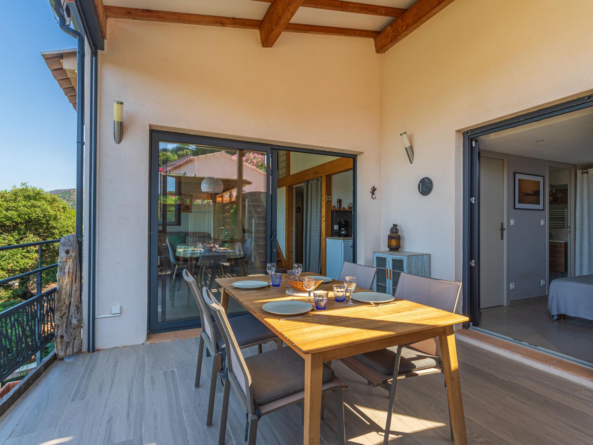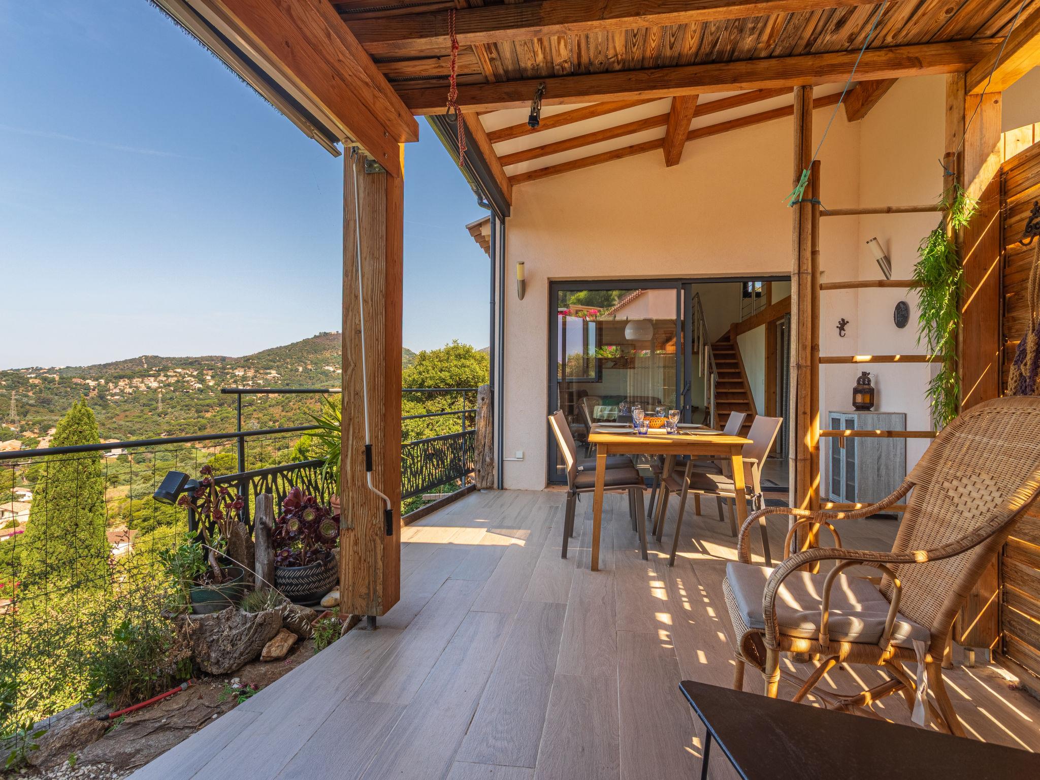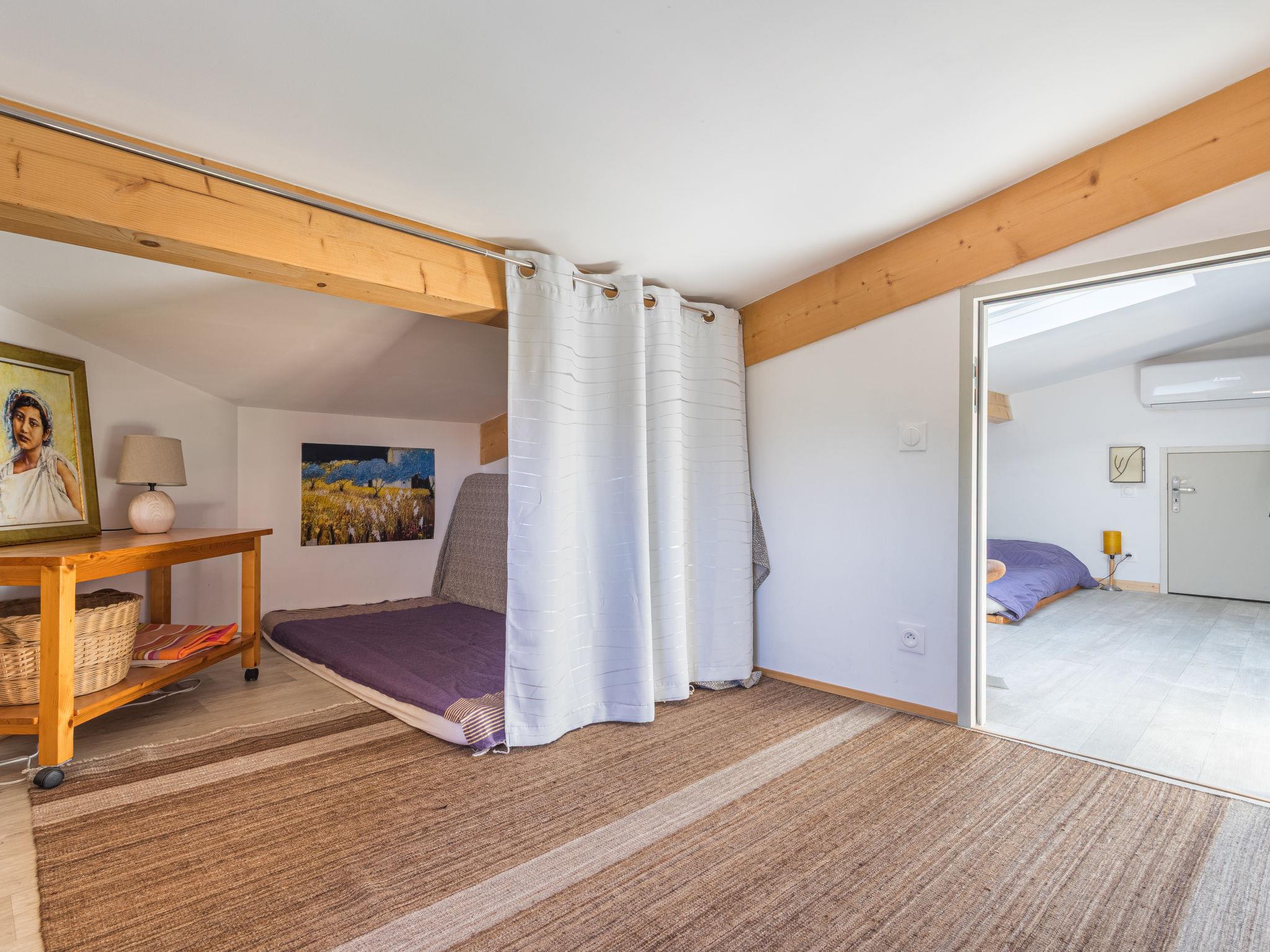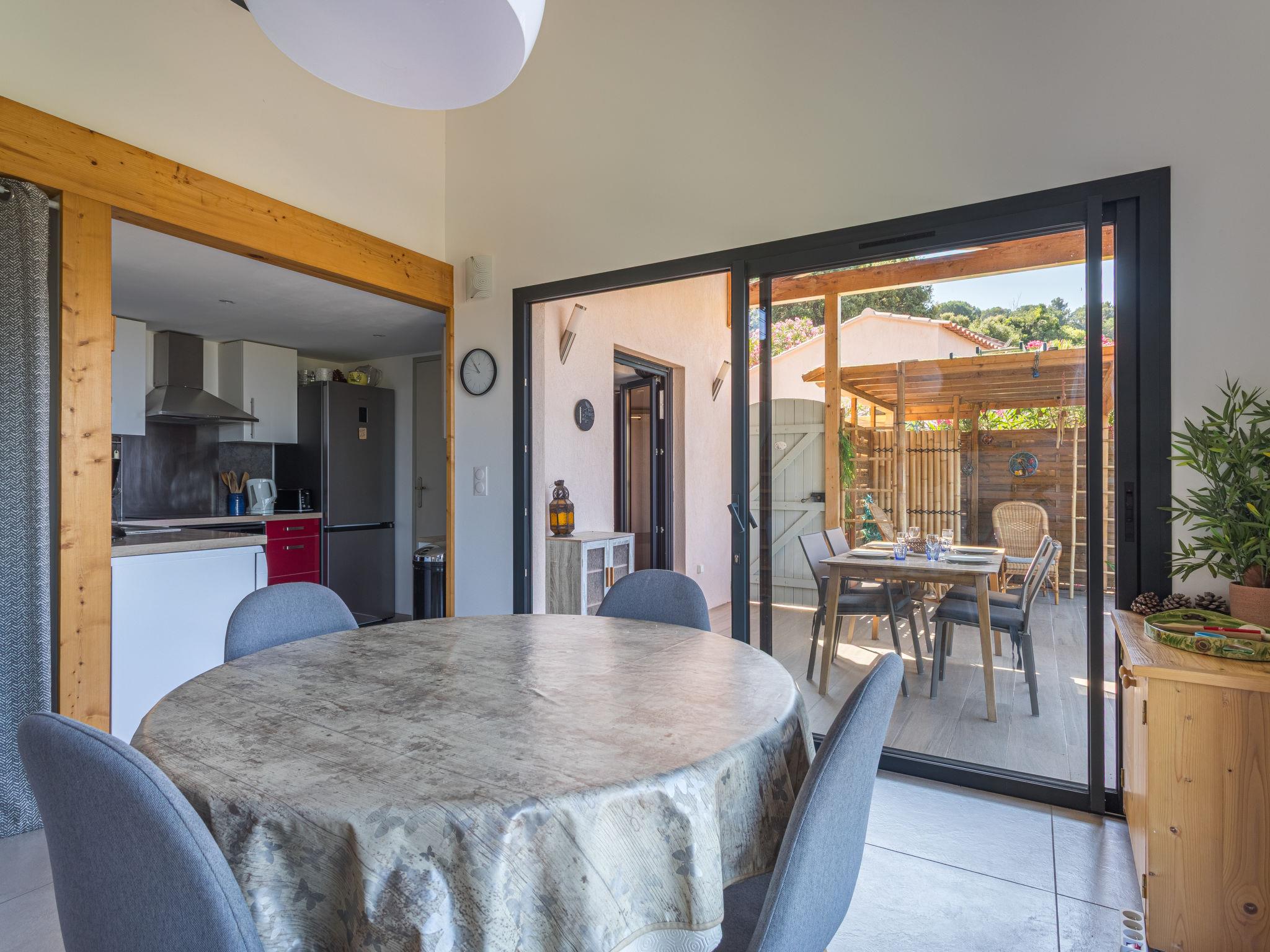 3-room house 56 m2 on 2 levels, south facing position. Beautiful furnishings: living/dining room with dining table and TV (flat screen). 1 room with 1 french bed (140 cm, length 190 cm), shower/WC and air conditioning. Exit to the terrace. 1 room with 1 french bed (140 cm, length 190 cm), air conditioning. Kitchenette (oven, dishwasher, 3 induction hot plates, microwave, freezer, electric coffee machine, Capsules for coffee machine (Senseo) extra). Shower, sep. WC. Upper floor: 1 room with sloping ceilings with 1 french bed (140 cm, length 190 cm), air conditioning. Terrace 20 m2, south facing position. Terrace furniture. Very beautiful view of the countryside. Facilities: washing machine, dryer, iron, hair dryer. Internet (WiFi, free). Parking (1 car). Please note: non-smoking house. Maximum 1 pet/ dog allowed. Smoke alarm. Offer by a private individual according to Art. 155, IV of CGI. 83019000749PQ