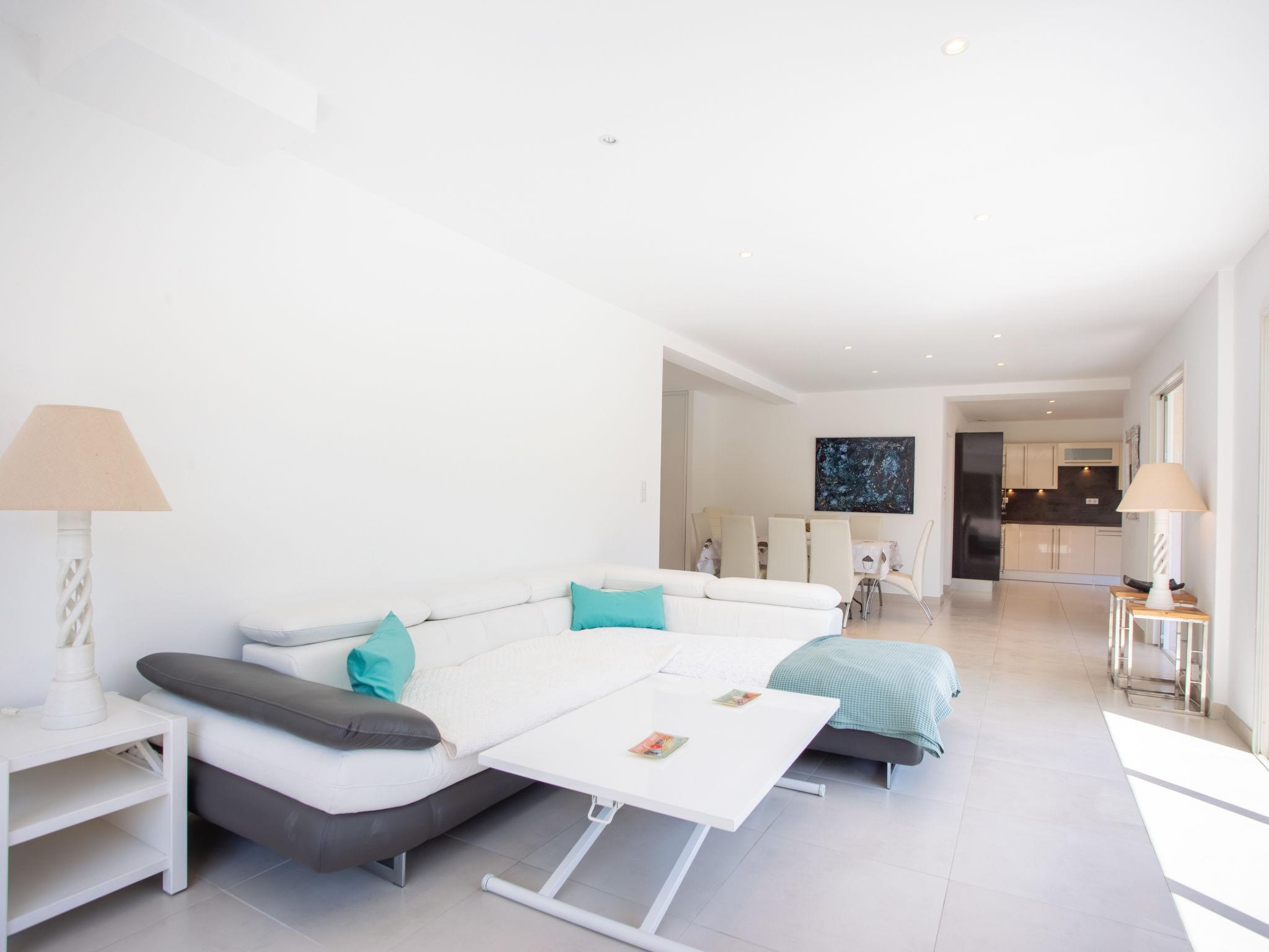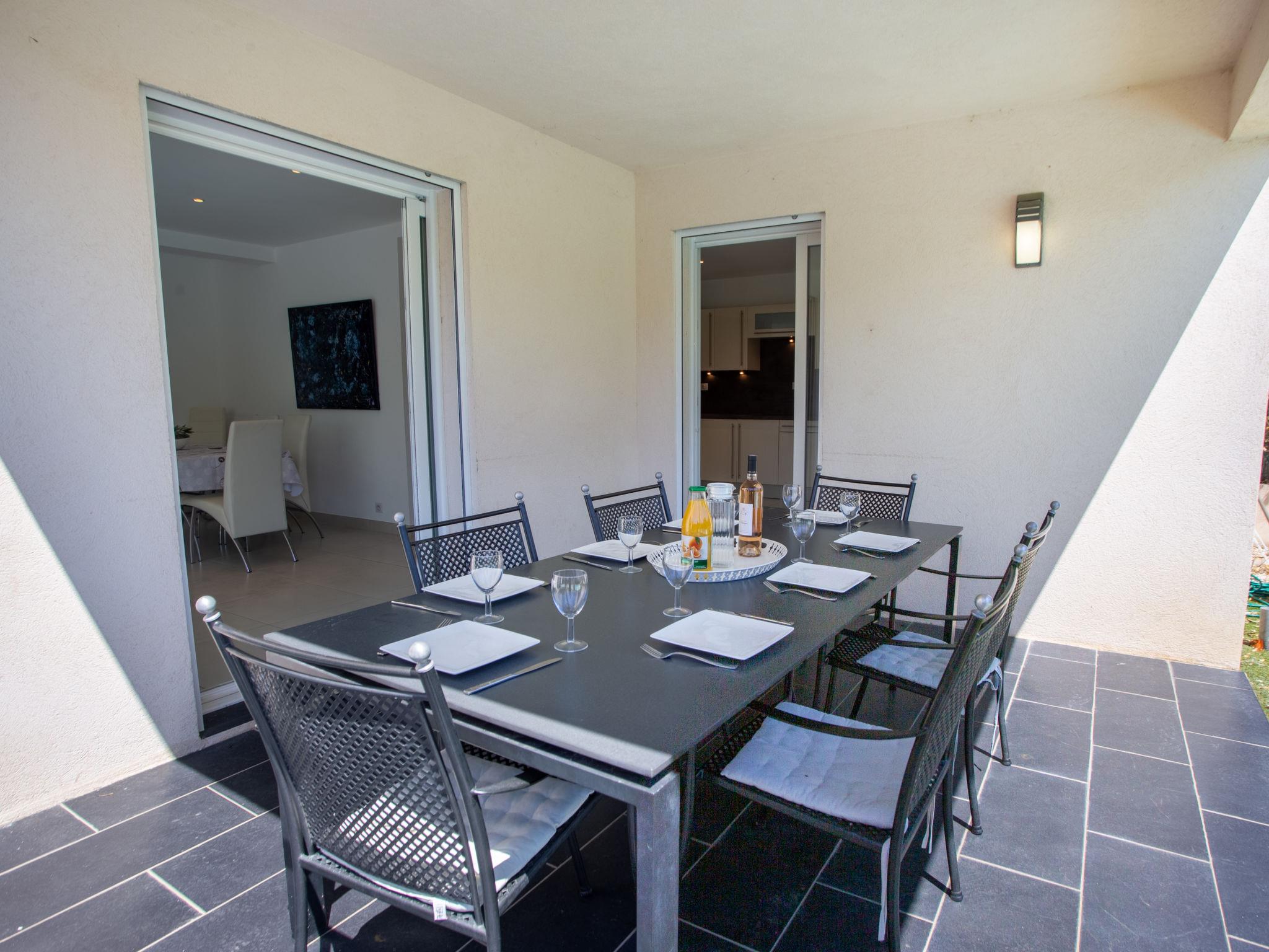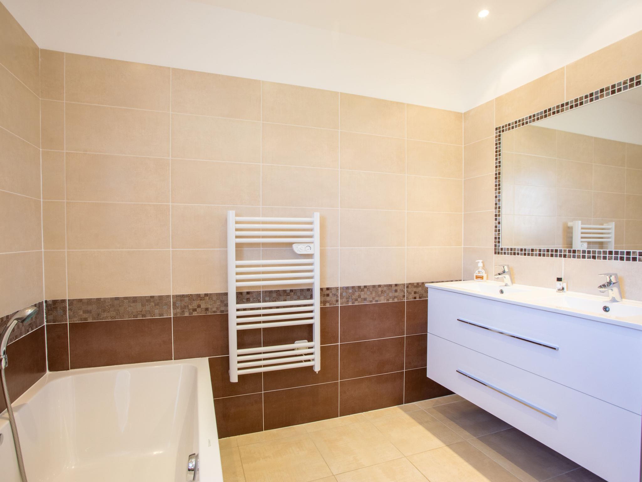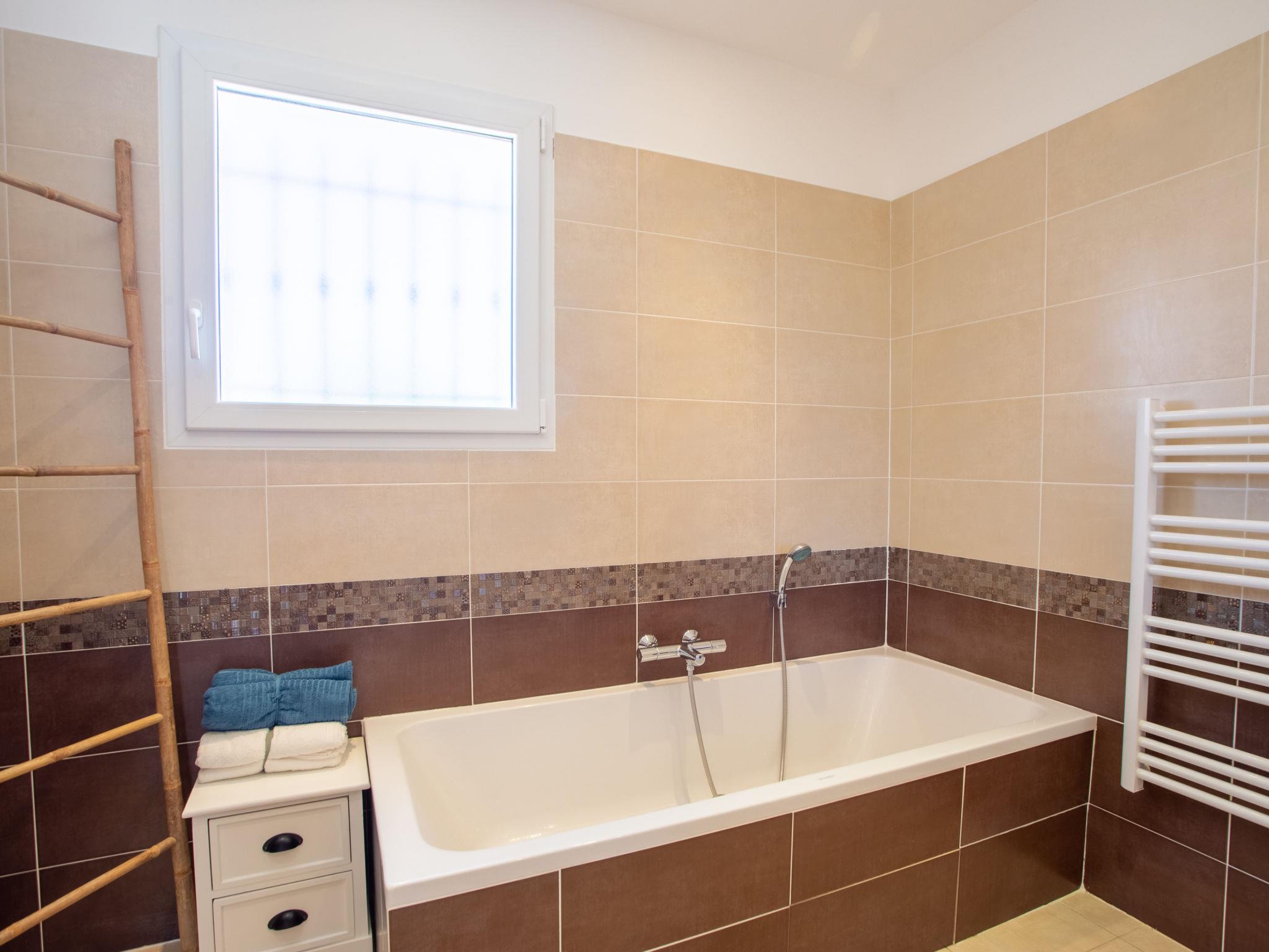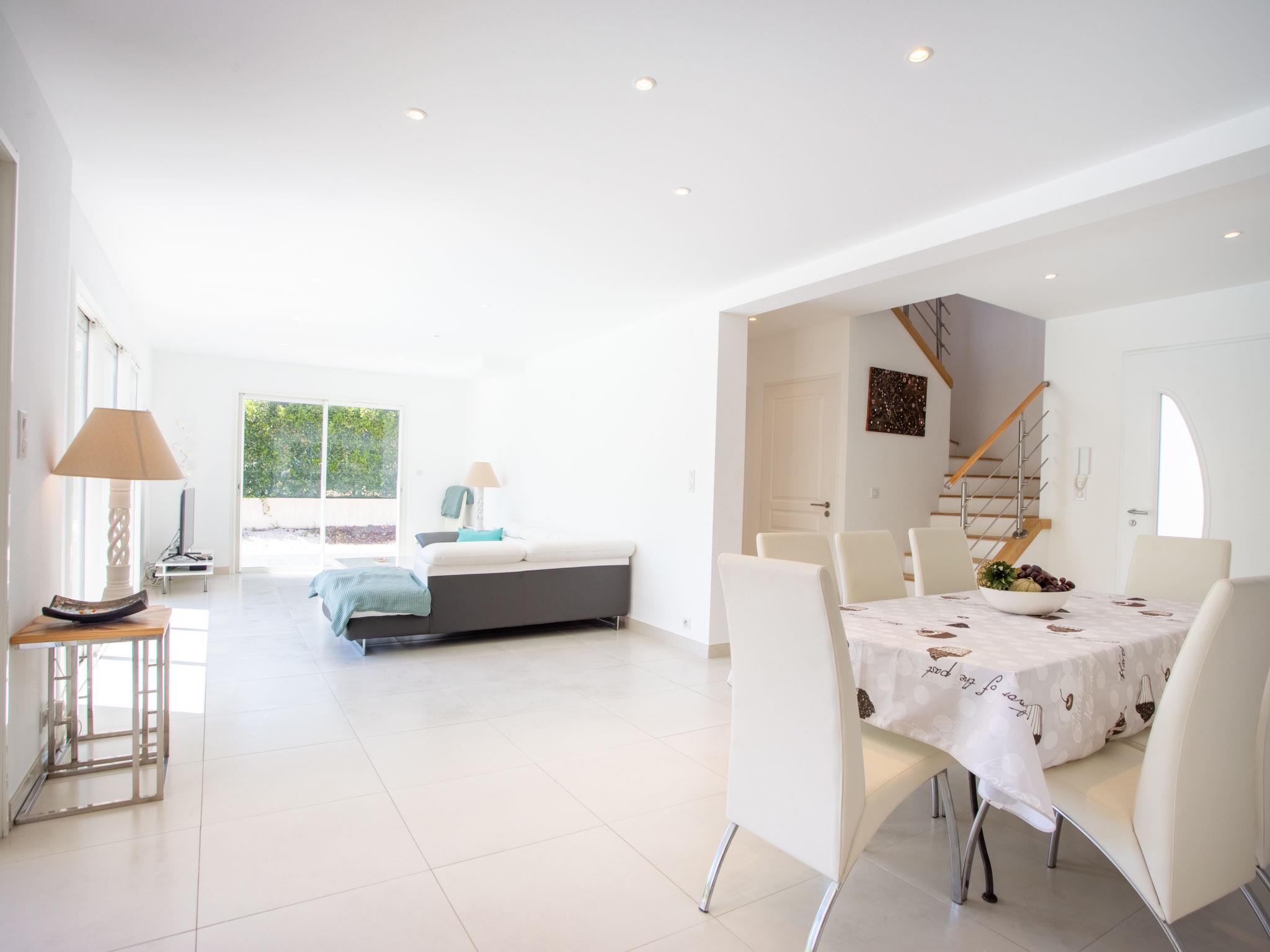 5-room villa 120 m2 on 2 levels. Bright, comfortable and beautiful furnishings: large living/dining room with TV (flat screen). Exit to the terrace, to the swimming pool. 1 room with 1 french bed (160 cm, length 200 cm), shower. Open kitchen (oven, dishwasher, 3 ceramic glass hob hotplates, toaster, kettle, microwave, freezer, electric coffee machine). Sep. WC. Upper floor: 1 room with 1 french bed (160 cm, length 200 cm), TV (flat screen). Exit to the terrace. 1 room with 1 french bed (160 cm, length 200 cm). 1 room with 1 french bed (160 cm, length 200 cm). Exit to the terrace. Bathroom, sep. WC, double hand-basin. Electric heating. Large terrace 70 m2. Terrace furniture, deck chairs (6). Facilities: washing machine, iron, hair dryer. Internet (WiFi, free). Please note: non-smoking house. TV only FR. Smoke alarm. Offer by a private individual according to Art. 155, IV of CGI. 830190015636H