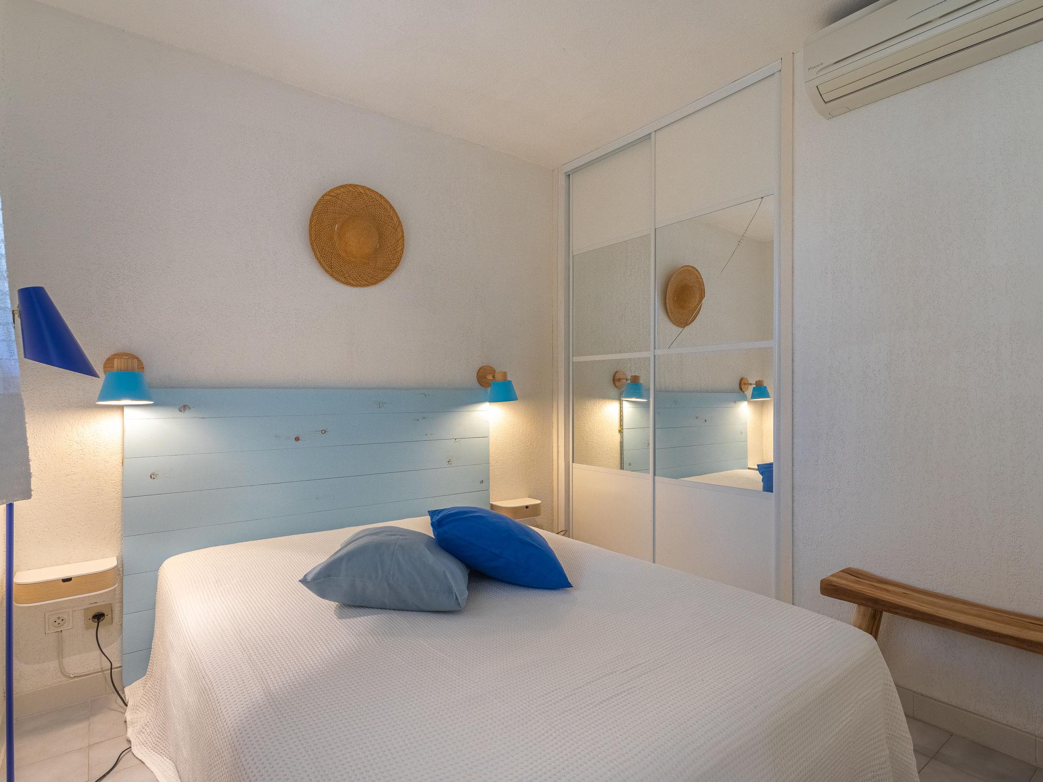3-room terraced house 50 m2. Comfortable furnishings: living room with TV and cable TV (flat screen). Exit to the veranda. 1 room with 1 french bed (140 cm, length 190 cm). 1 room with 1 french bed (140 cm, length 190 cm), TV (flat screen). Open kitchen (oven, dishwasher, 3 induction hot plates, toaster, kettle, microwave, electric coffee machine, Capsules for coffee machine (Dolce Gusto) extra). Exit to the terrace. Shower, sep. WC. Air-conditioning. Large terrace, south facing position, small terrace, north facing position. Terrace furniture. Facilities: washing machine, iron, hair dryer. Internet (WiFi, free). Parking space n 125. Please note: non-smokers only. Smoke alarm. Offer by a private individual according to Art. 155, IV of CGI. 83019001989D9