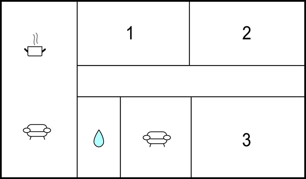 Soveværelse (nr. 1) - 2 Sovepladser. (Enkeltseng(e)).