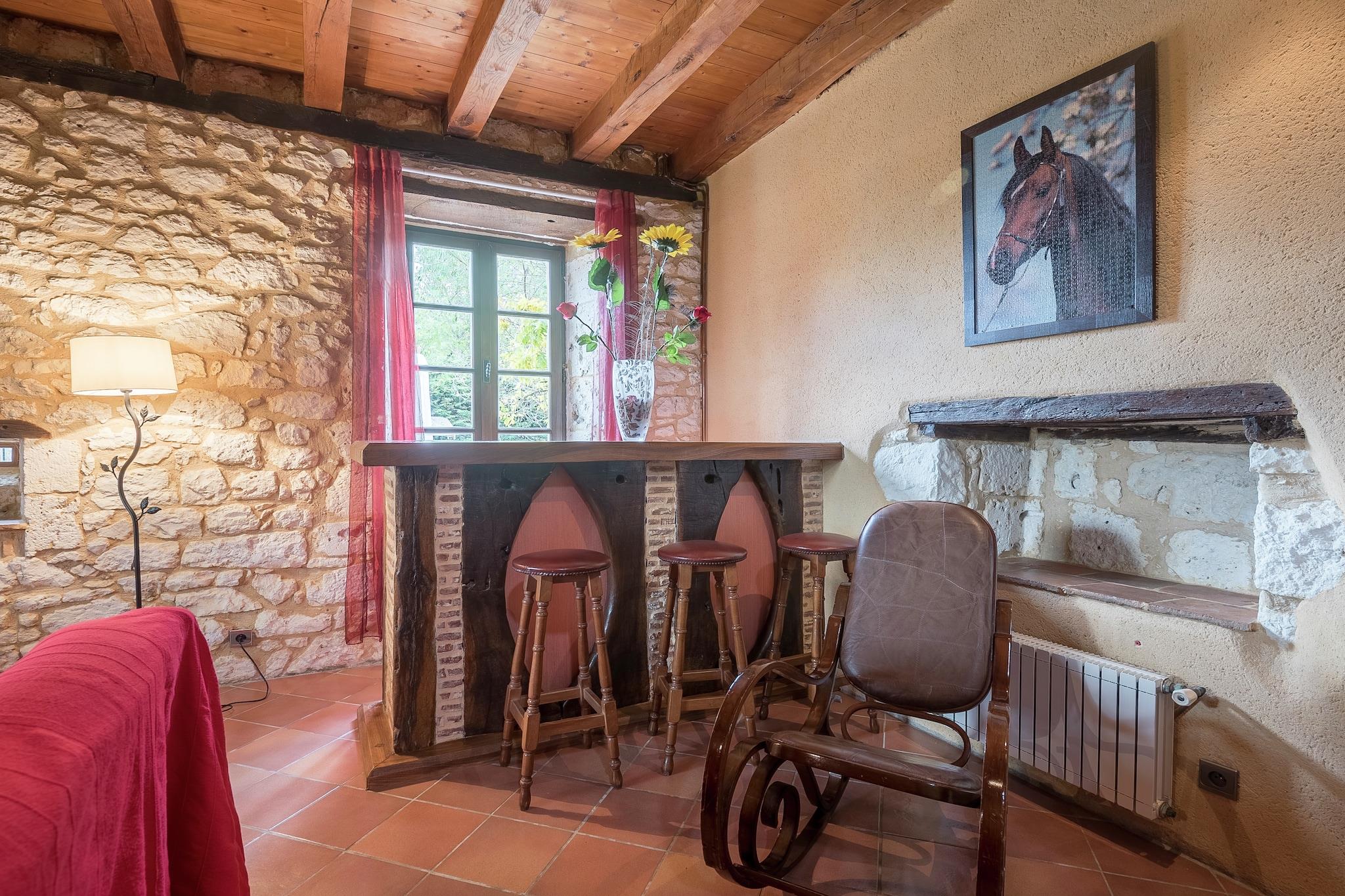 Dette fritliggende, karakterfyldte feriehus i Bouniagues tilbyder en fredelig flugt for familier, der søger afslapning og eventyr. Med 3 hyggelige soveværelser kan det komfortabelt rumme op til 6 gæster. Den fælles swimmingpool (opvarmet, 10×5 m) og indhegnet have med grill og havemøbler skaber en perfekt ramme for dovne eftermiddage og udendørs spisning. En overdækket terrasse og træbeklædt indkørsel tilføjer charmen. Kun 800 meter væk finder du et bageri og en dejlig restaurant. Udforsk Bergerac (13 km) med sine kanalbåde, maleriske gader og vinterrasser omkring statuen af Cyrano de Bergerac. Gå ikke glip af panoramaudsigten fra Château de Monbazillac (10 km) eller det sjove ved Lougratte-søen (21 km) og Le Bugue-vandlandet (46 km) - fantastisk til børn og vandelskere. Boligen indeholder et veludstyret køkken, stue med underholdningssystem og gennemtænkte detaljer som vaskemaskine, cykler og legeredskaber. Det er en Award-vinder flere år i træk.