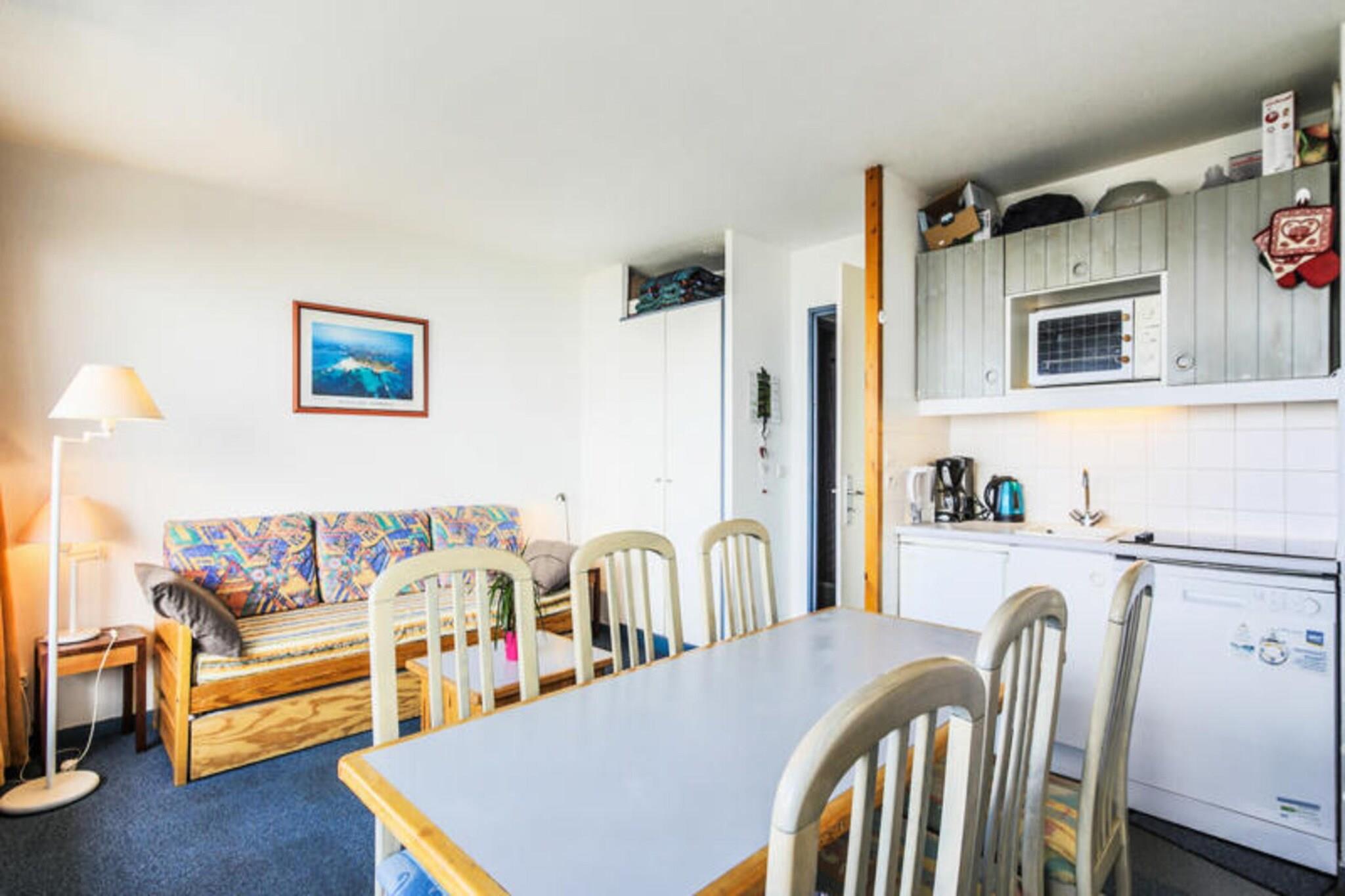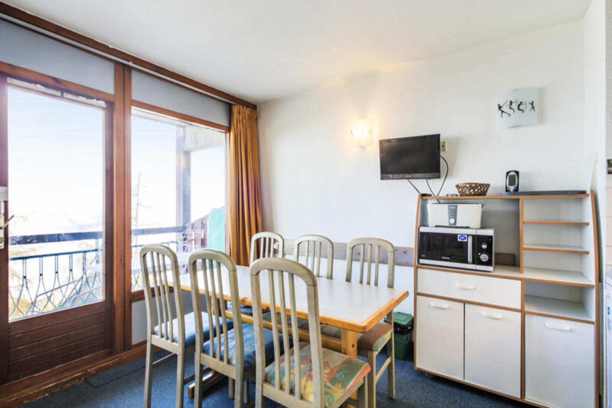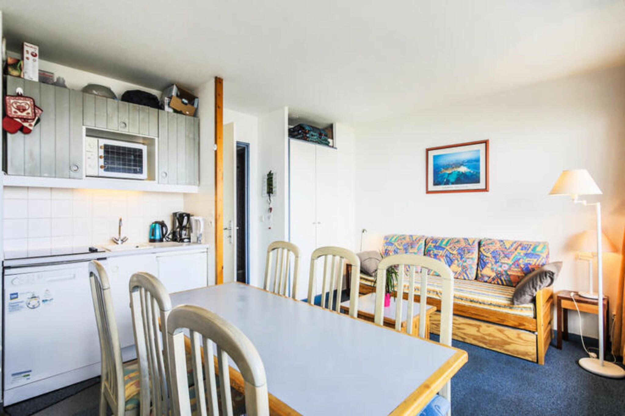 Denne lejlighed ligger på 5. sal i en bygning i Charmettoger-kvarteret, og tilbyder to soveværelser og to badeværelser. Det første soveværelse har to enkeltkøjesenge, mens det andet har to enkeltsenge. I stuen er der en sovesofa, der kan rumme yderligere gæster, og et spisebord med seks stole. Lejligheden er kæledyrsvenlig, så du kan medbringe din lodne ven, afhængigt af tilgængelighed og ekstra gebyrer. Placeringen giver nem adgang til en række nærliggende attraktioner. En restaurant og skibutik ligger i distriktet, og en fødevarebutik ligger i Les Villards, cirka 10 minutter væk til fods. Lejligheden ligger omkring 15 minutters gang fra maeva Home agenturet, hvor gæsterne kan tjekke ind og få lokale anbefalinger. Det åbne køkken er fuldt udstyret, hvilket gør det praktisk til selvforplejning, mens stuen er designet til komfort og afslapning. Lejligheden har to badeværelser, det ene med badekar-bruser kombination og det andet med bruser og toilet. For ekstra bekvemmelighed tilbyder lejligheden også Wi-Fi-adgang (afhængigt af tilgængelighed), med mulighed for at leje et babysæt og yderligere tjenester såsom slutrengøring.