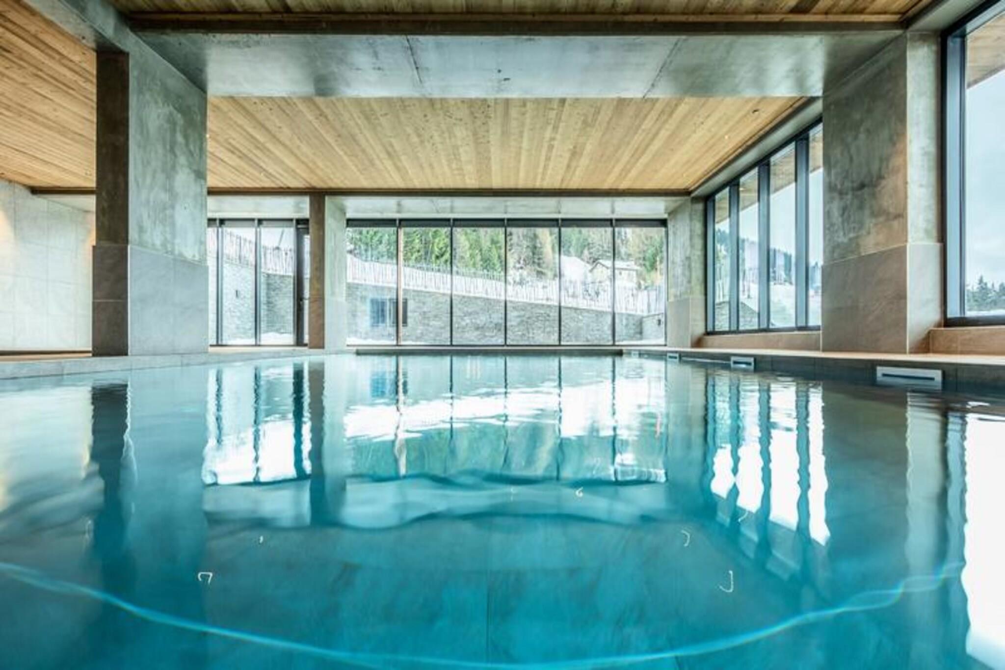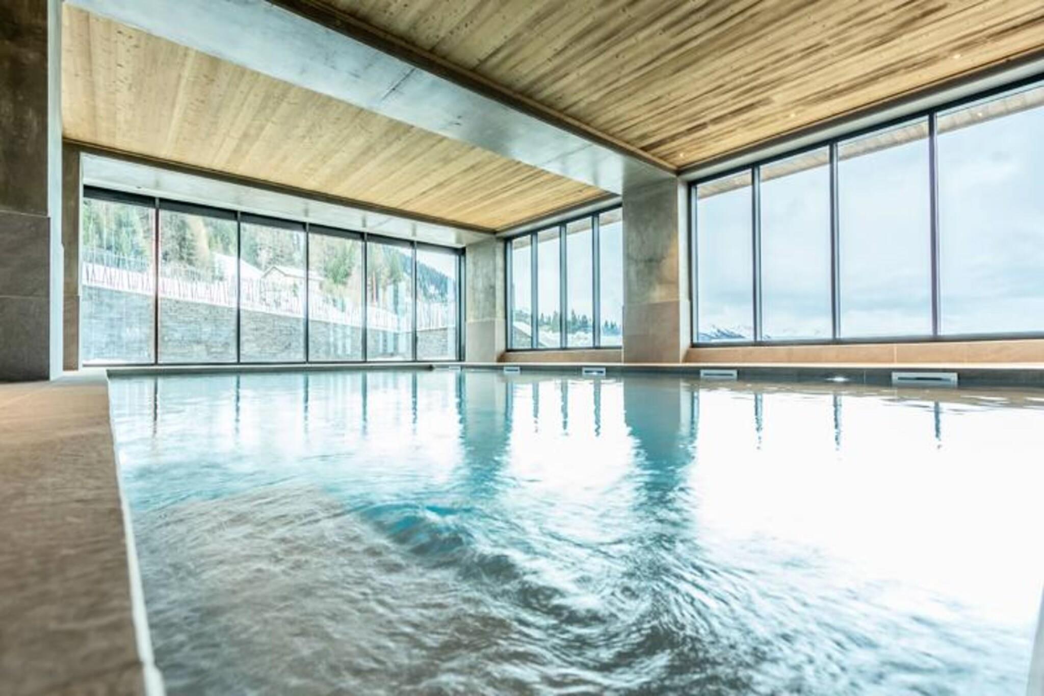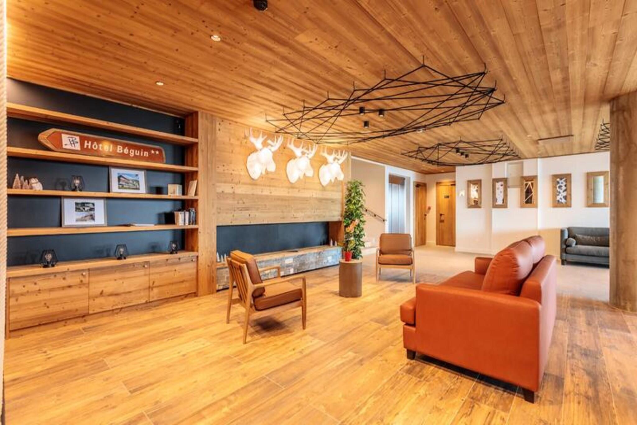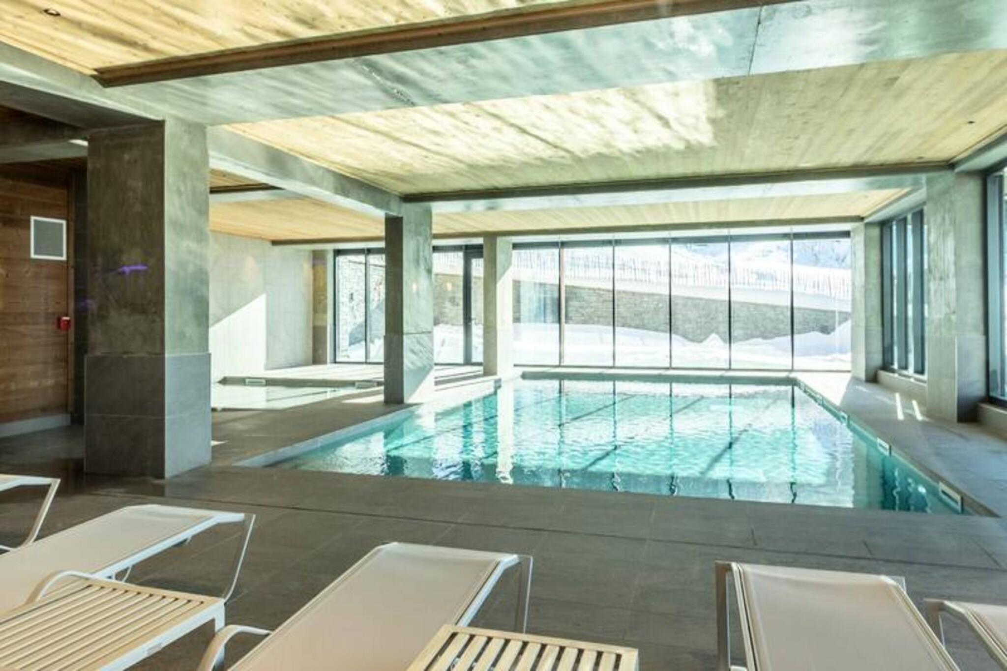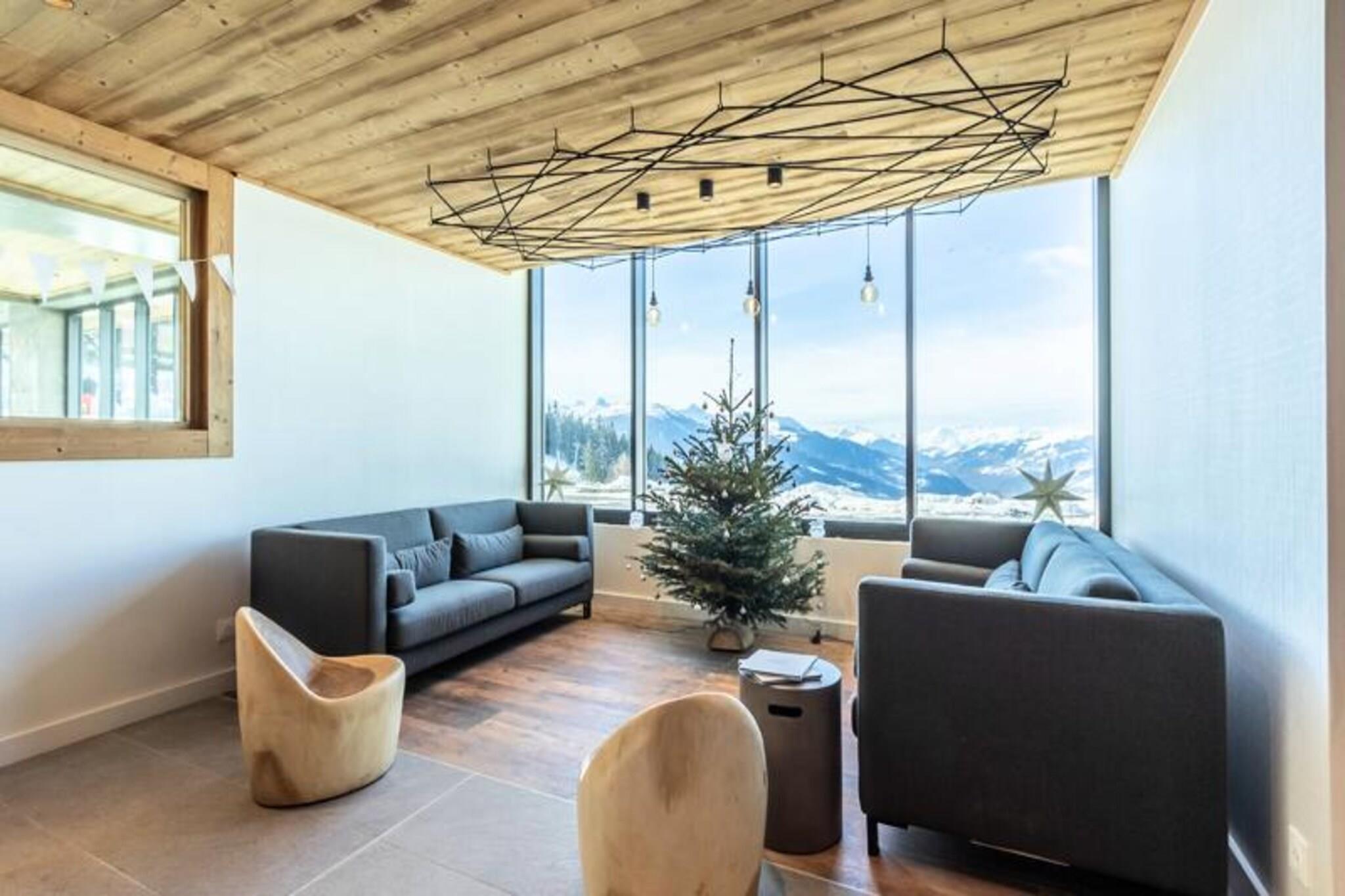 Denne luksuri?se 3-v?relses lejlighed i en 4-stjernet bolig kan rumme op til 6 g?ster og tilbyder en fantastisk panoramaudsigt over pisterne, dalen og snekl?dte bjerge. Lejligheden er ikke-ryger, og k?ledyr er ikke tilladt. Den har et sovev?relse med dobbeltseng med eget brusebad, et sovev?relse med to enkeltsenge (som kan laves om til en dobbeltseng) og et bjerghj?rne med k?jesenge. Senget?j og h?ndkl?der medf?lger, og lejligheden har 2 overd?kkede parkeringspladser. Ejendommen er beliggende i hjertet af Les Arcs 1600 og tilbyder direkte adgang til Cachette-bakken og Paradiski-skiomr?det. N?rliggende attraktioner omfatter Club Med-resortet og Arcs 1800, med gratis transport mellem stationen, der forbinder dig til regionen. Efter en dag p? ski kan du nyde den pulserende afterski-atmosf?re og udforske lokale caf?er, butikker og markeder. Den fantastiske syd-vestlige orientering garanterer masser af solskin og betagende solnedgange. Lejligheden er udstyret med et moderne k?kken med induktionskomfur, opvaskemaskine, kombineret ovn/mikroovn og kaffemaskiner. En rummelig stue med tv f?rer til en m?bleret terrasse p? 9 m². Yderligere faciliteter inkluderer gulvvarme, WIFI og et skiskab med direkte adgang til pisterne. G?sterne kan ogs? nyde wellness-omr?det med swimmingpool, sauna, hammam, fitnesscenter og solarium.