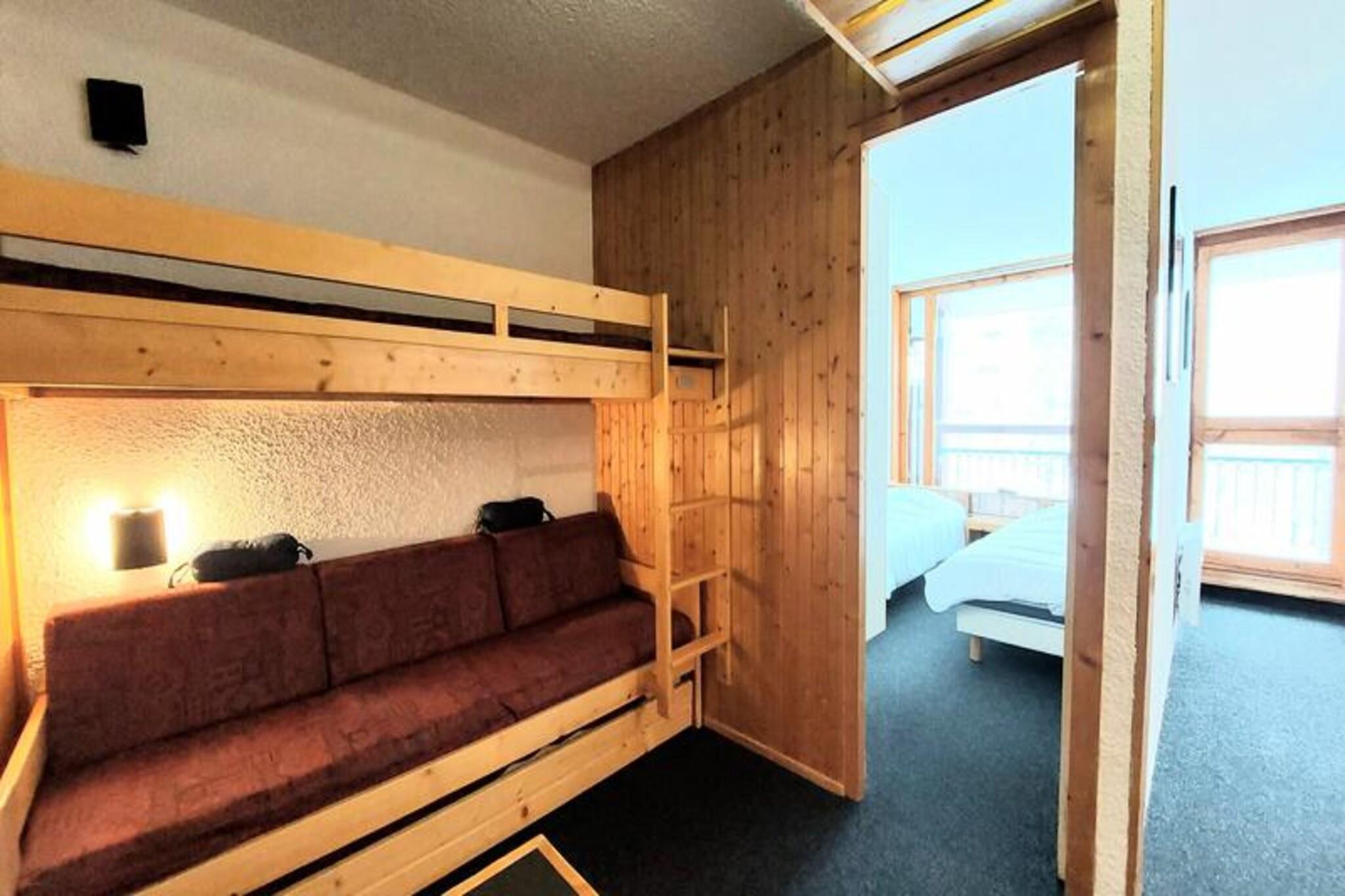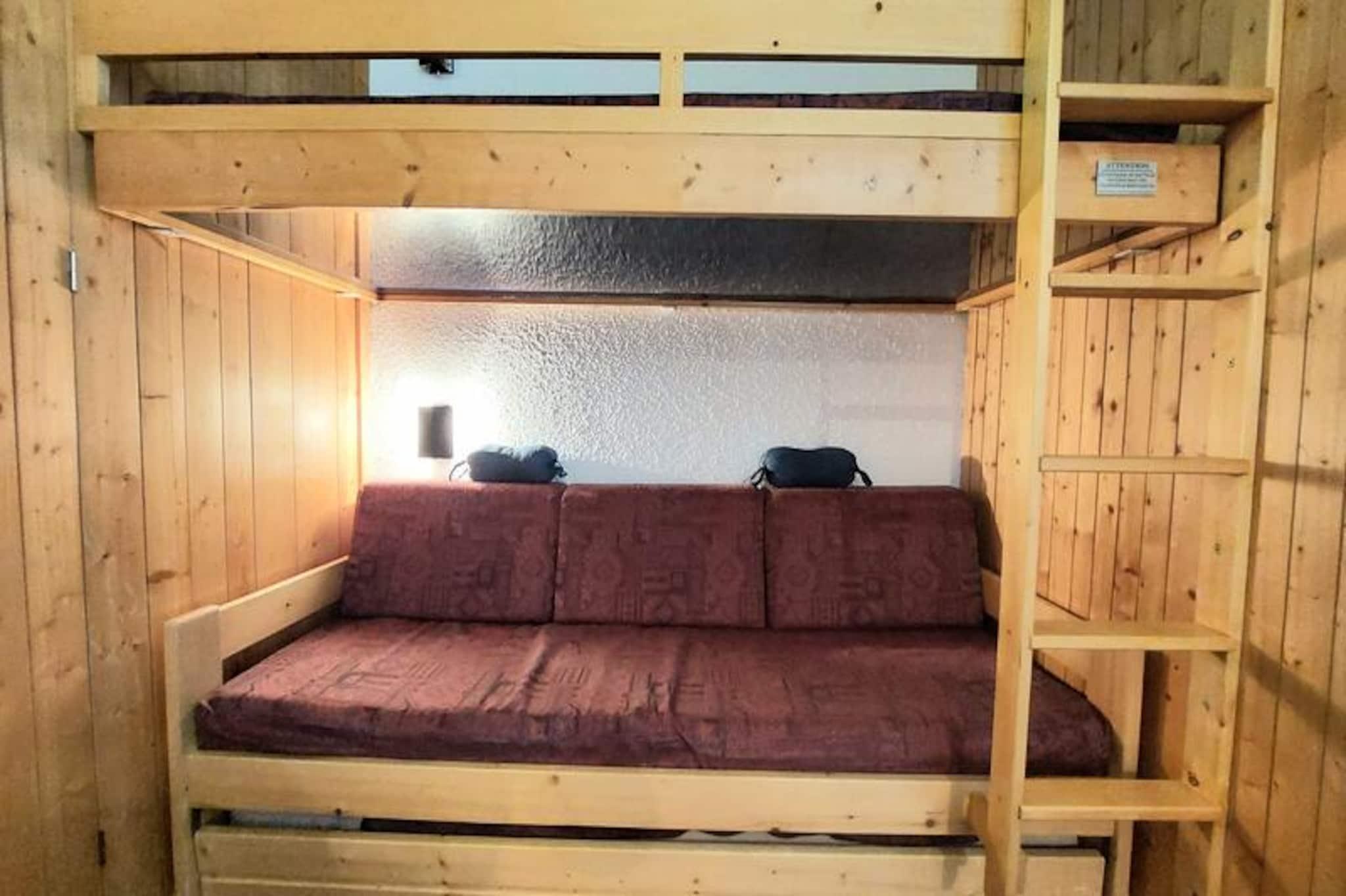 Højt over Villards' travle hjerte i Les Arcs 1800 tilbyder denne charmerende alpine lejlighed et varmt og indbydende tilflugtssted for din bjergferie. Med sin sydvestvendte balkon vil du blive forkælet med en betagende udsigt over dalen og uforglemmelige solnedgange, der maler himlen i nuancer af guld og karmosinrød. Uanset om du er her for spændingen ved skiløb eller roen ved sommervandreture, placerer denne bolig dig i centrum af det hele, med ski-in/ski-out adgang, der sikrer ubesværede eventyr lige fra døren. \n\nIndvendigt er lejligheden omhyggeligt designet til at rumme op til seks gæster. Stuen har en komfortabel sovesofa, mens soveværelset har to enkeltsenge, og det hyggelige hytteområde har køjesenge, der er perfekte til børn over seks år. Det fuldt udstyrede køkken inviterer dig til at tilberede solide måltider efter en dag med udforskning, komplet med elektriske kogeplader, mikrobølgeovn/ovn, opvaskemaskine og essentielle apparater som kaffemaskine og elkedel. Moderne bekvemmeligheder såsom gratis Wi-Fi og miljøvenligt sengetøj sikrer et behageligt og bæredygtigt ophold. \n\nTræd udenfor og oplev den pulserende landsby Villards, hvor butikker, restauranter og afterski-aktiviteter kun ligger en kort gåtur væk. Om vinteren lokker pisterne med uberørt sne, mens sommeren forvandler området til et paradis for vandrere og cyklister. Nærliggende shuttle-stoppesteder giver nem adgang til andre feriesteder, hvilket gør det nemt at udforske det bredere Paradiski-område. \n\nUanset om du er på jagt efter pudrede pister eller rolige stier, tilbyder denne lejlighed den perfekte blanding af komfort, bekvemmelighed og alpin charme. Lad de franske alpers skønhed inspirere til uforglemmelige minder under dit ophold.