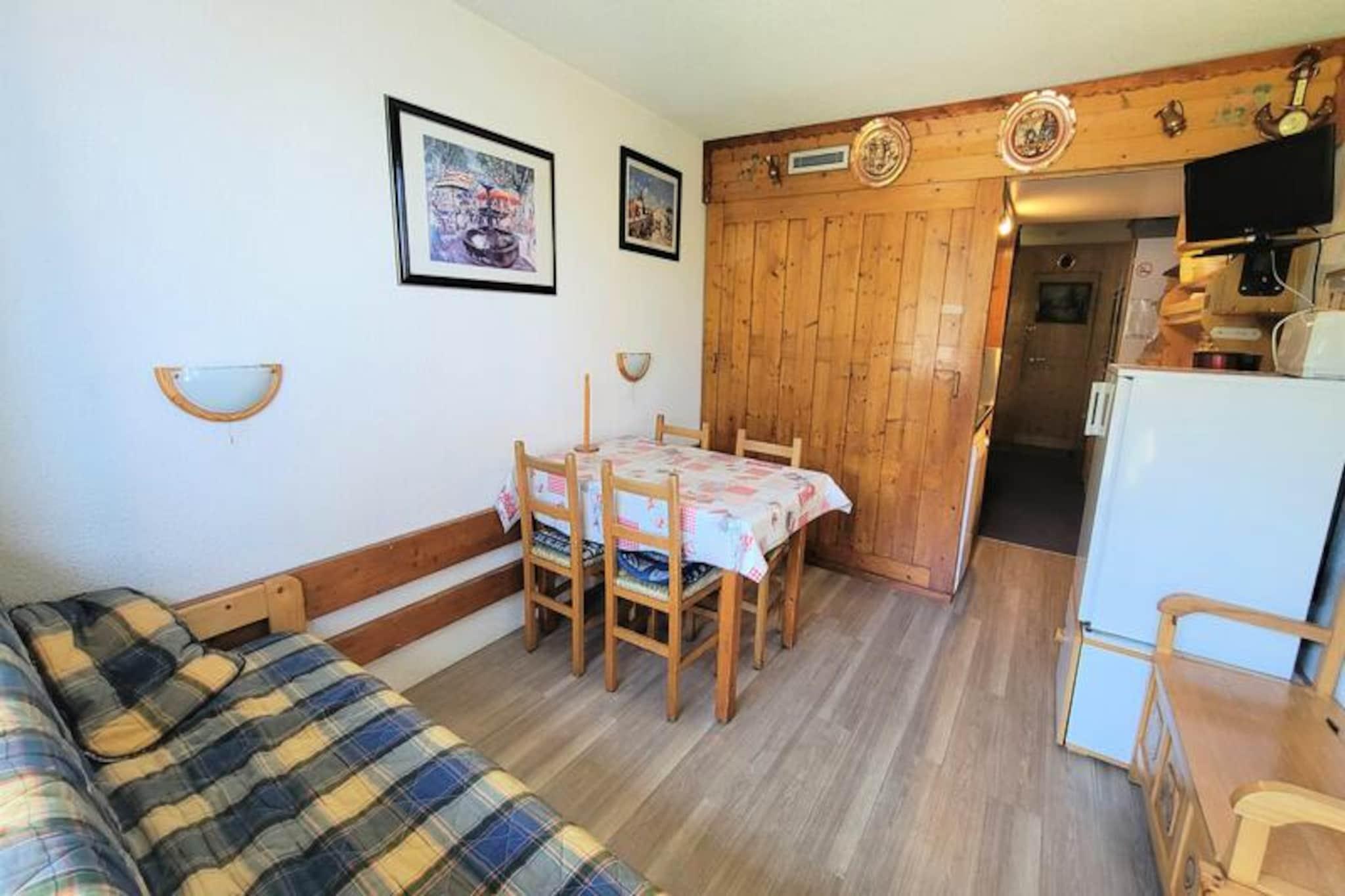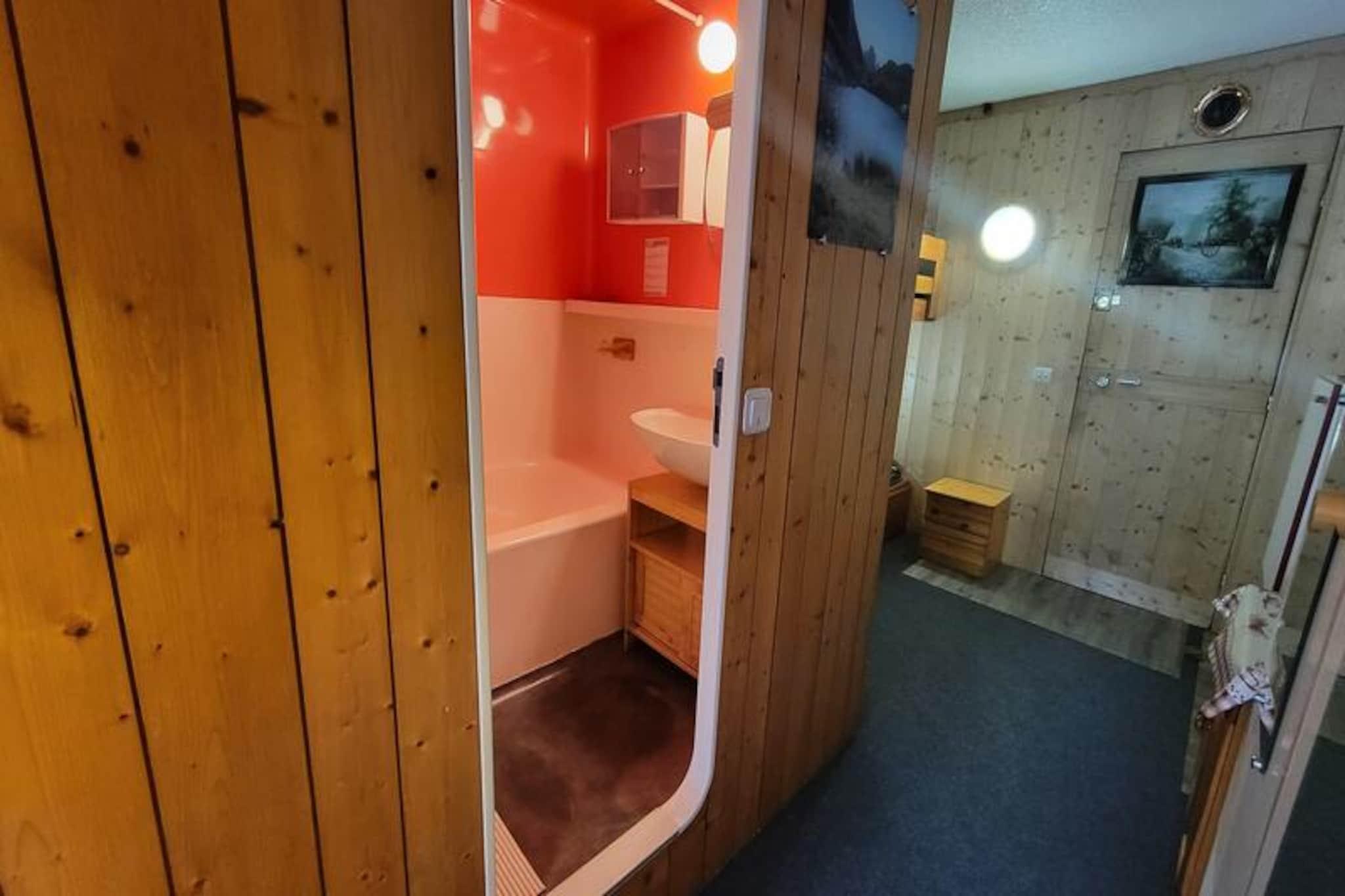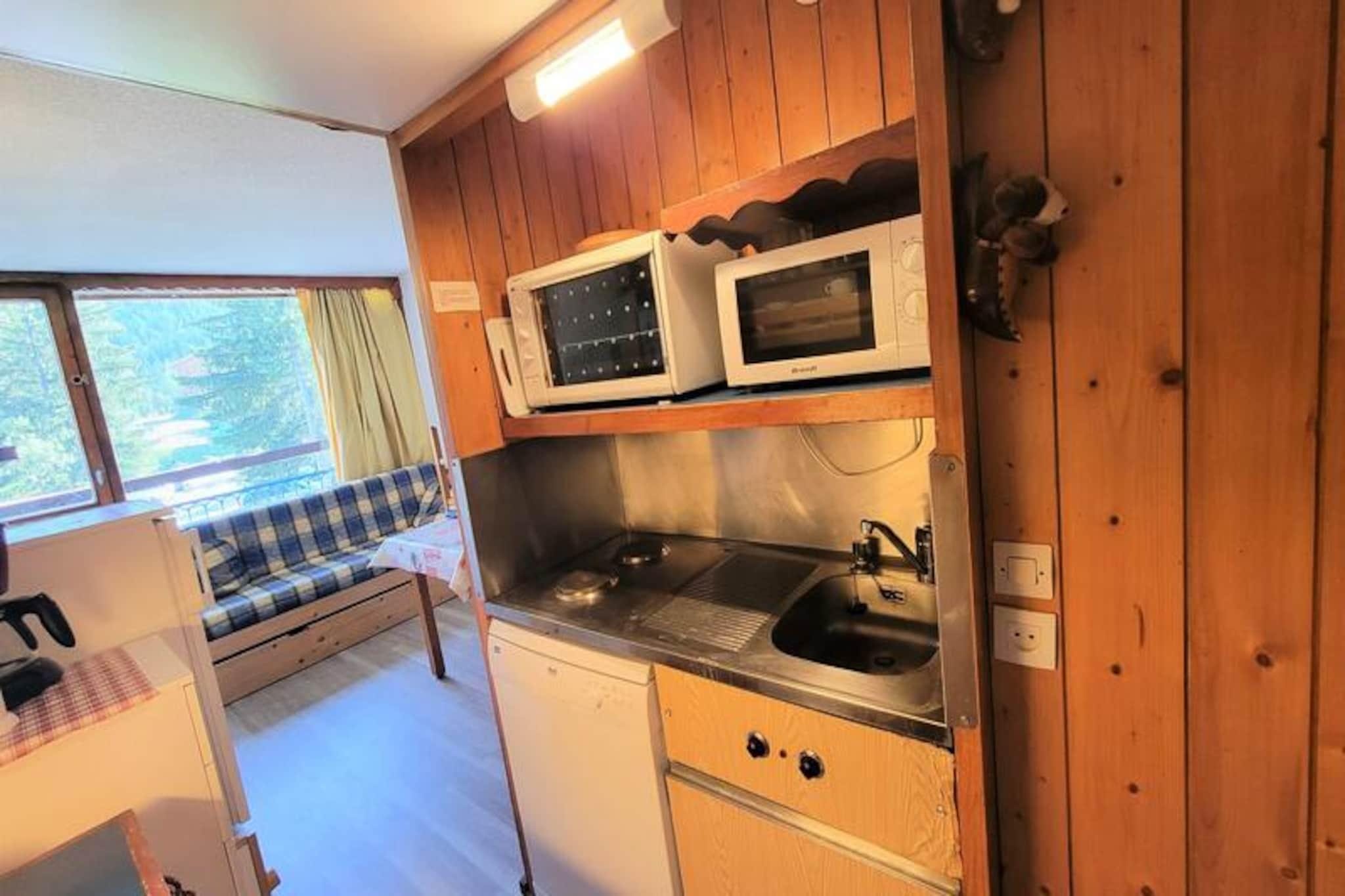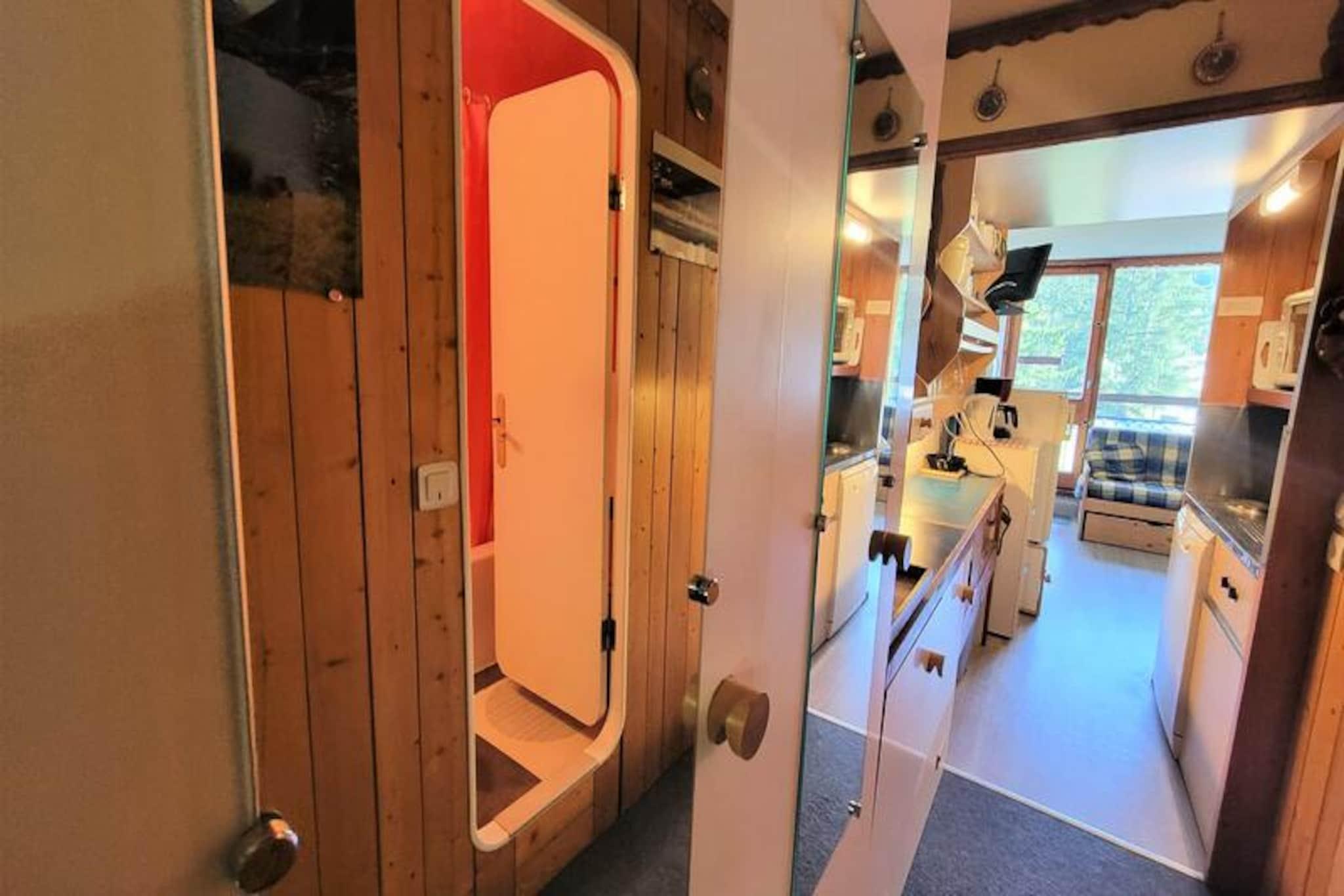 Højt over det charmerende Charvet-indkøbscenter tilbyder dette hyggelige studie en ski-in/ski-out-oplevelse, der placerer dig i hjertet af alpin aktivitet. Vågn op til en betagende udsigt over Mont Blanc og de omkringliggende fyrretræsklædte skråninger fra din nordøstvendte balkon, hvor den friske bjergluft sætter tonen for en uforglemmelig dag. Beliggende på 8. sal i Belles Challes du Charvet-residensen kombinerer dette tilflugtssted bekvemmelighed og komfort til en perfekt ferie. \n\nStudioet er designet til at rumme op til fire gæster og har en praktisk indretning med en tæppebelagt entré udstyret med to 80 cm køjesenge og en stue med en sovesofa med en udtræksseng (160 cm) til to. Tekøkkenet er kompakt, men funktionelt og kan prale af to elektriske kogeplader, en miniovn, køleskab, opvaskemaskine og essentielle apparater som en brødrister og elkedel. Efter en dag på pisterne kan du slappe af i den hyggelige opholdsstue med tv og varm atmosfære eller nyde et stille øjeblik på balkonen, mens du nyder den fredfyldte udsigt over bjergene.\n\nResidensens førsteklasses beliggenhed sikrer, at alt hvad du behøver er kun få skridt væk. Fra skiløjperne til butikkerne og restauranterne i Charvet er bekvemmeligheden lige ved hånden. Charvet, et stoppested for shuttle-service mellem feriestederne, gør det nemt at udforske det større Paradiski-område. For dem, der ankommer i bil, er der overdækket og udendørs parkering i nærheden (mod betaling om vinteren). \n\nUanset om du er her for at kæmpe dig gennem sneen om vinteren eller udforske de frodige alpine stier om sommeren, tilbyder dette studie en perfekt bjergflugt. Med miljøvenligt sengetøj, gratis Wi-Fi på resortet og en forpligtelse til bæredygtighed lover dit ophold at være lige så ansvarligt, som det er afslappende. Oplev magien i de franske alper med Mont Blanc som baggrund og pisterne lige uden for døren.