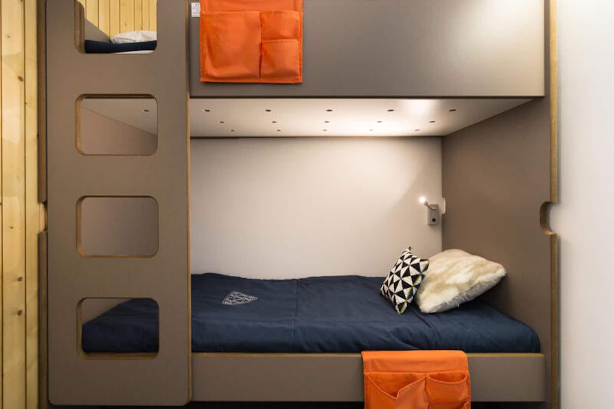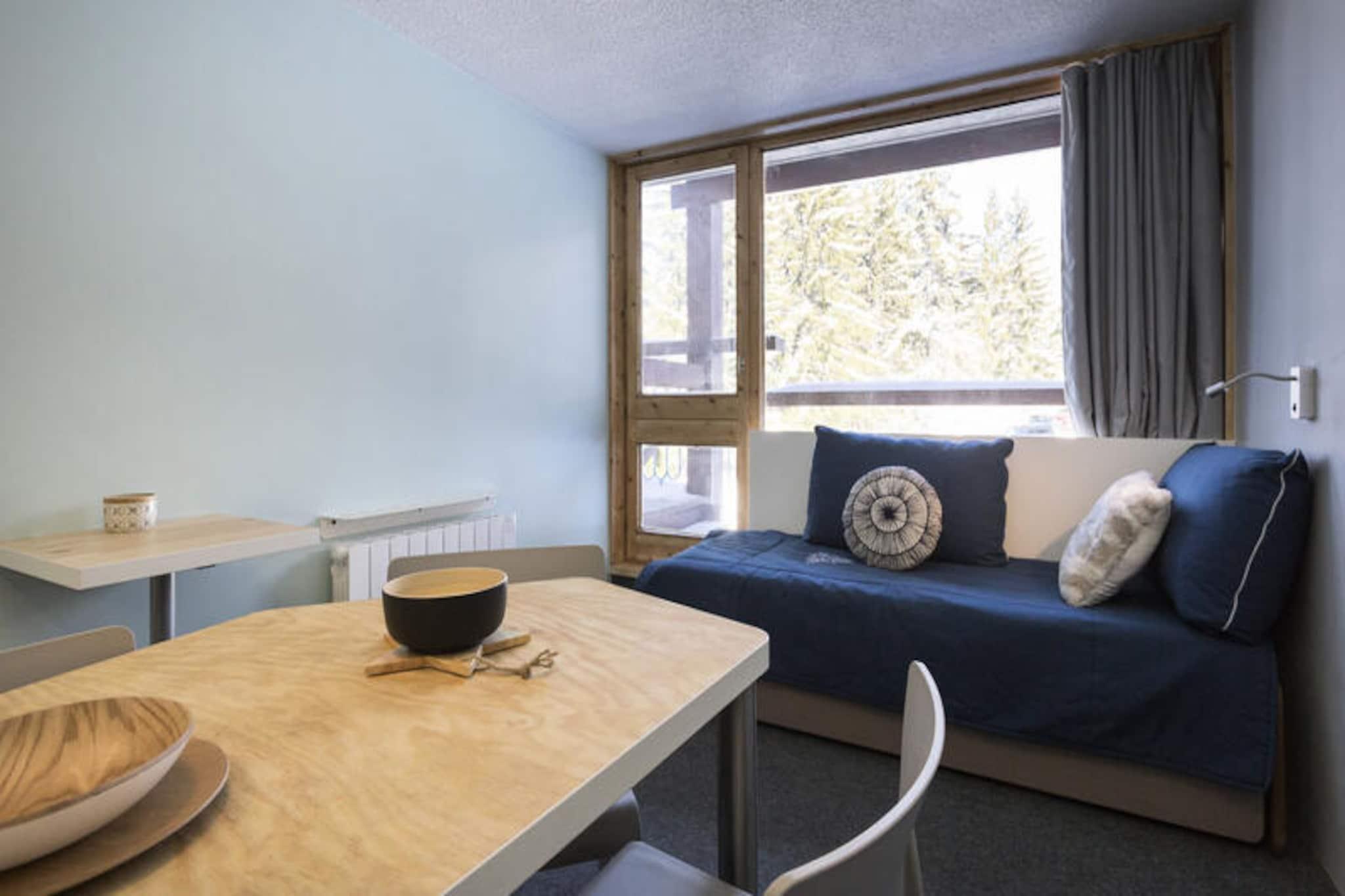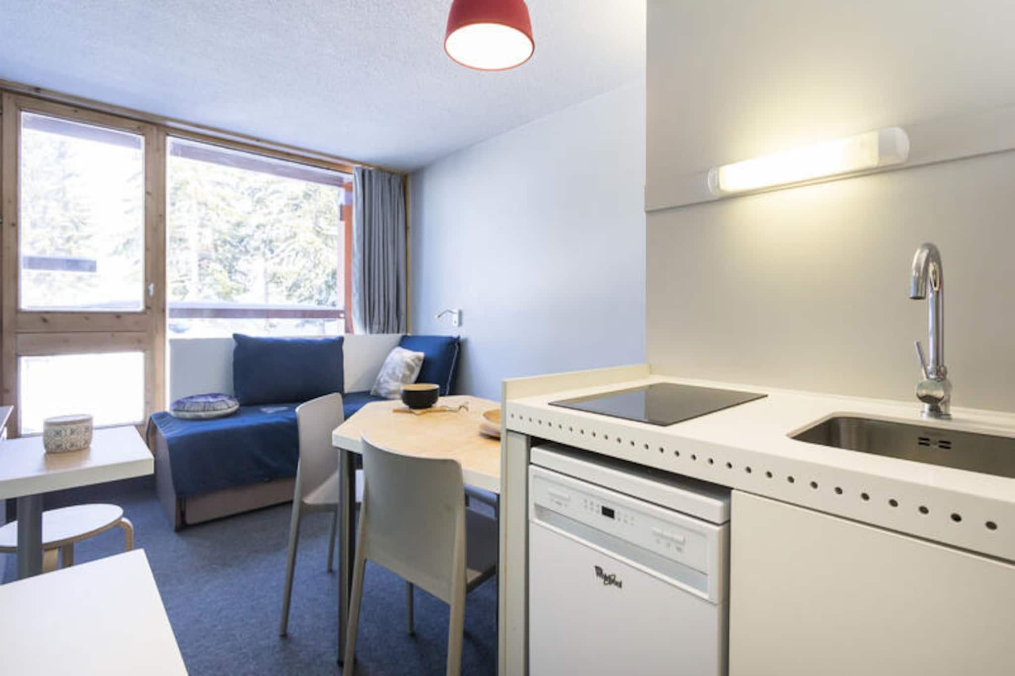 Højt over det charmerende Charvet-indkøbscenter tilbyder dette hyggelige bjergstudie en uovertruffen ski-in/ski-out-oplevelse i hjertet af Les Arcs 1800. Forestil dig at vågne op til den friske alpeluft, træde ud på din balkon for at beundre den betagende udsigt over Mont Blanc og de omkringliggende fyrretræsklædte pister og tage direkte til pisterne lige uden for din dør. Uanset om du er her for vintersport eller sommereventyr, placerer denne bolig dig i centrum af det hele. \n\nDette renoverede 25 m² store studie er omhyggeligt designet til at rumme op til fire gæster, hvilket gør det perfekt til par, små familier eller venner. Bjerghjørnet har to 80 cm køjesenge, mens opholdsstuen indeholder en komfortabel sovesofa og en udtræksseng til to. Tekøkkenet er fuldt udstyret med keramiske kogeplader, en kombinationsovn, køleskab, opvaskemaskine og alt det nødvendige for at tilberede solide måltider efter en dag med udforskning. Studiet har også et tv, gratis Wi-Fi på resortet og miljøvenligt sengetøj for ekstra komfort. \n\nBekvemt placeret oven over Charvet indkøbscenter har du nem adgang til butikker, restauranter og shuttle-stoppestedet mellem feriestederne. Om vinteren er der overdækket og udendørs parkering i nærheden mod et gebyr. I de varmere måneder tilbyder den nordøstvendte balkon et roligt tilflugtssted med udsigt over frodige grønne områder og majestætiske tinder. \n\nUanset om du snor dig gennem Paradiski-pisterne, vandrer på naturskønne stier eller blot nyder den rolige bjergatmosfære, er dette studie den perfekte base for uforglemmelige alpine minder. Med sin førsteklasses beliggenhed, moderne faciliteter og fantastiske udsigt er det et ideelt valg til din næste ferie.