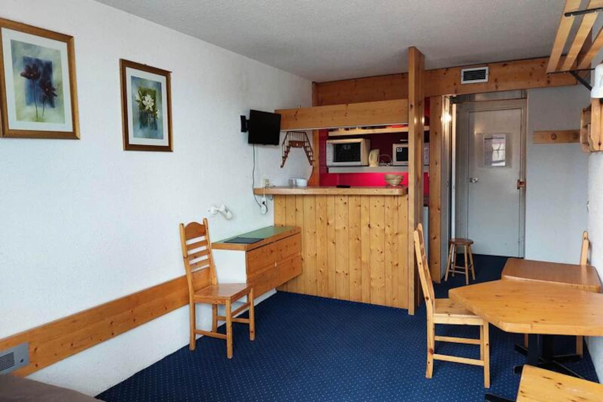 I hjertet af den pulserende landsby Villards ved Les Arcs 1800 tilbyder denne hyggelige lejlighed en uovertruffen beliggenhed for både skientusiaster og bjergentusiaster. Med Vagère-stoleliften kun 30 meter fra døren og Transarc-gondolen kun 20 meter væk, kan du træde ud af Tournavelles-residensen og ud på pisterne på få øjeblikke. Den vestvendte balkon tilbyder en charmerende udsigt over resortet, perfekt til at slappe af efter en dag med alpine eventyr. Uanset om du er her for vintersport eller sommervandreture, er dette din indgang til det fantastiske Paradiski-område. Lejligheden, der ligger på første sal i Tournavelles 1-residensen, er omhyggeligt designet til at rumme op til fem gæster. Stuen har en komfortabel sovesofa, mens soveværelset er udstyret med tre køjesenge, ideelt til familier eller små grupper. Det fuldt udstyrede køkken inkluderer moderne apparater såsom induktionskogeplader, ovn, køleskab og opvaskemaskine, hvilket gør det nemt at tilberede måltider og nyde hyggelige aftener indendørs. Yderligere faciliteter som et tv, Wi-Fi og et badekar sikrer et behageligt og afslappende ophold. Bekvemmelighed er nøglen her, med et købmandsforretning, ESF-skiskole og et shuttlebusstoppested inden for kort gåafstand. Villards indkøbscenter med sine barer og natklub bidrager til den livlige atmosfære, mens det nærliggende turistkontor og lægecenter tilbyder vigtige tjenester. Om sommeren forvandles regionen til et paradis for friluftsentusiaster med vandrestier, mountainbiking og en betagende udsigt over Tarentaise-dalen. Uanset om du søger spændende skiløjper eller rolige sommerferier, er denne lejlighed i Tournavelles-residensen din perfekte base for uforglemmelige alpine minder.