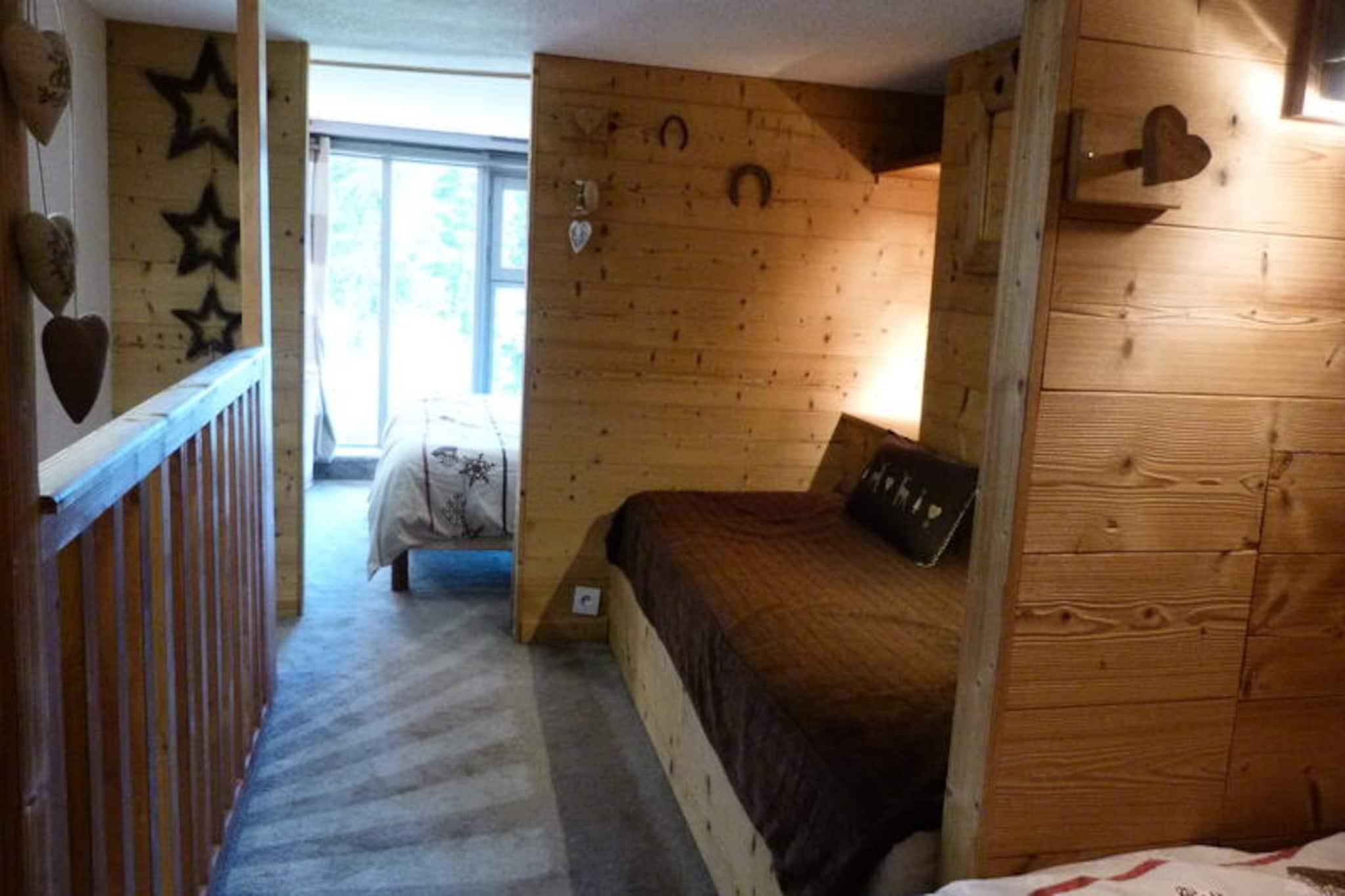 Hvor alpin charme møder moderne bekvemmeligheder, tilbyder denne hyggelige duplexlejlighed i Aiguille Grive I-residensen et dejligt tilflugtssted for din bjergferie. Beliggende i den maleriske landsby Charmettoger, kan den prale af direkte adgang til den blå 'Charmettoger'-skipiste og kun tre minutters gang fra Transarc-skiliften, hvilket gør den til et ideelt sted for skientusiaster. Den sydvendte balkon inviterer dig til at nyde solen og beundre den betagende udsigt over de omkringliggende tinder, hvilket skaber en rolig atmosfære til afslapning efter en dag med eventyr. \n\nLejligheden er designet til komfort og har plads til op til fem gæster fordelt på sine gennemtænkte områder. Mezzaninen har en luksuriøs dobbeltseng, mens en sovealkove og et separat soveværelse tilbyder ekstra enkeltsenge, der sikrer afslappende nætter for alle. Det åbne køkken er fuldt udstyret med moderne apparater, herunder opvaskemaskine, mikrobølgeovn og kaffemaskine, hvilket gør det nemt at tilberede solide måltider til at nyde i den indbydende opholdsstue. Yderligere faciliteter såsom Wi-Fi og et tv gør dit ophold mere behageligt. \n\nTræd udenfor og oplev bekvemmeligheden ved et bageri, en købmand og en restaurant lige for foden af ??boligen. Det nærliggende minimarked og ESF-skiskole ligger kun syv minutters gang væk, mens shuttlebusstoppestedet, der ligger 20 meter fra ejendommen, tilbyder gratis transport til vigtige steder både vinter og sommer. Udforsk den livlige landsby Villards, eller besøg turistkontoret og lægekontoret, som alle er inden for rækkevidde. \n\nUanset om du er her for at stå på ski, vandre eller blot slappe af midt i et fantastisk alpint landskab, er denne charmerende lejlighed din port til uforglemmelige øjeblikke i Les Arcs 1800. Med sin førsteklasses beliggenhed og hyggelige atmosfære er det det perfekte valg til en mindeværdig bjergferie.