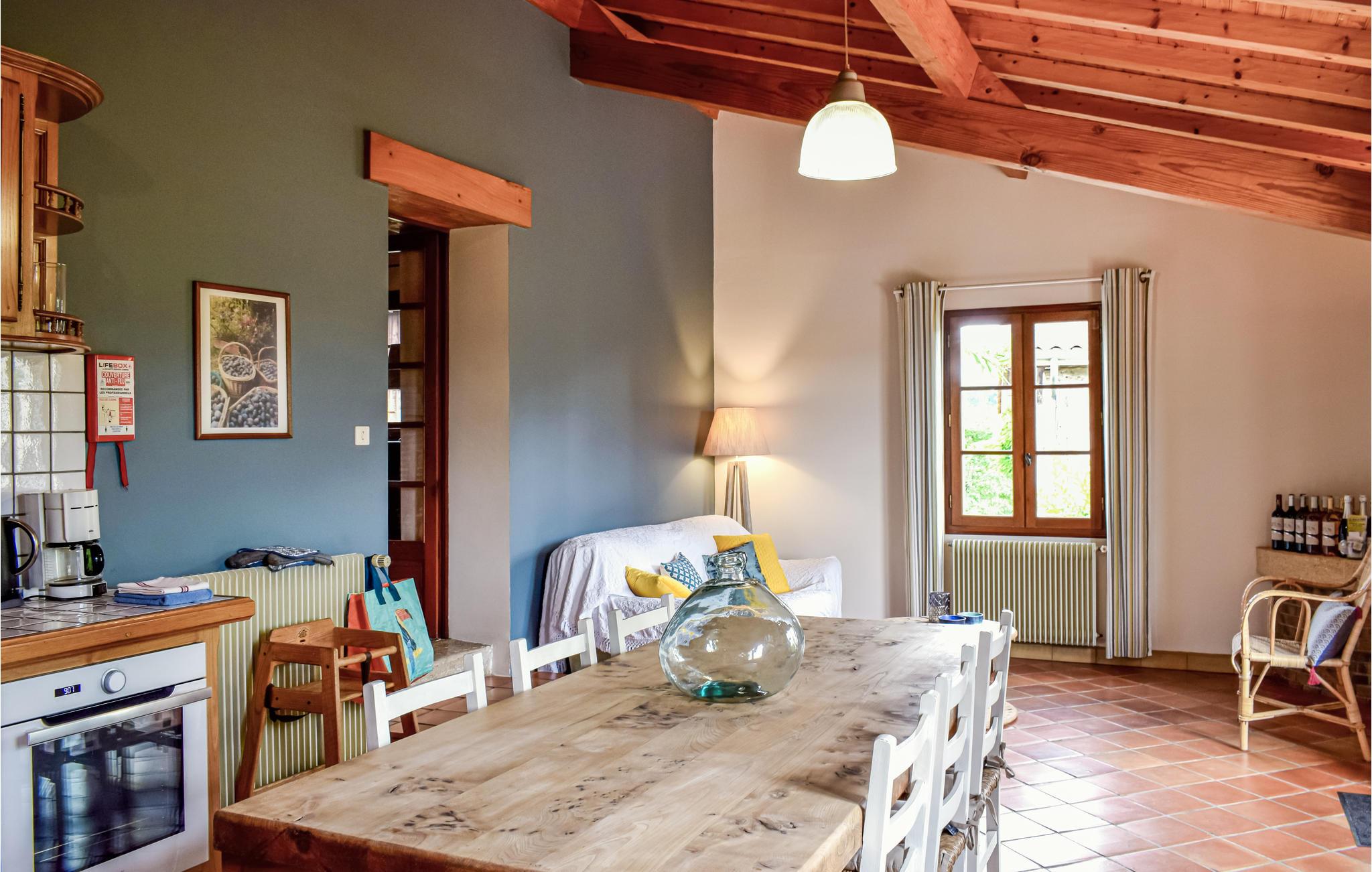 Dette charmerende feriehus med åben pejs ligger i en lille, rolig landsby. I haven er der en dam, badmintonbane og terrasser med en flot udsigt. Huset er godt indrettet og veludstyret, og du vil føle sig meget velkommen af ejerne. Landskabet har mange vingårde med Bergerac smagsprøver, middelalderbyer, slotte og markeder. Bergerac, Eymet og Issigeac er hver en kort køretur væk. Ridning, golf og sejlture på Dordogne er blot nogle af de aktiviteter og arrangementer der findes i området. Nyd stilheden i Lot-et-Garonne og Dordognes skønhed i denne charmerende feriebolig.