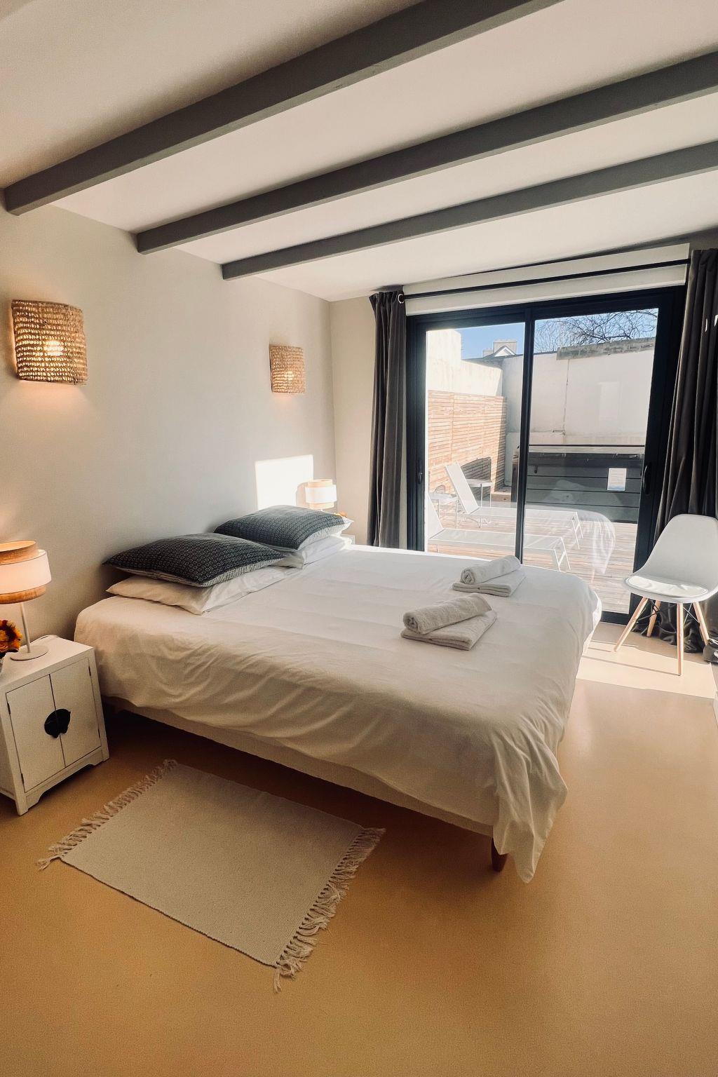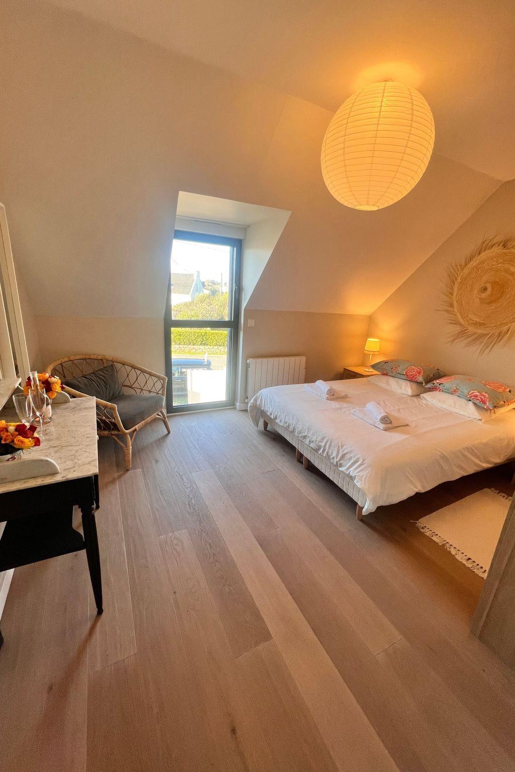 If you are a family - from 2 people perhaps accompanied by a dog - the house is perfect. The house is also wonderful for small children - in addition to a ground floor room with its own bathroom on the ground floor (terrace access), there are 3 further rooms available on the upper floor. So a maximum of 8 guests are welcome in 4 rooms with two bathrooms. The garden is 100% enclosed, as is the car park. Your holiday home is modern, open and cosy - offers space and luxury not only through modernity, but also through facilities such as laundry room, American fridge, fireplace, satellite TV, free internet via WLAN, large sun terrace and then the jacuzzi, which can always be used privately and is at the right temperature. And then there's the wonderful location in Brignogan plages - the Cocooning Villa du Port couldn't be a more beautiful typical beach and summer house... But don't forget, even when it's autumn or winter here, the jacuzzi is always in operation and the fireplace promises warm and romantic evenings.
