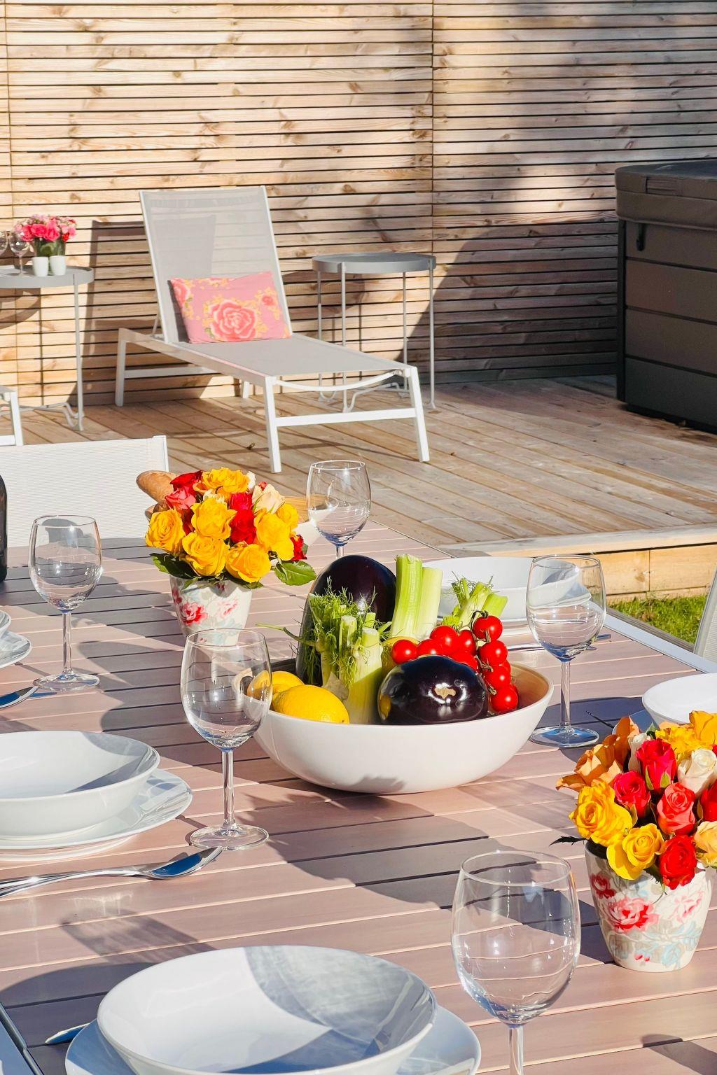 The Villa du Port du Brignogan - a wonderfully beautiful, very cosy holiday home - a typical beach holiday home could not be more beautiful. Cocooning pleasant, tastefully furnished - with a fireplace for romantic autumn days and the Jacuzzi on the large terrace all year round. You have a real beach and sea feeling as soon as you arrive at the villa. You park in the villa's own car park - you can close the gate! The garden is also completely fenced in, which is important for small children or your four-pawed friend. And then so close to the sea! You now walk about 150 metres and you are at the bay du Port - you can swim there immediately because in Brignogan it is common and uncomplicated to swim directly on the beaches in the village - and it is also important to mention that there is a namesake to the Villa du Port; namely the famous Café du Port of Brignogan Plages, just as quickly reached as the beach and the sea.