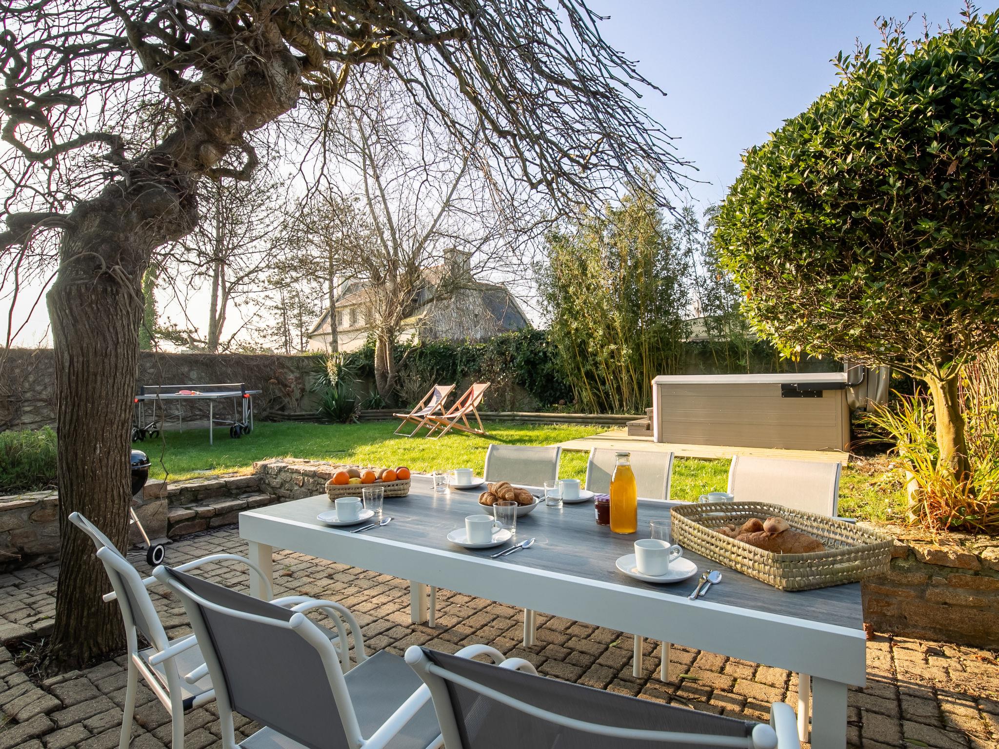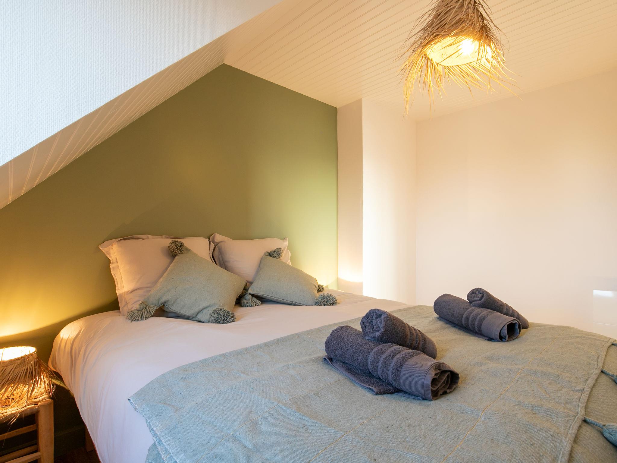 "La Lividig Bleue", 6-room house 140 m2 on 2 levels. Bright, fully renovated in 2023, modern and tasteful furnishings: living/dining room with TV (flat screen). Exit to the garden. Open kitchen 10 m2 (oven, dishwasher, 4 gas rings, toaster, kettle, microwave, freezer, electric coffee machine) with bar. Shower, sep. WC. On the lower ground floor: 1 room with 2 beds (90 cm, length 190 cm), 1 x 2 bunk beds (90 cm, length 190 cm). Playroom. Exit to the garden. Upper floor: 1 room with 1 french bed (160 cm, length 200 cm), shower. 2 rooms, each room with 1 french bed (160 cm, length 200 cm). Sep. WC. Electric heating. Beautiful view of the sea. Facilities: washing machine, iron, baby cot for up to 2 year olds, hair dryer. Internet (WiFi, free). Please note: non-smoking house. Maximum 1 small pet/ dog allowed. Smoke alarm. table football. When there are less than the maximum number of guests staying at the property, not all of the bedrooms will be available for use. Offer by a private individual according to Art. 155, IV of CGI.