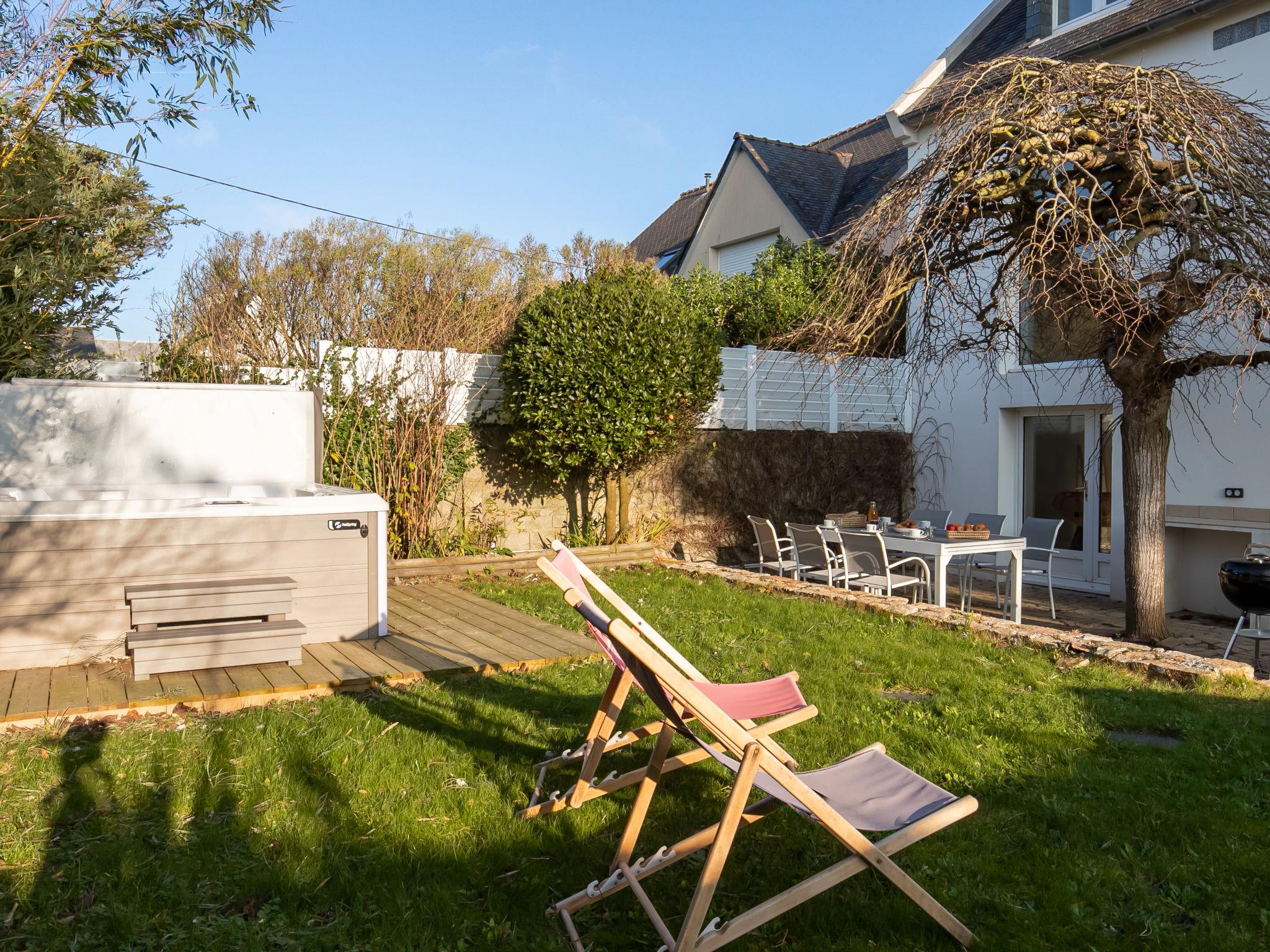 Brignogan-Plage: Modern, beautiful, comfortable single-family house "La Lividig Bleue". 1.3 km from the centre of Brignogan-Plages, in a quiet position, 70 m from the sea, 70 m from the beach, in a cul-de-sac. Private: property 900 m2 (fenced), well-kept garden with lawn and wildlife garden. Hot tub, table tennis, parking (for 2 cars) on the premises. Shop 1.3 km, supermarket 1.5 km, restaurant 950 m, bar 1.3 km, bakery 2.4 km, bus stop 850 m, sandy beach "Plage du Lividic" 70 m, indoor swimming pool 14 km. Sports harbour 1.5 km, golf course (18 hole) 35 km, surf school 9 km, sailing school 3.2 km, tennis 50 m, walking paths from the house 30 m. Nearby attractions: Meneham 5 km, Dunes de Keremma, Réserve ornithologiqe 7.5 km, Lesneven 11 km, Roscoff, Jardin exotique, Île de Batz 34 km, Plouguerneau, Pays des Abers 22 km, Brest, Oceanopolis 40 km. Hiking paths: GR34, sentier des douaniers 30 m.