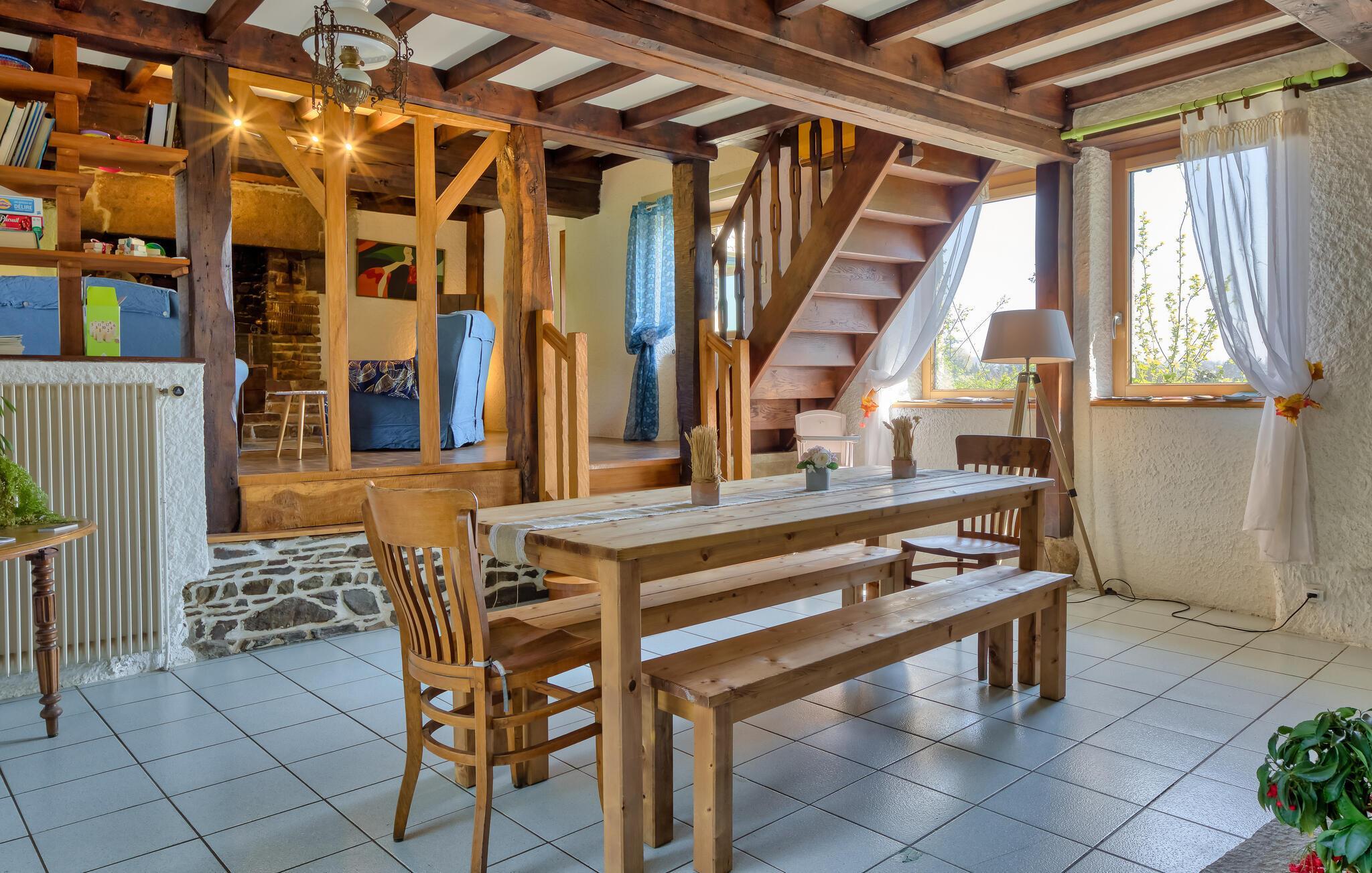 Hvad enten det er kulturelle opdagelser, gåture ved havet eller afslappende stunder i idylliske omgivelser - dette charmerende stråtagshus i Brouains er det ideelle udgangspunkt for et uforglemmeligt ophold i Normandiet.