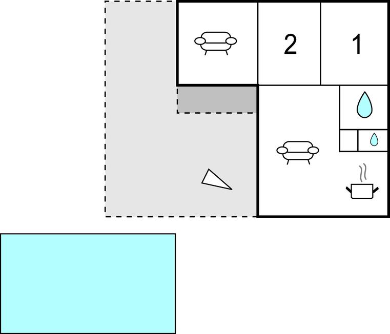 Her venter jer også et dejligt hjørne med gode havemøbler, hvor det er skønt at nyde måltiderne i det fri. Foran huset har i den private swimmingpool, som er omgivet af træer, buske og planter. Ejeren bor i en villa på samme grund.