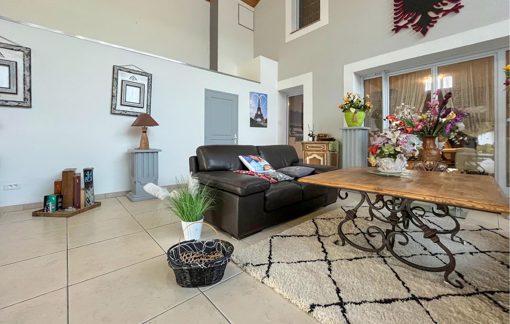 Nyd en behagelig ferie i dette rummelige feriehus med pool i en fredelig beliggenhed. Omgivet af natur og tæt på charmerende destinationer tilbyder dette lyse og indbydende feriehus den ideelle indkvartering til en afslappende ferie med familie eller venner. Nyd måltider sammen, hold jer i form på fitnessudstyret, og afhold sjove madlavningsarrangementer. Tilbring hyggelige aftener med at spille spil, forkæl jer selv med afslappende øjeblikke i spabadet, og nyd den behagelige atmosfære med et godt glas vin. Forfrisk jer selv i den elegante pool, når I har lyst, tilbered jeres aftensmad i pizzaovnen eller på grillen, og nyd stemningsfulde aftener på terrassen. Oplev den solrige region, de nærliggende Alpilles og Les Baux-de-Provence på vandreture, cykling eller ridning. Gå en tur gennem Saint-Rémy-de-Provence med dens isbarer og restauranter, og beundr Palais des Papes i Avignon. Fordyb jer i gallo-romersk historie i Nîmes, og prøv regionale produkter på de farverige markeder.