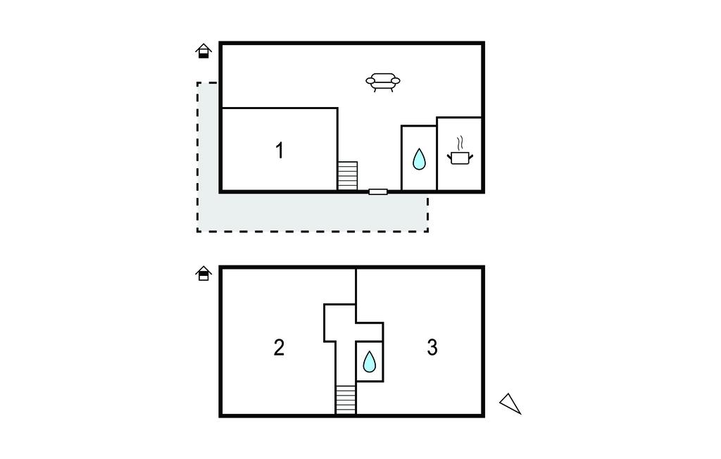 Badeværelse 2m2 (nr. 1) - WC. Koldt vand. Bruser