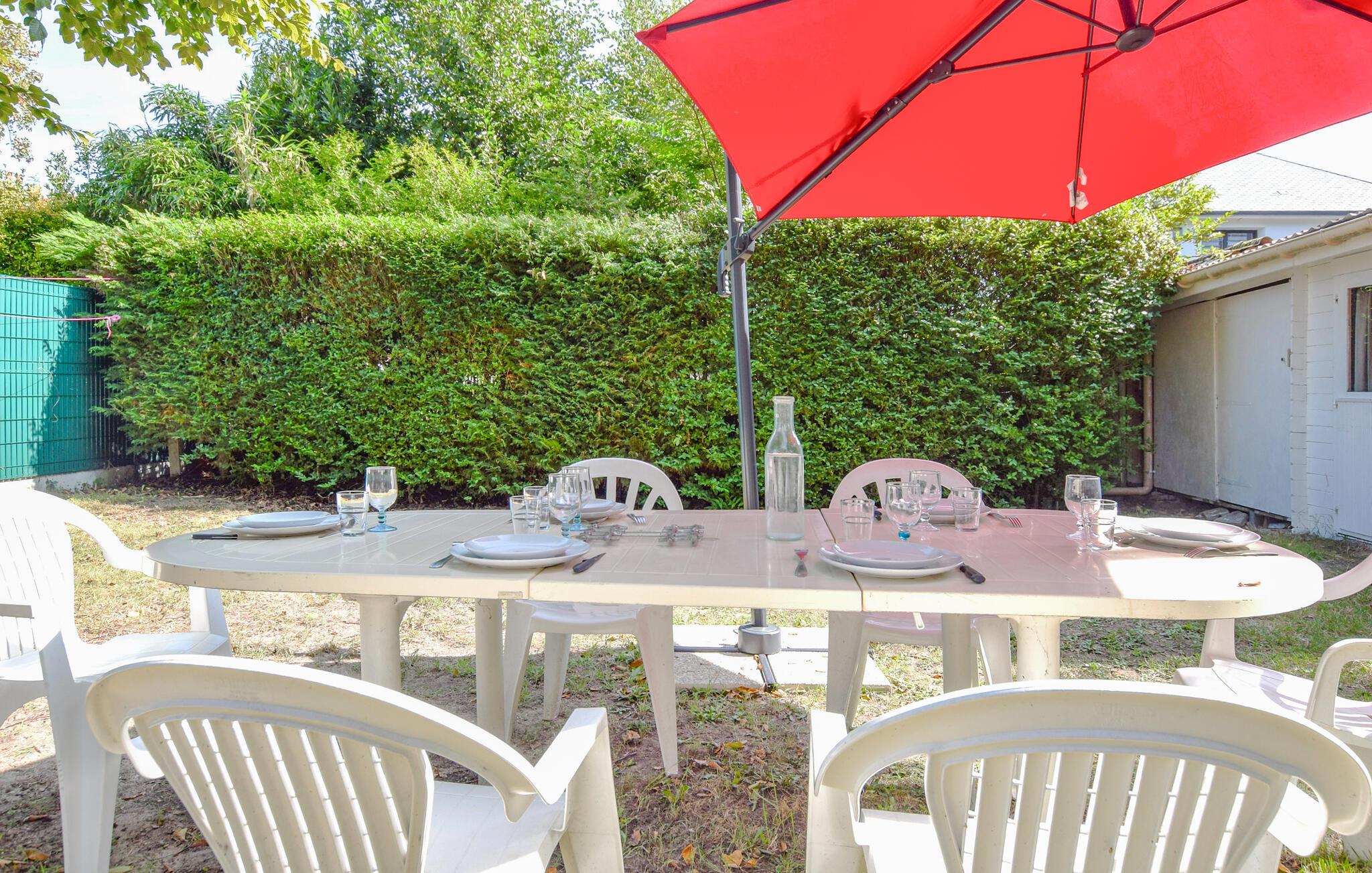 Tilbring tid udendørs og sæt jer godt til rette under den store parasol i haven. Dæk bordet til en fælles morgenmad under åben himmel eller tilbring aftenen med en grill. Brug den lille terrasse med siddepladser til en pause eller se børnene lege på den beskyttede grund.